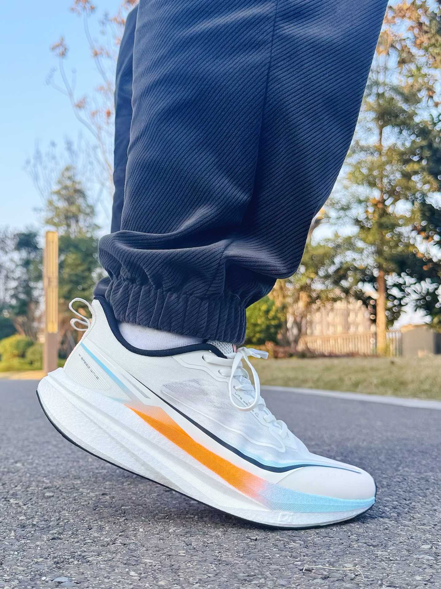 这双鸿星尔克K303,上脚给我的第一感觉就是轻,轻到像没穿鞋一样。 鞋面贴脚但不闷,跑起来风都能钻进来。中底的超临界炁科技,踩下去是那种软弹的回弹,不是硬邦邦的顶脚,配速提上来的时候反馈很跟脚。 箭齿大底抓得很牢,变向也不打滑,横向支撑也很稳,跑久了脚也不晃。 日常通勤穿也不突兀,配色清爽,搭运动裤、牛仔裤都挺顺眼。 #马上开跑 #新年追风起跑 #新年穿新鞋 #预制春节穿搭 #鸿星尔克k3...