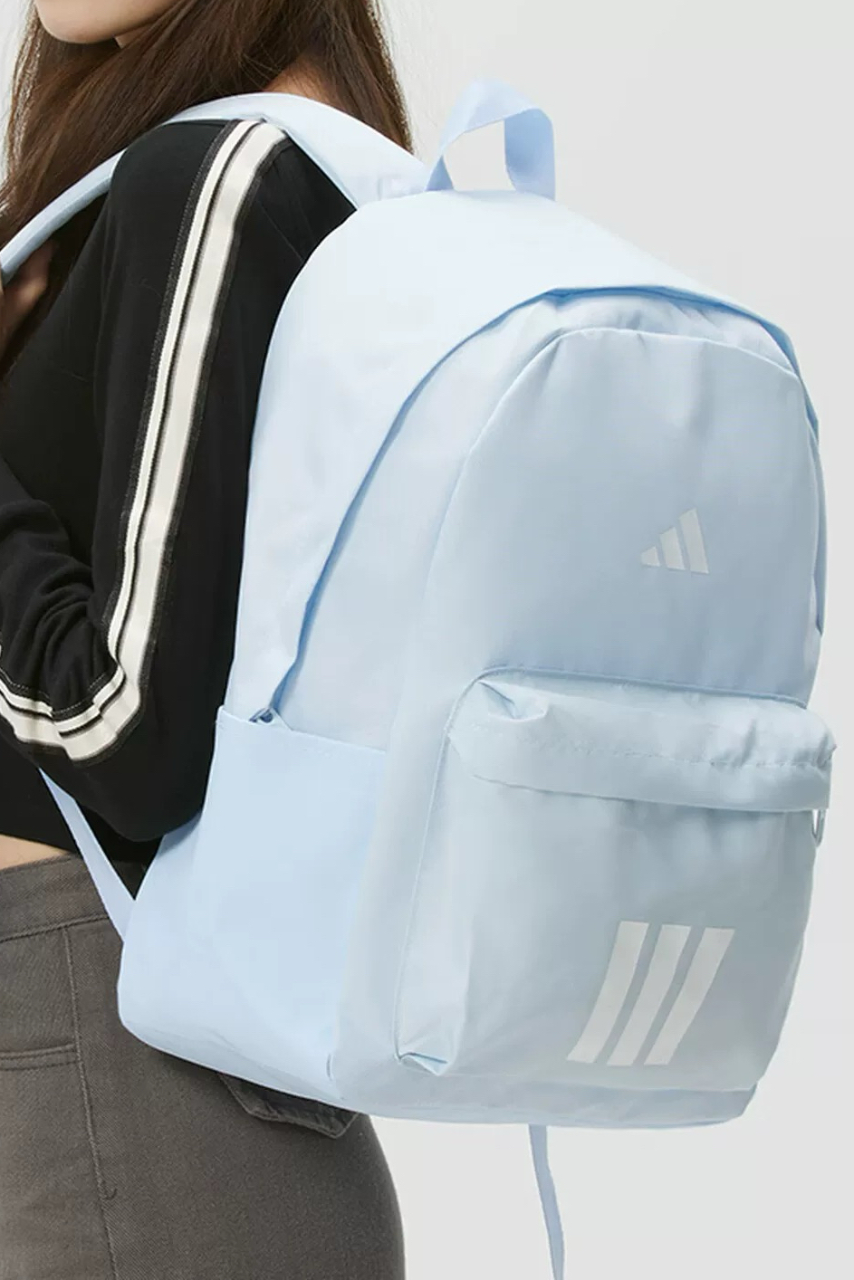 谁懂啊!这水晶蓝书包一整个清爽住🥶 我上课装电脑书本、下课塞雨伞,27.4L容量真的能装! 而且它自重很轻,背一天肩膀也不勒~ 织物手感很舒服,做工也工整,里边格层多,找东西贼方便! 搭校服、日常穿都好看,通勤健身背也合适~ 唯一小缺点是纯色容易脏,但架不住它好搭又实用哇👏!