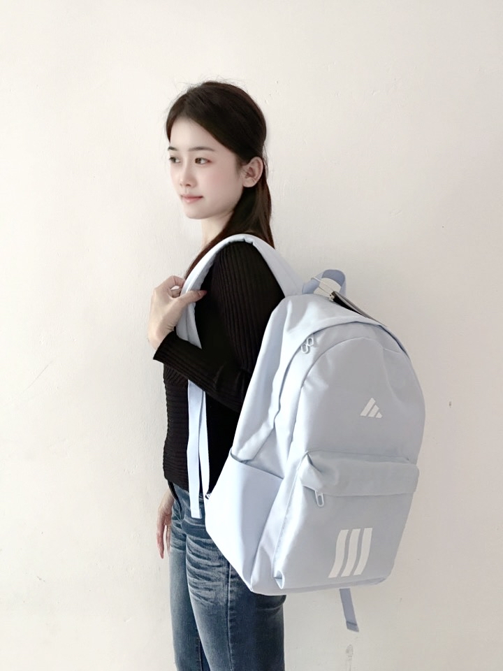 介个淡淡的baby蓝配色看的人吼清爽 就连拉链也是蓝色 这么大包包容量也是hin能装的 可以放得下课本那些啦 自重也是hin轻那种 吼适合背出去踏青呀 图源网络,侵删!
