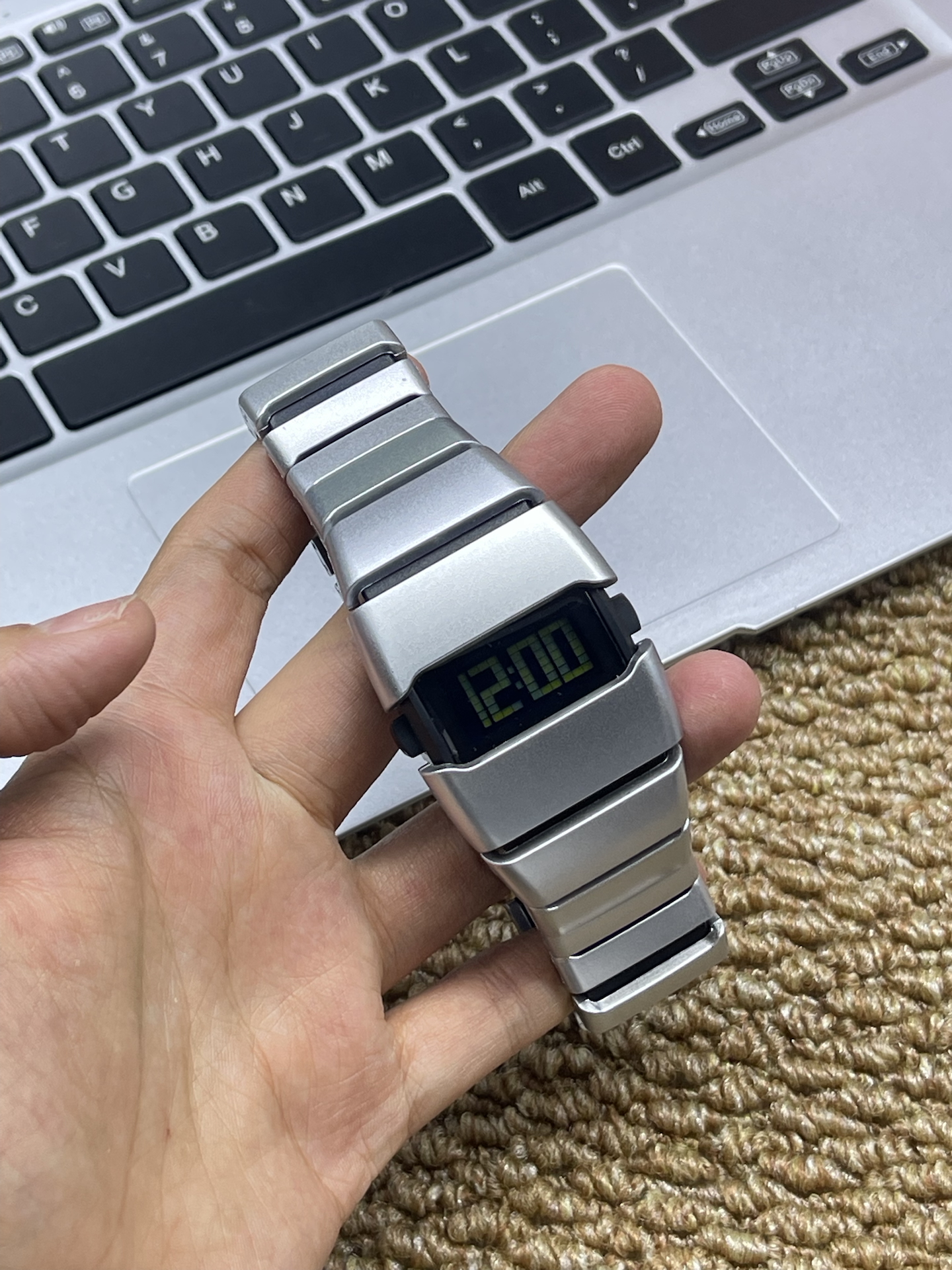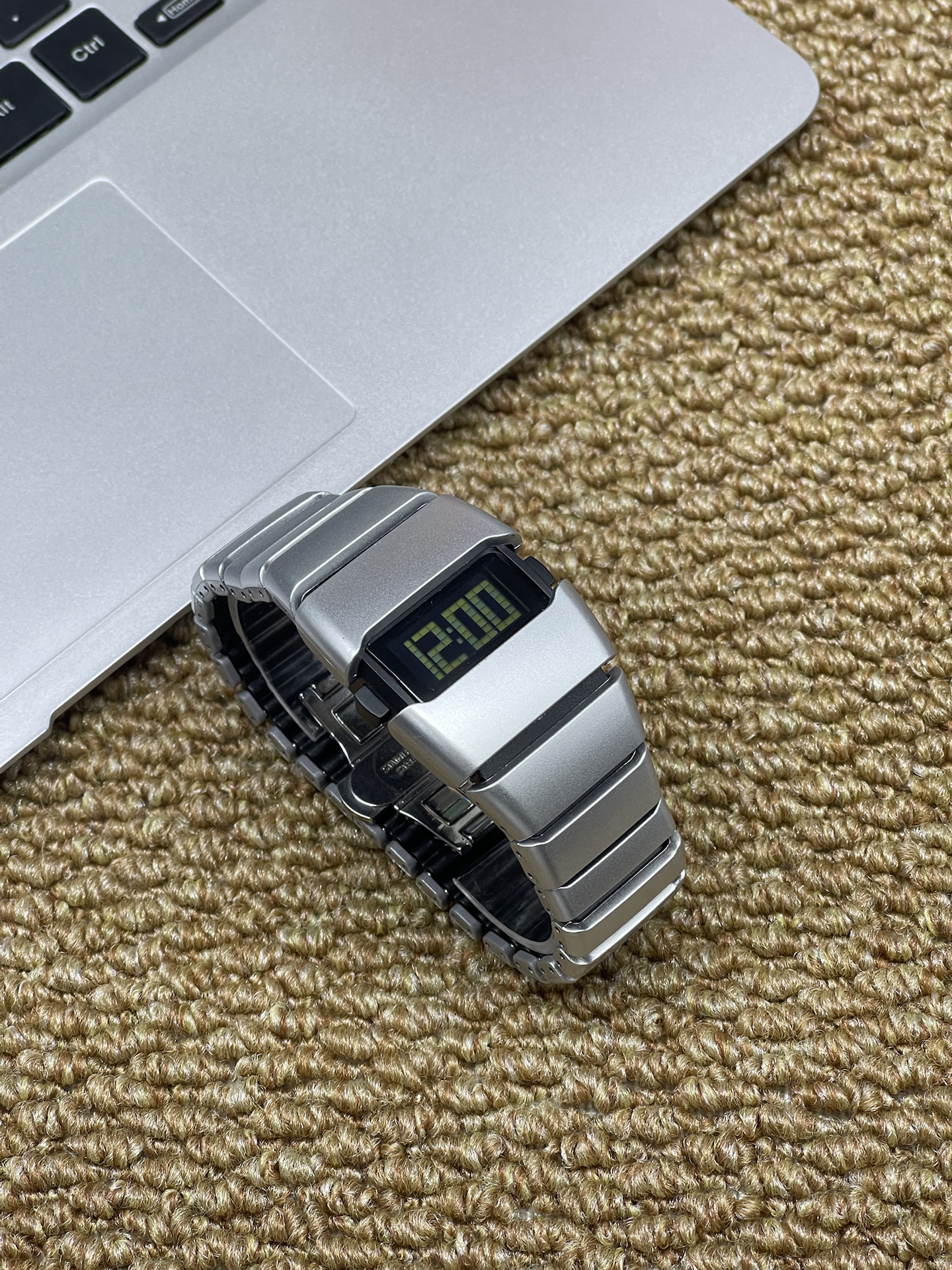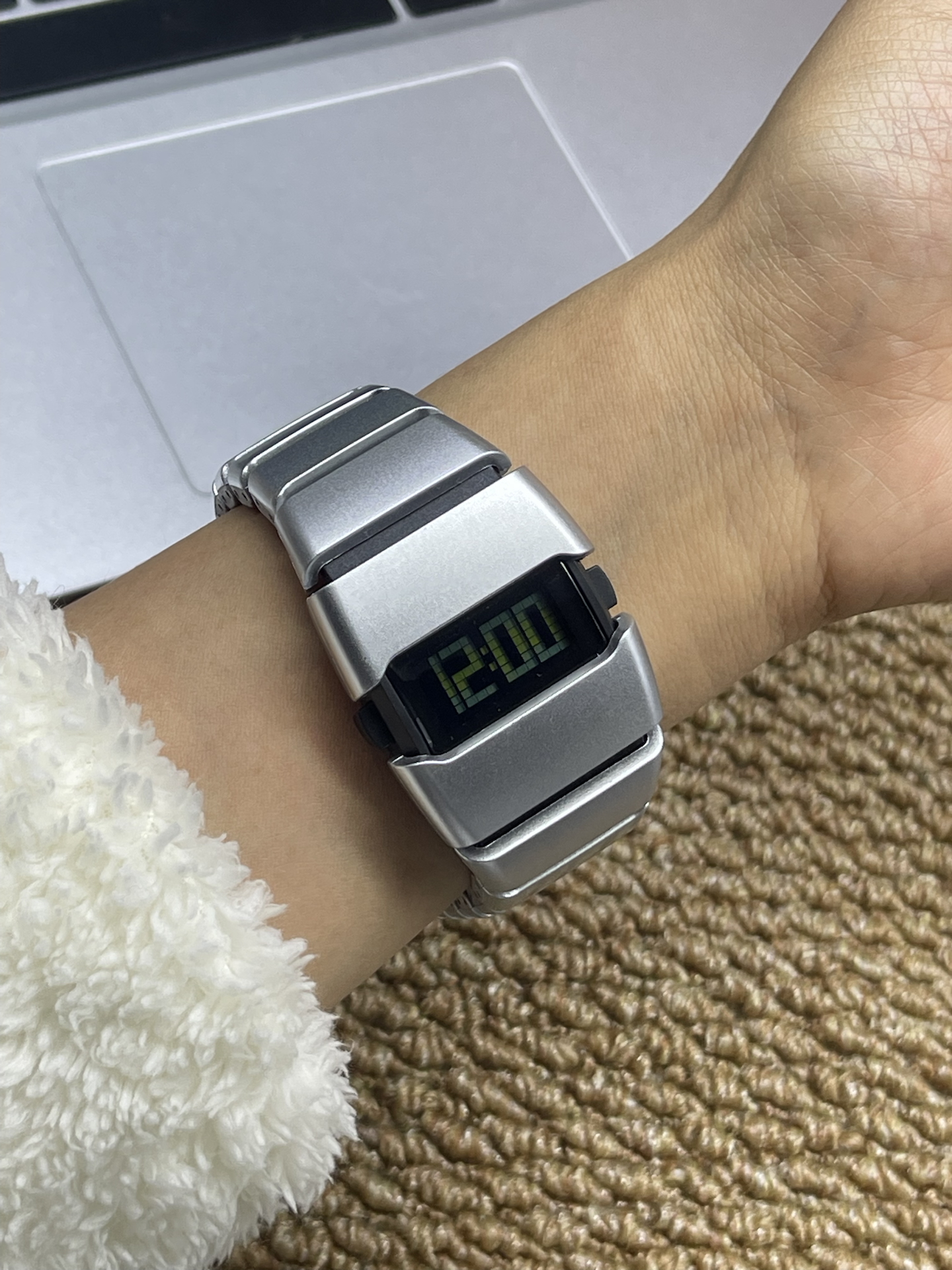 翻出这块名创优品压箱底的电子表,金属表带的未来感还在,屏幕跳着12:00的数字,瞬间梦回小时候追科幻片的日子~ 复古质感真的好戳我🥹 不过它的夜光效果在完全黑暗环境下,亮度维持时间不算很长啦~ 但日常搭配穿搭,氛围感直接拉满🔥 秋冬配毛衣卫衣都很绝,感觉穿搭精致度都提升了不少~