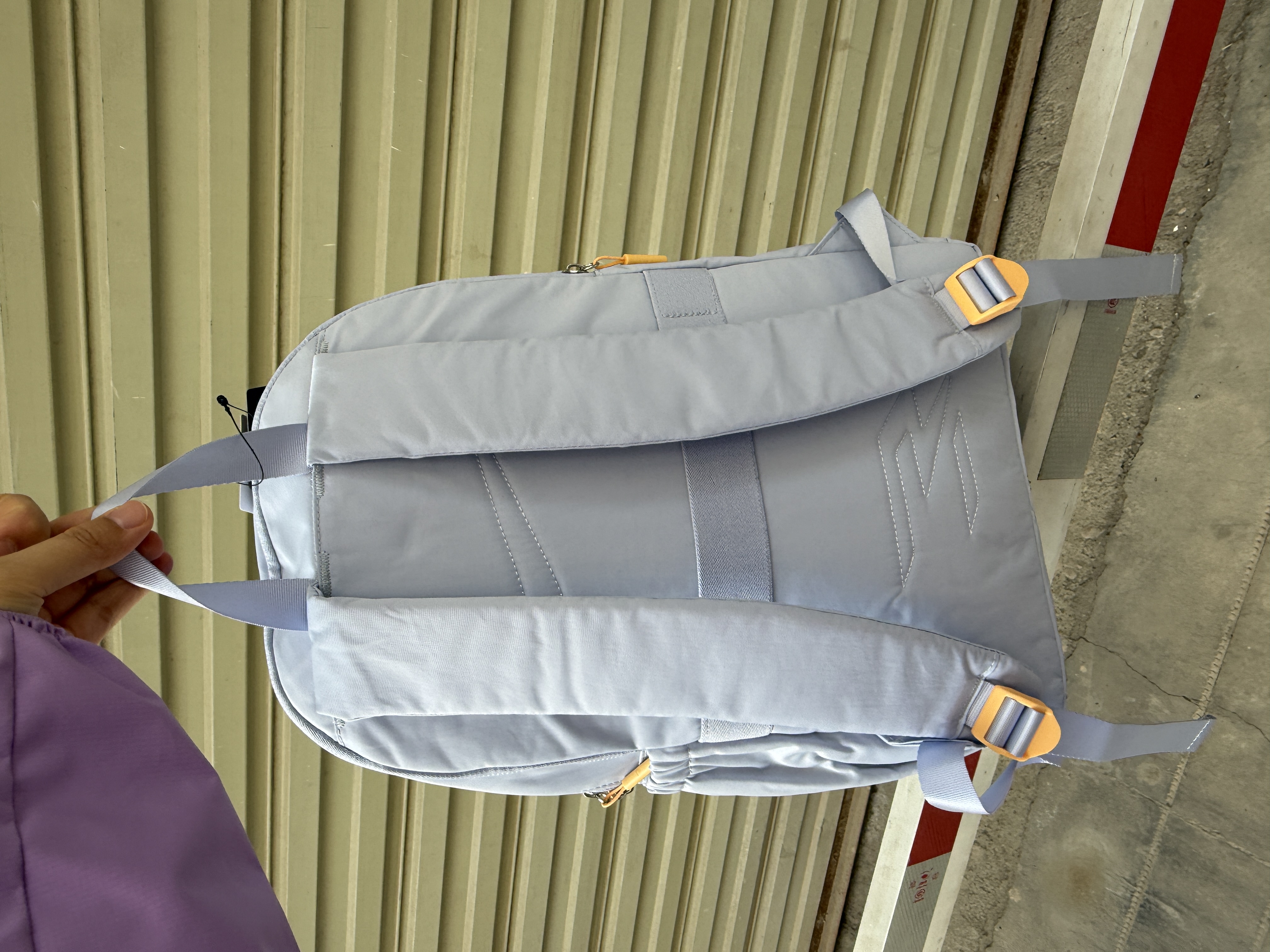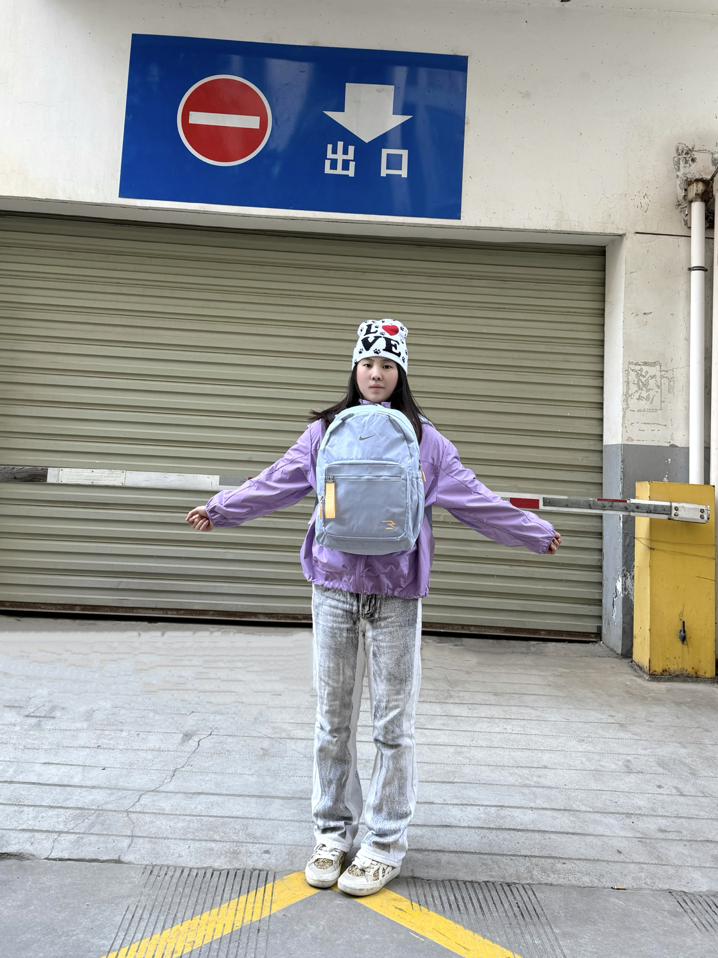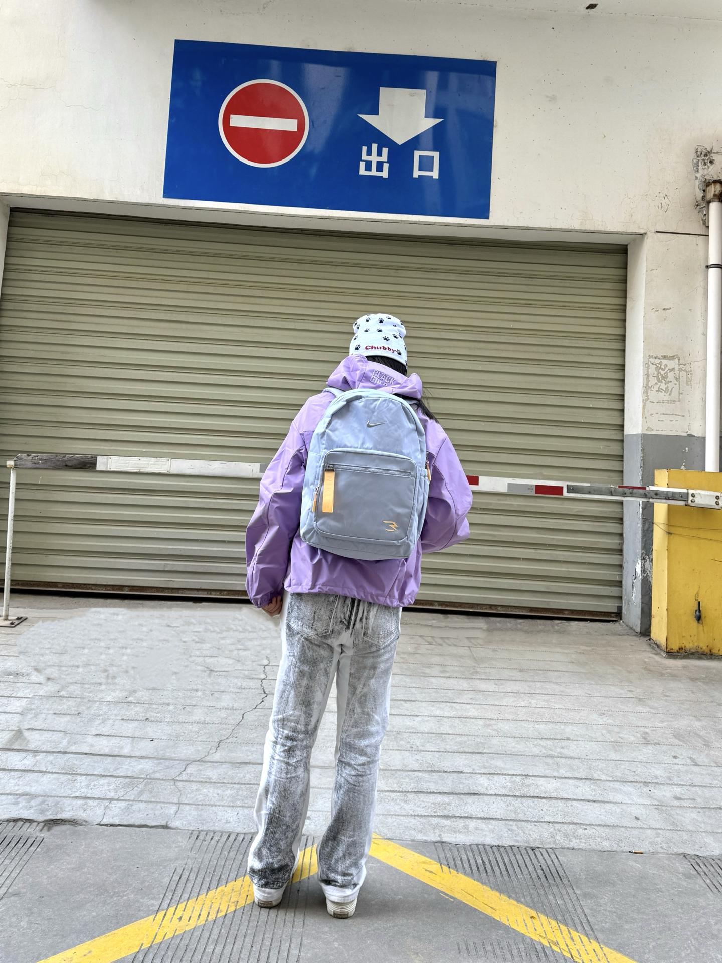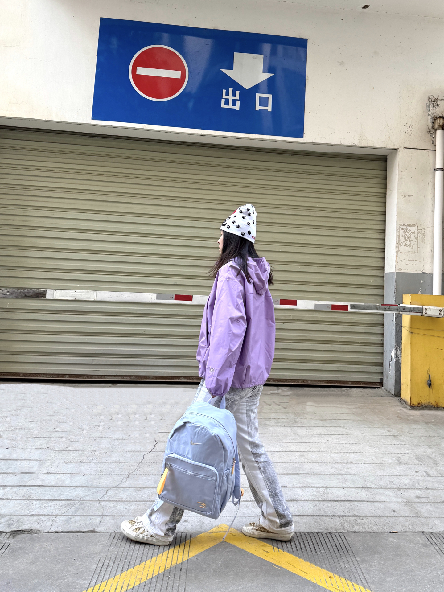 我今天搭紫色冲锋衣背这个蓝包包,还挺搭~ 容量大得很,上课装书、出去玩装东西都OK👌 金色小标一配,质感拉满! 新年想送礼物的,选它准没错~ 不过它没夹层,东西多了找起来得翻一翻🤔