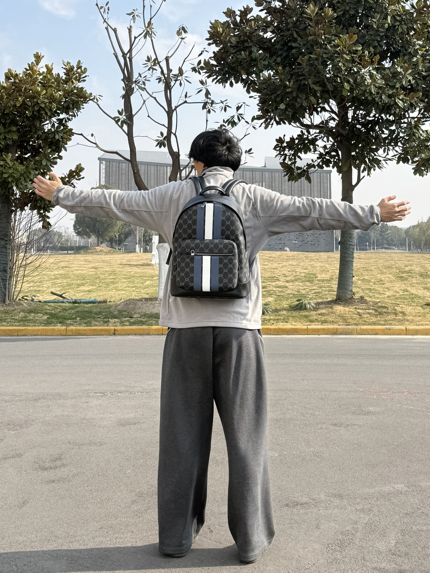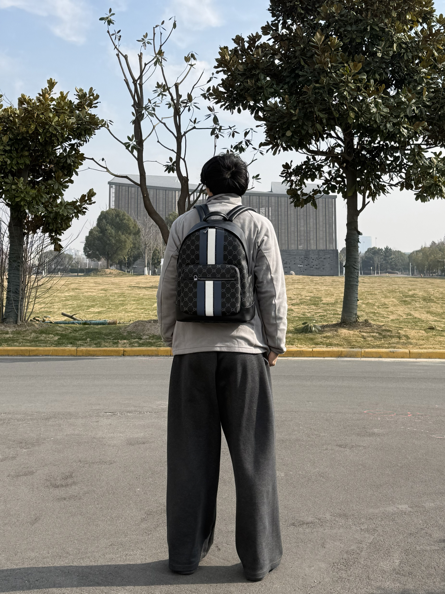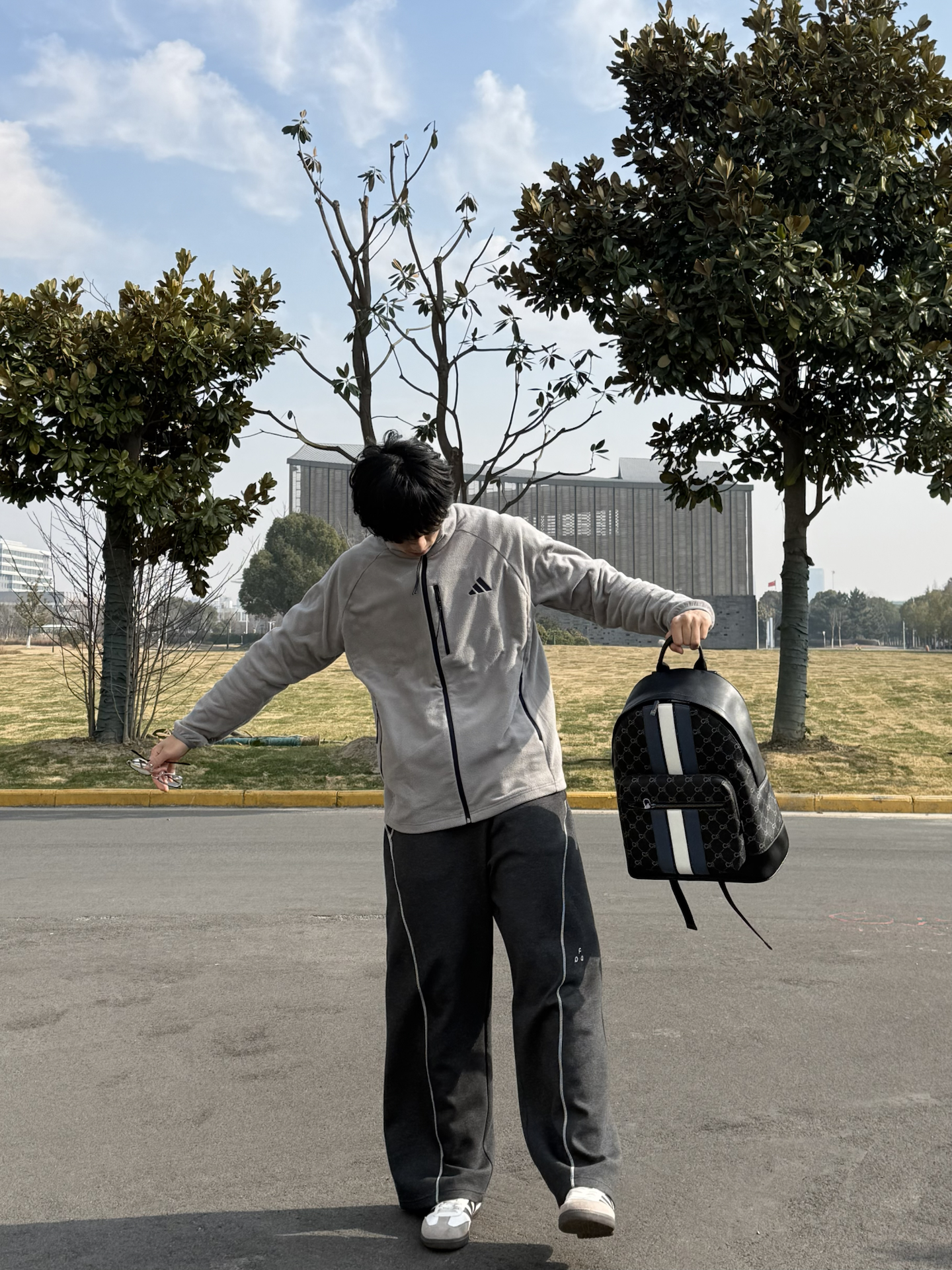 冬天的这一套确实够松弛啊~ 来自阿迪的摇粒绒外套🧥 质感与颜值都在线呢💫 👖裤子选择一个弯刀卫裤~ 不得不说弯刀的版型设计真的不错👌 修饰腿型的同时还很松弛 🎒包包是来自COOGI的皮质双肩包 经典的质感搭配上商务风元素 上面的复古条纹设计很有层次 皮质的包包耐脏又有质感 背上去上早八真的挺不错啊~ 图源网络,侵删!