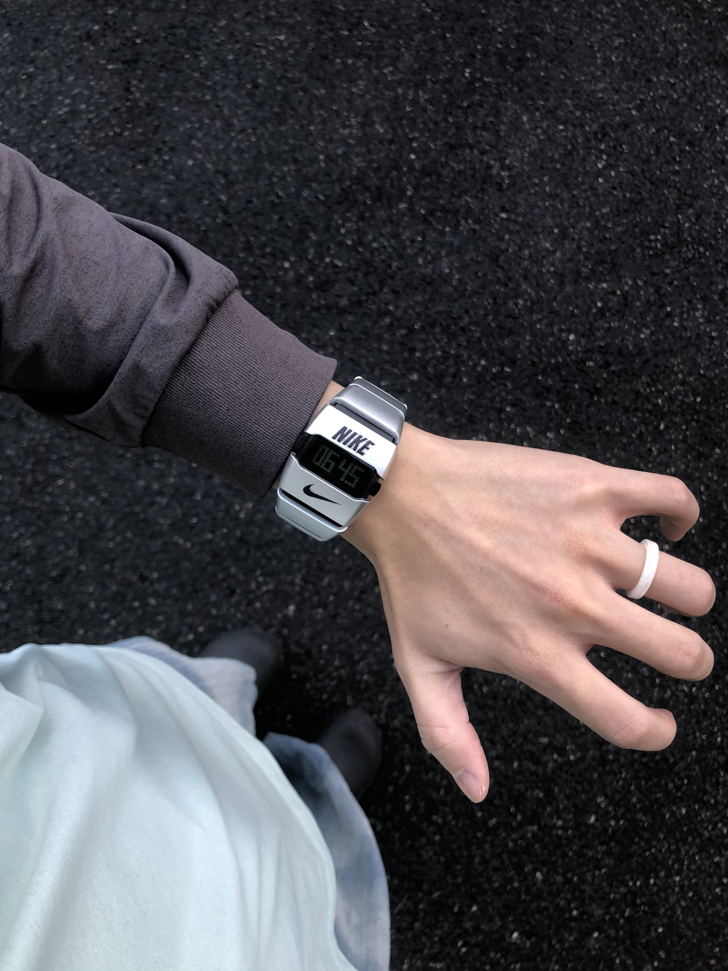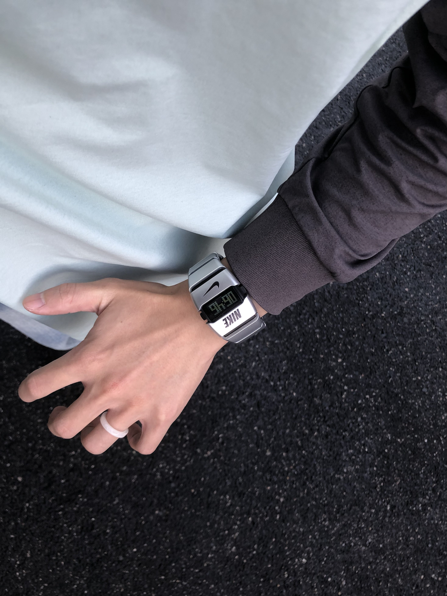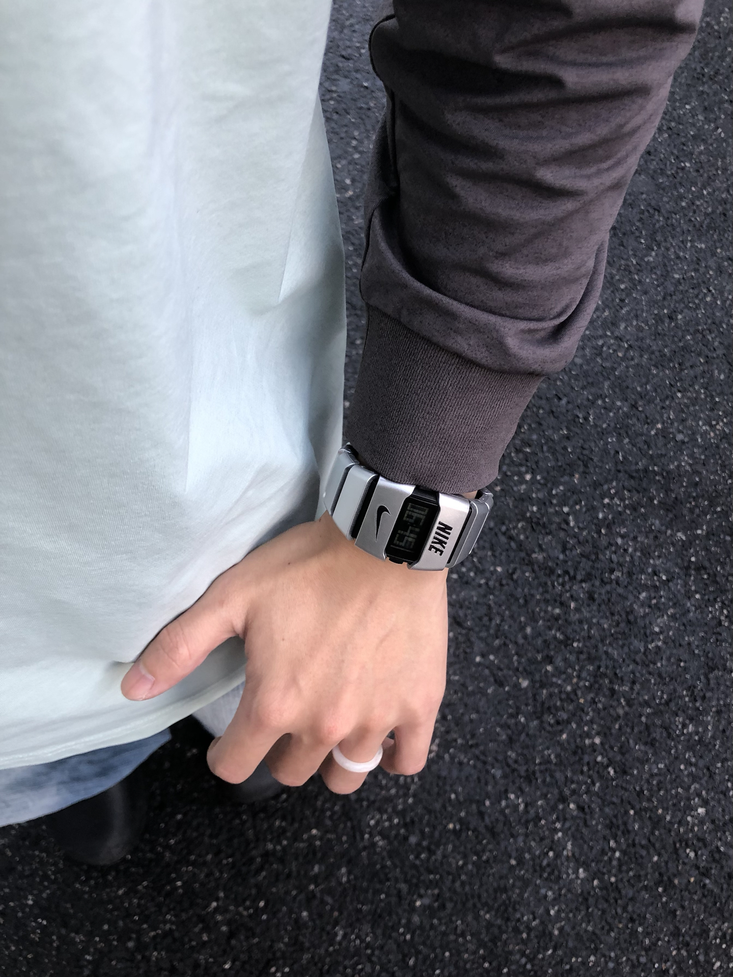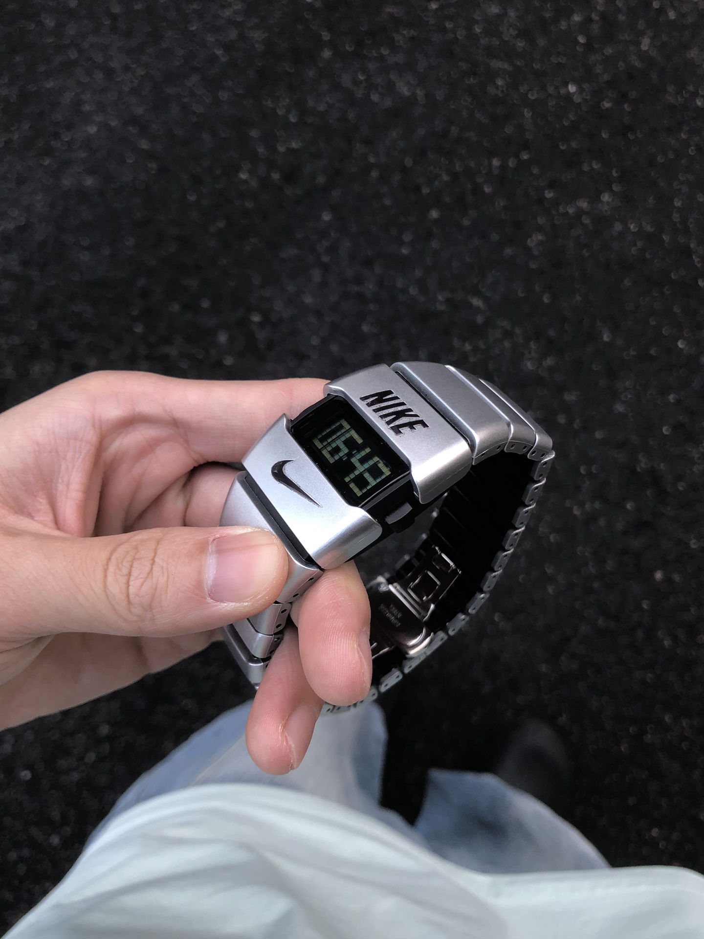 这块手表咋看起来这么像手环呢,确实还挺酷的哈 有点赛博朋克的感觉,表身是银色和黑色搭配着,是塑料的一个材质,还蛮轻的,佩戴上手也是酷酷的,今天天气挺好的,穿的长袖和牛仔裤,还挺合适的,圣诞来了,也可以安排安排, 潮流er可以冲!