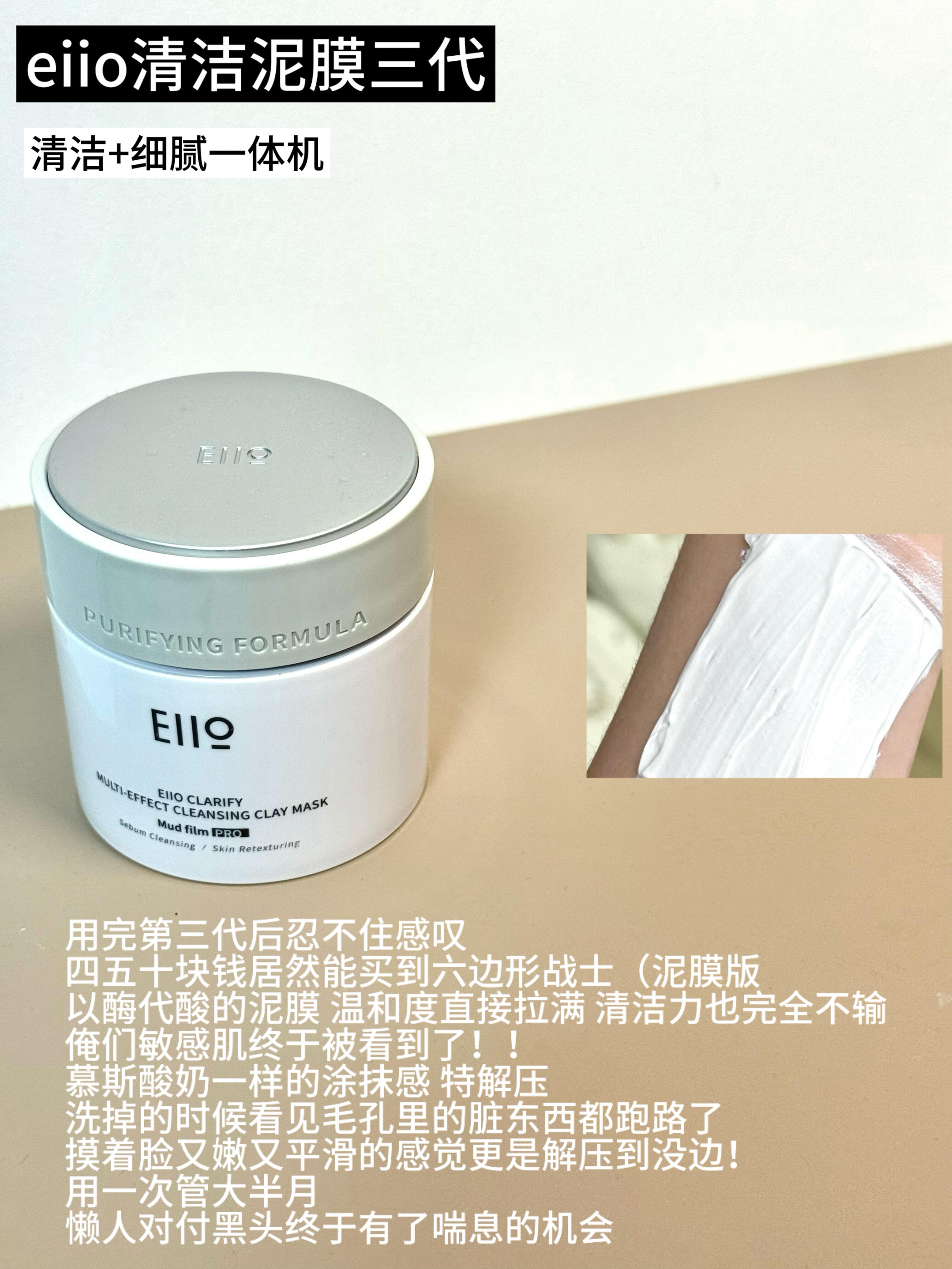 从刚上大学就开始用eiio的清洁泥膜,现在变身打工牛马了依然在用,怎么不算一种不忘初心呢(实际上是性价比太高了,很难再找到更合适的了 用了这么多年,怎么选我可太有发言权了!懒得看长字可以直接看俺滴总结⬇️ eiio清洁泥膜三代:清洁力与温和兼具!敏感肌想快速疏通毛孔+嫩脸的选这个 eiio黑泥膜:把黑白头赶尽杀绝片甲不留,油痘肌也能用一次管很久 eiio睡眠面膜:集精华面霜面膜于一身的提亮大师...