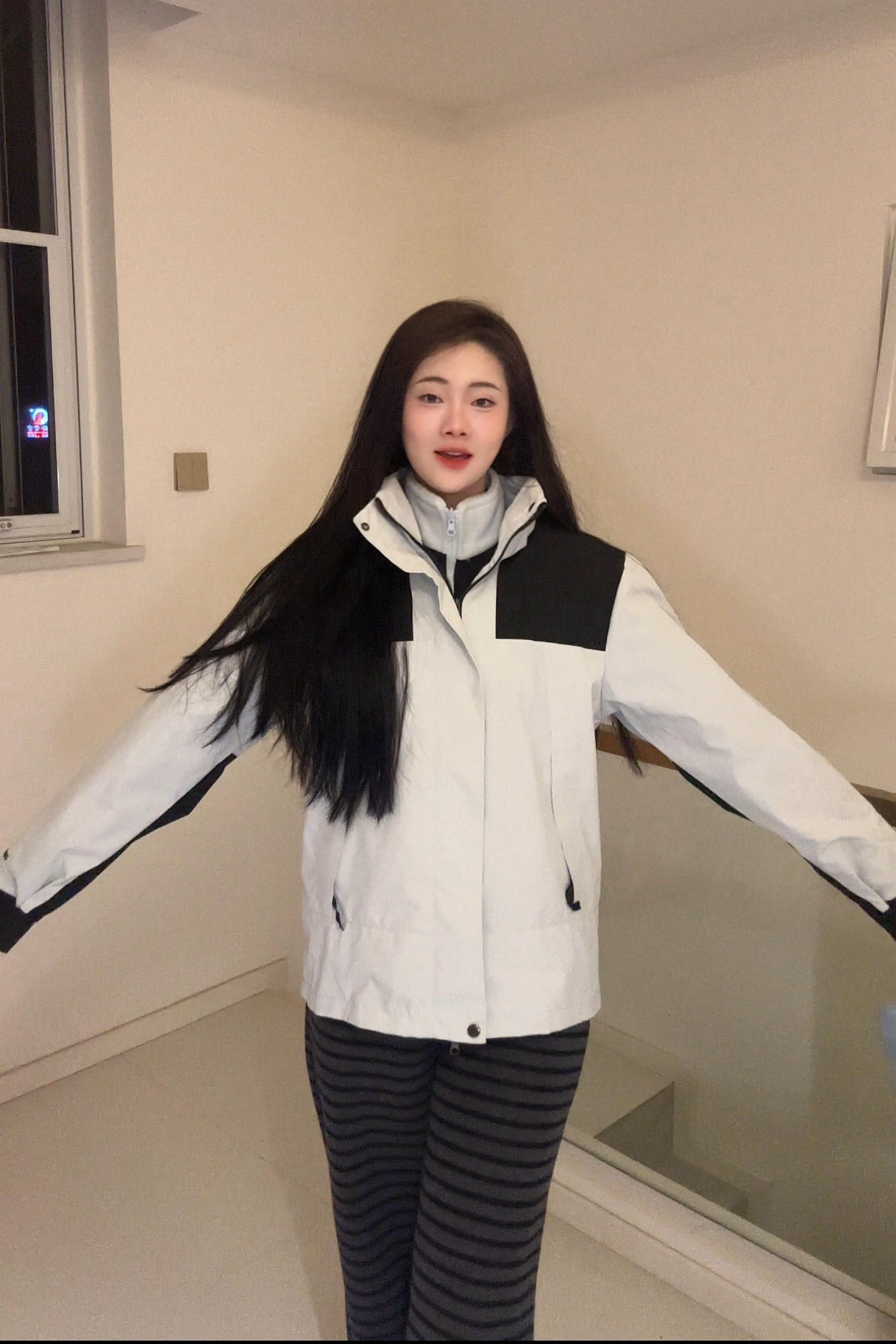外壳防风防水💧,内胆温暖抓绒🧣!三合一可拆卸,单穿叠穿超实用~立领+连帽双重防护🛡️,领口袖口弹力收口挡风保暖~拼色设计简约大气🎨,通勤户外轻松驾驭!版型宽松不挑身材,160-175斤穿都合身,正常尺码入手超舒服💯!