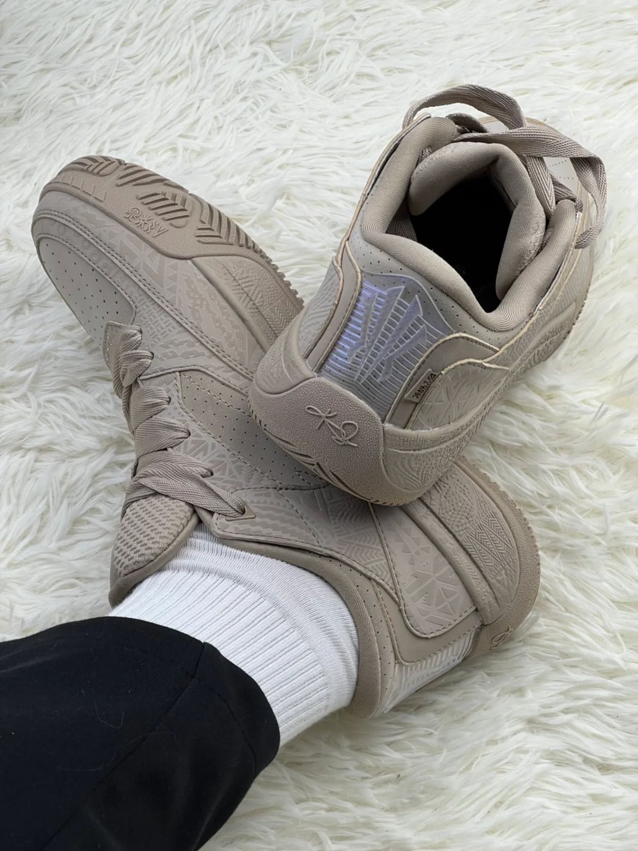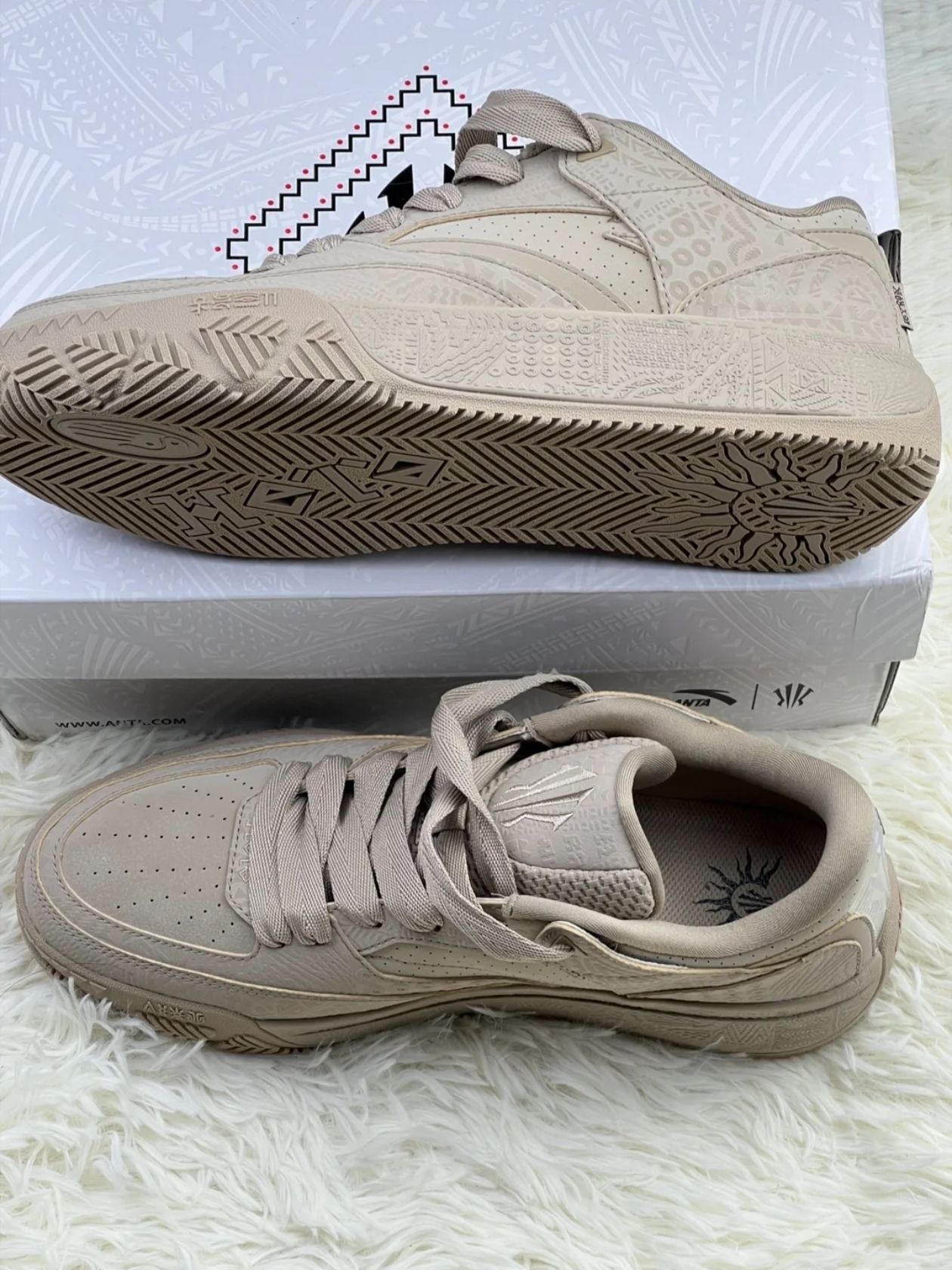 这双安踏凯里系列板鞋,第一眼就被这个浅卡其的暗纹设计戳中了鞋身的几何纹理不是烂大街的款,鞋盒上的专属标识也让这双鞋多了点独一份的感觉 上脚第一感受是软,鞋垫踩着不硌脚,冬天穿厚袜子也不会挤脚面,日常走路逛个街完全没压力!搭配性是真的惊喜,黑裤子、工装裤搭着都不违和,浅卡其色在冬天配大衣也很和谐哦