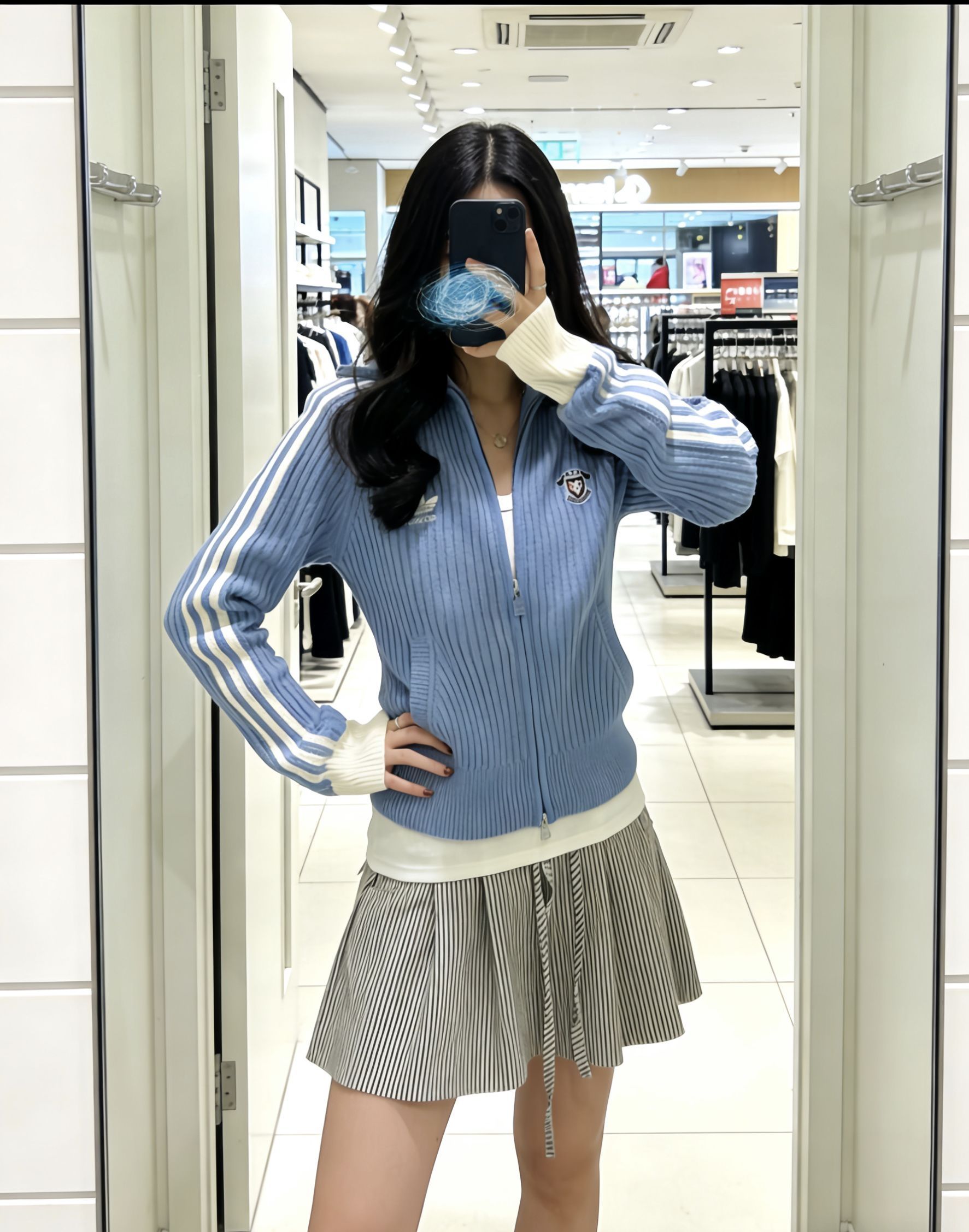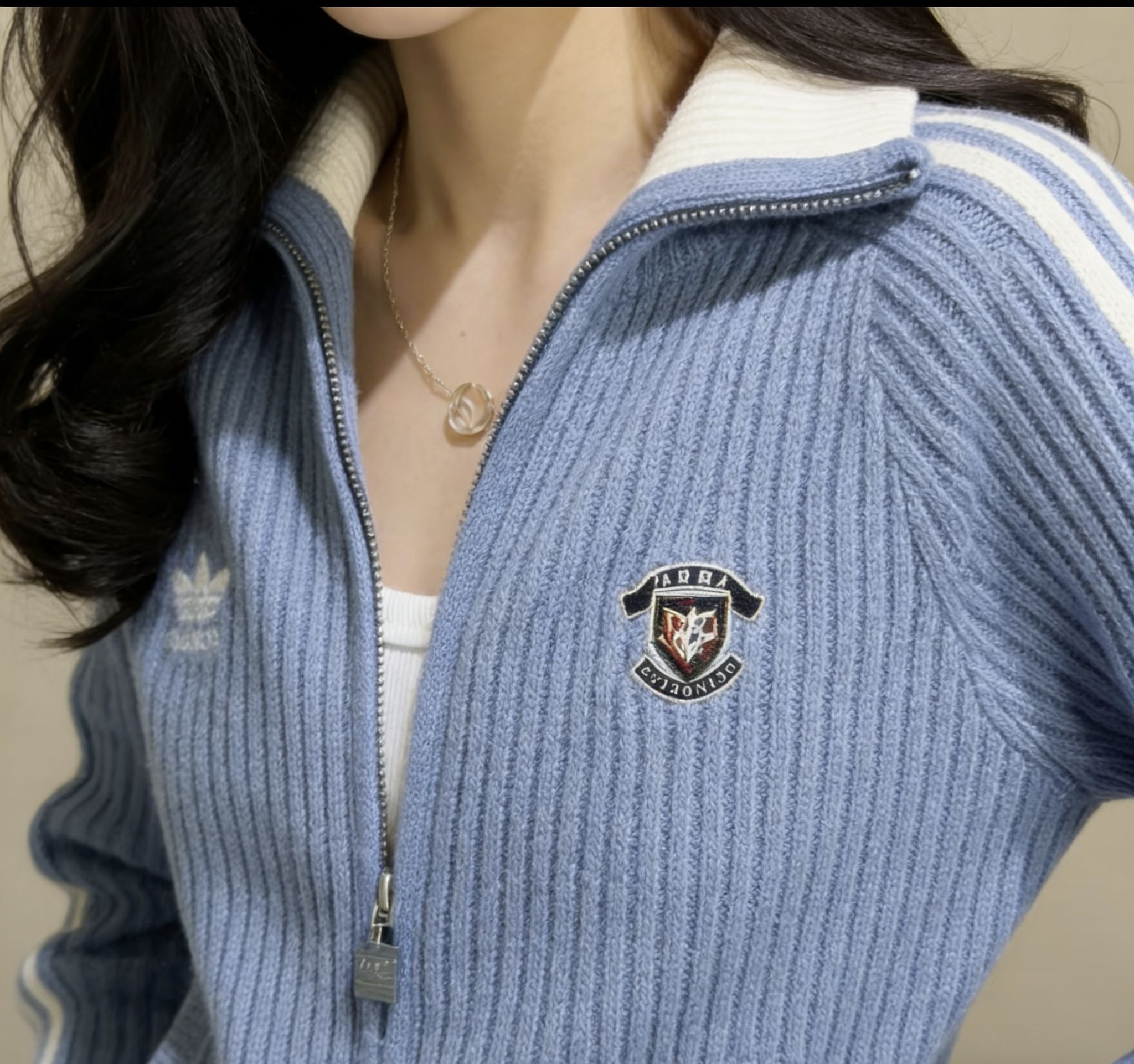 韩里韩气的松弛感被这件焊在身上啦🧥!雾霾蓝针织开衫尊滴温柔到骨子里~修身版型不挑人,奶白撞色条纹超点睛✨。随手搭条牛仔裤,慵懒氛围感直接拉满💯,早春通勤约会都能穿,韩系女主既视感拿捏🤌!