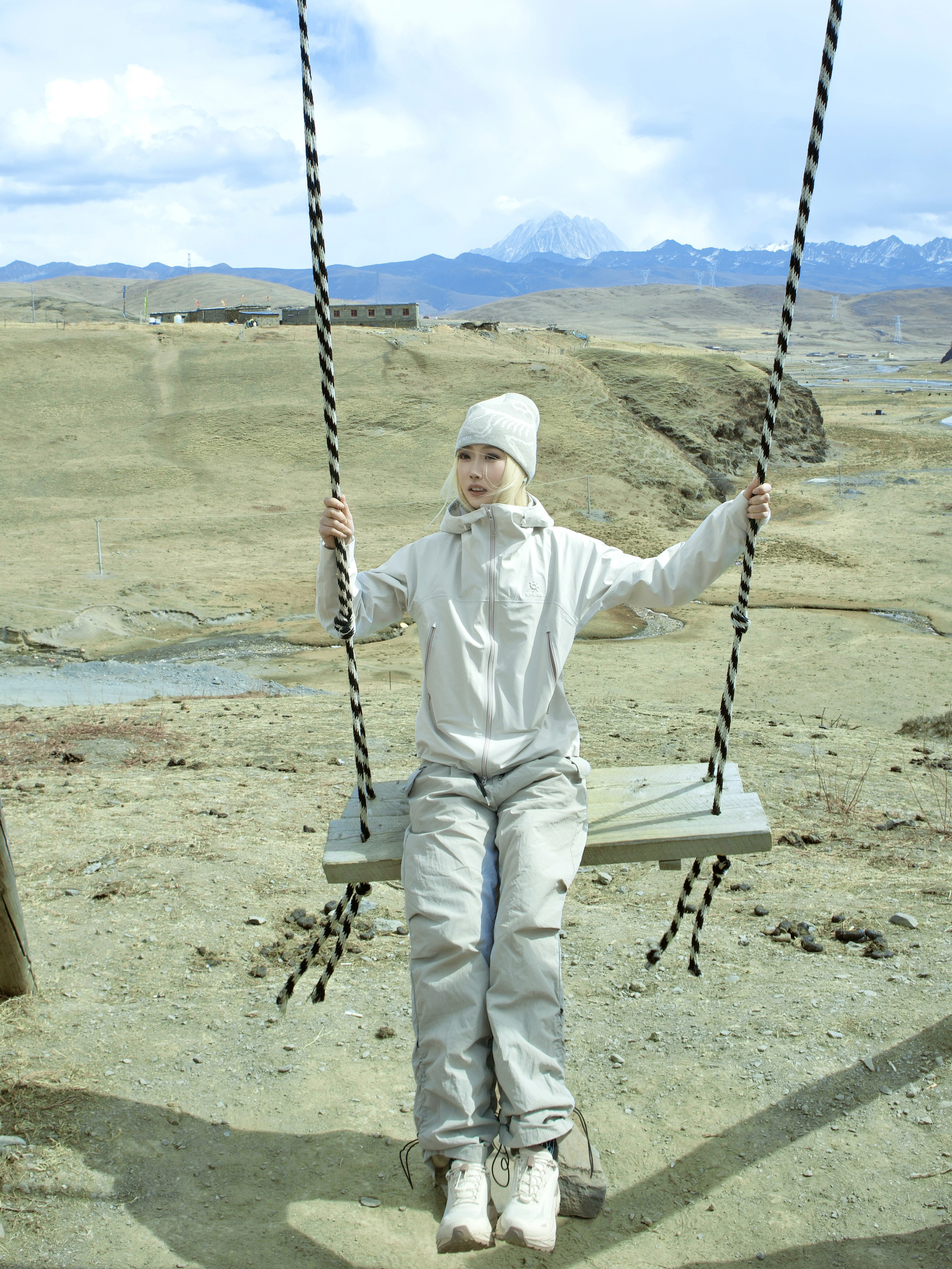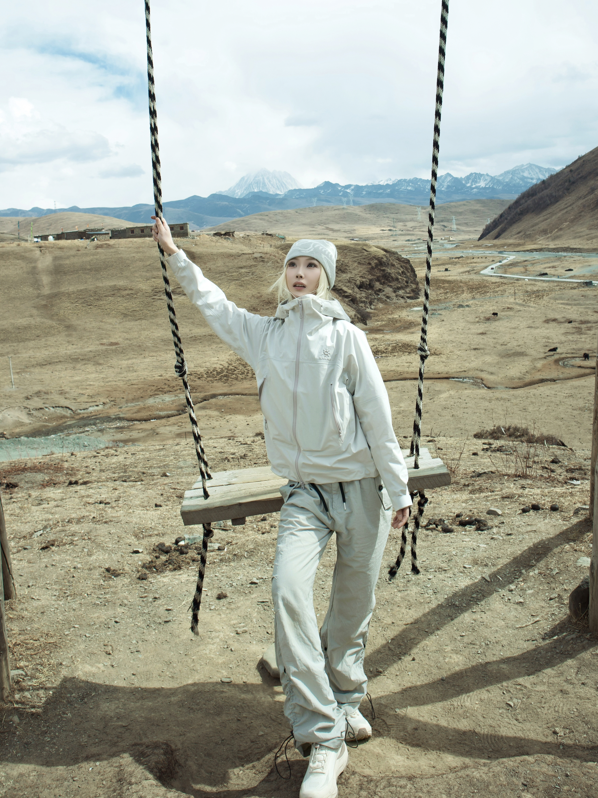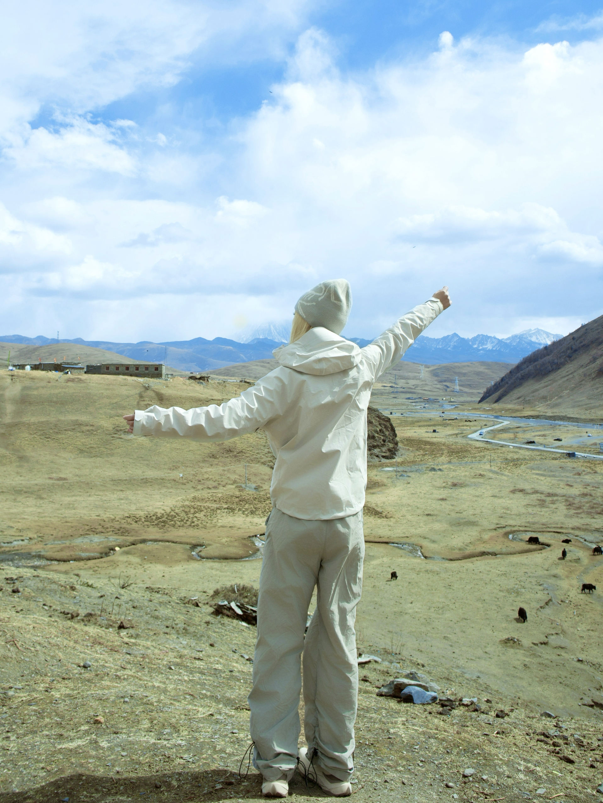 川西的路比想象中野 但这身装备确实扛住了! 淡粉色冲锋衣在雪山前特别上镜 白色伞兵裤耐脏又百搭 一套粉白配色在蓝天雪山里显得特别干净🏔️ 但今天必须单独夸这双探野LIT!白褐色配色好搭衣服 关键它真的轻 走了一天山路 脚感软弹得像踩在面包上 回到车上脱鞋那一刻才反应过来 走了六小时居然没觉得累👟 如果最近有去川西的姐妹 这双鞋可以列入清单 轻便好走还上镜 性价比真的可!