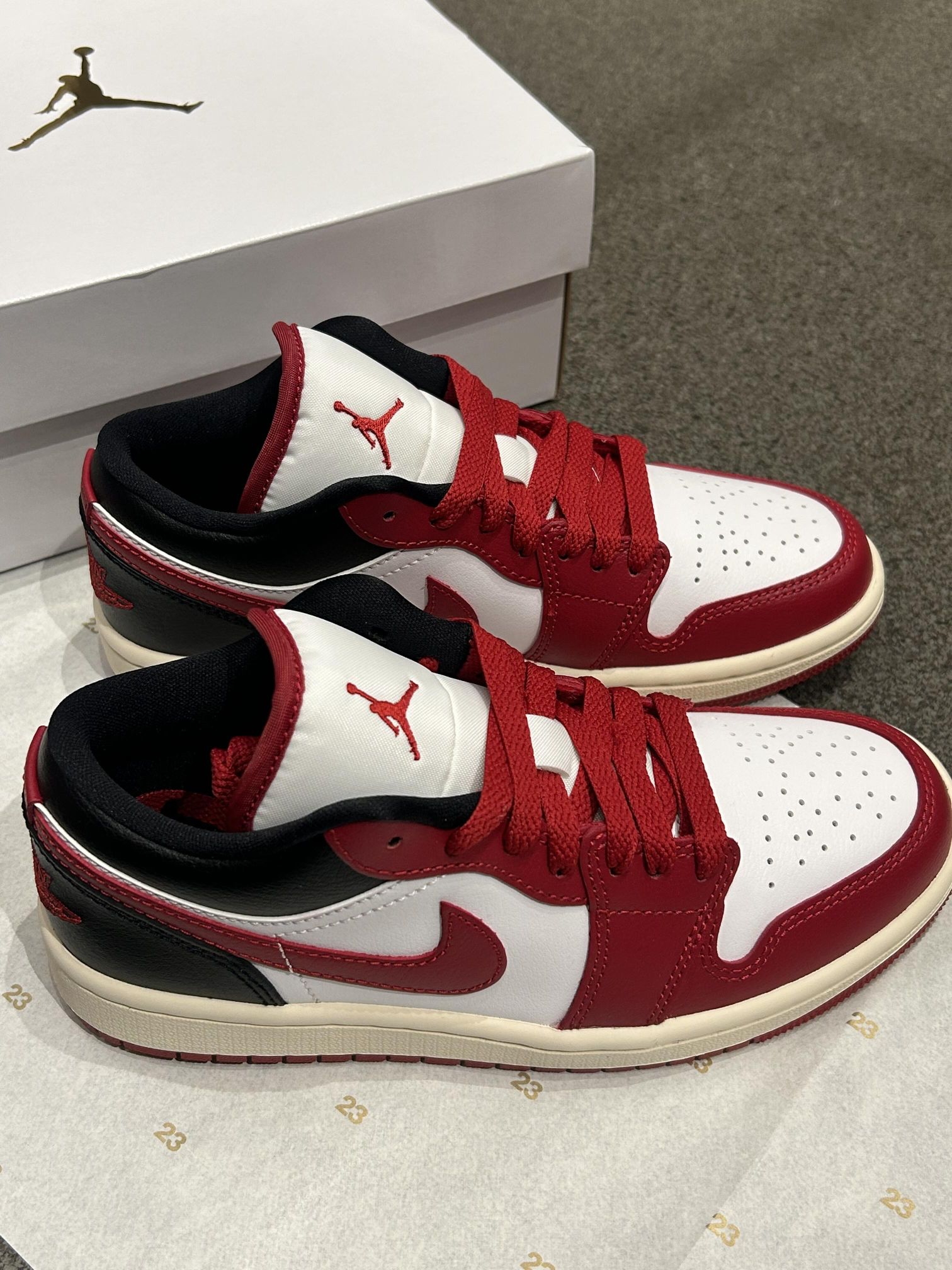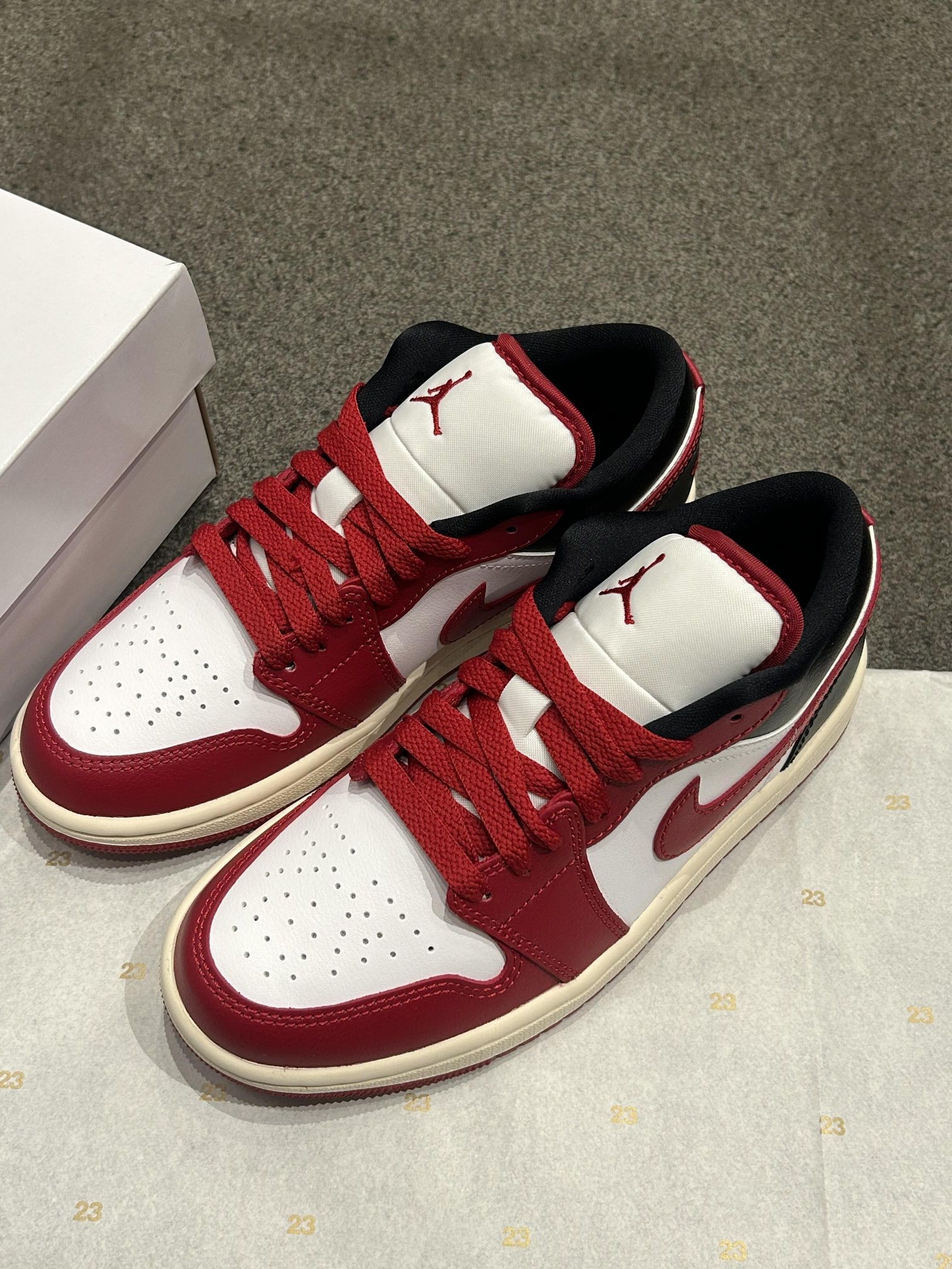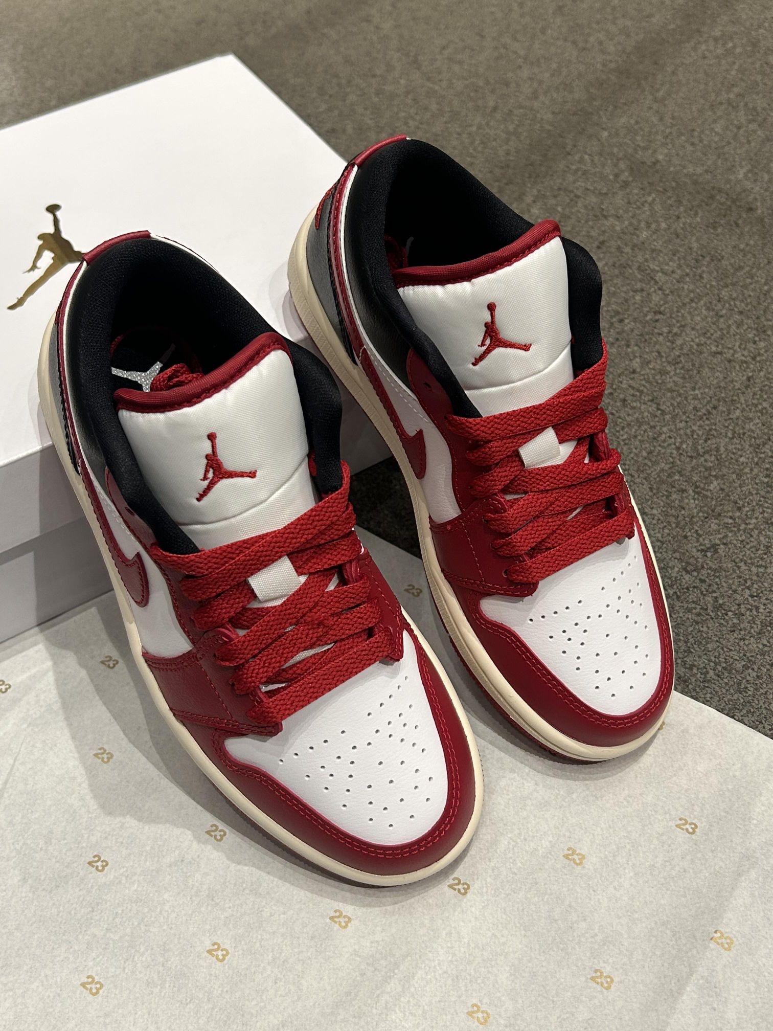 AJ1 Low ❤️✨“红白黑”芝加哥 超绝‼️ 白黑拼接➕💢红色鞋头 新年🎊氛围感拉🈵 皮革质感细👀腻 金色🪽飞翼刺绣低调显贵✨ ❤️✨酒红色 Swoosh✔️点缀✨ 超绝🤟 鞋舌/💢红色🪡刺绣 飞人Logo是点👀睛之笔! 日常穿搭超百搭🤗😇 甜酷or街头风随心切换🖱️