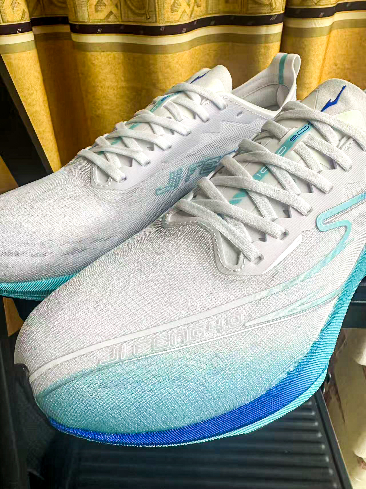 兄弟们,这双鸿星尔克极风4.0太懂痛点。蓝白渐变颜值在线,上脚软弹不闷脚。仿生碎钉大底抓地超强,弯道加速不打滑,玻纤板助力每一步都省力。日常通勤、场地训练一双搞定。 #学生党跑鞋 #体测神器 #性价比之王