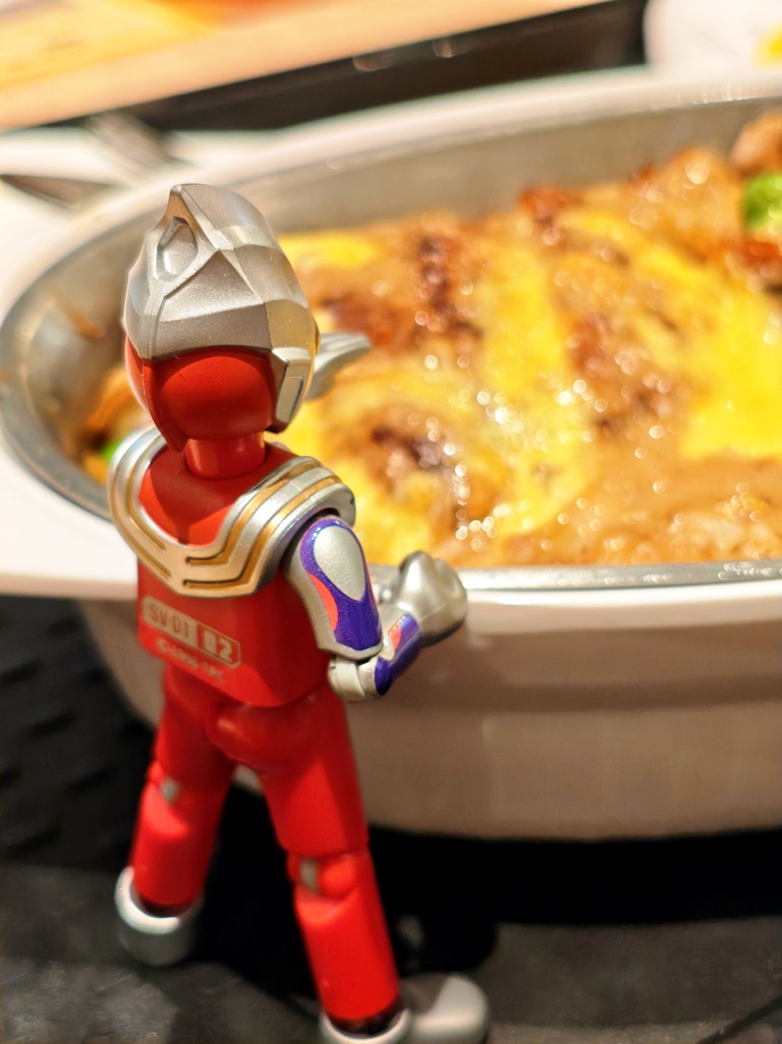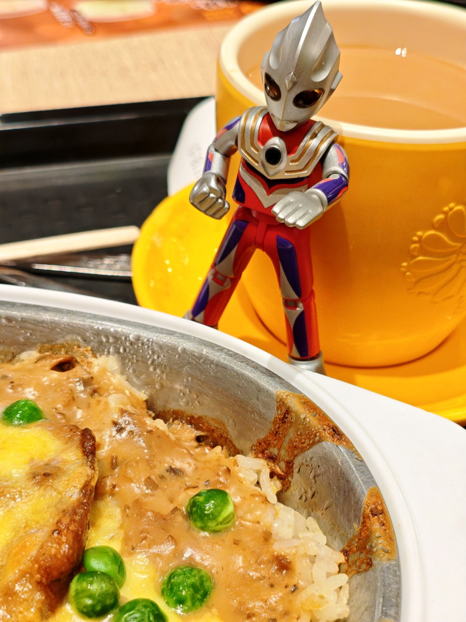今日份快乐:带迪迦打卡餐厅🍴 光之巨人当饭搭子,主打一个仪式感拉满,就是这碗饭有点烫脚😂