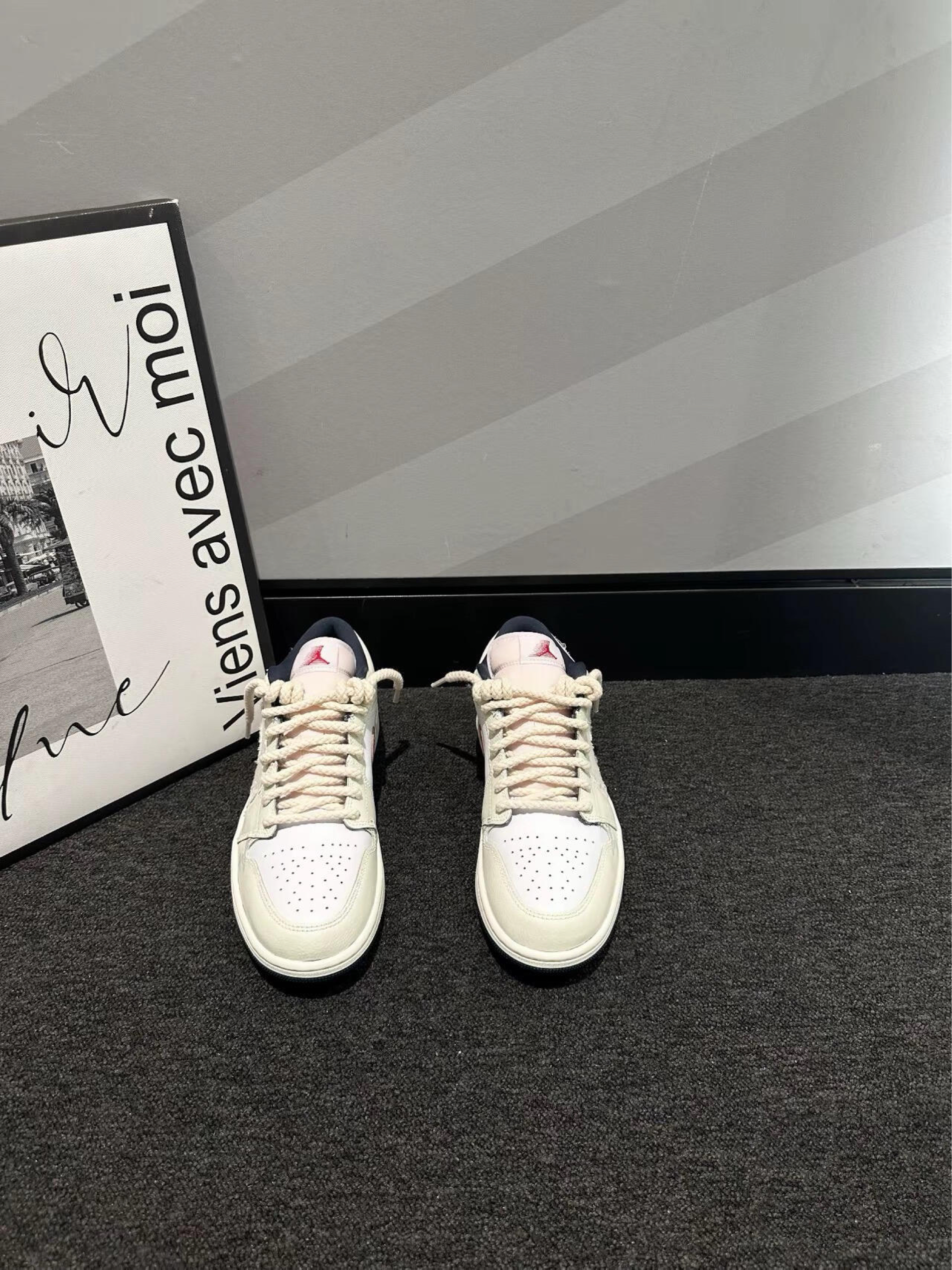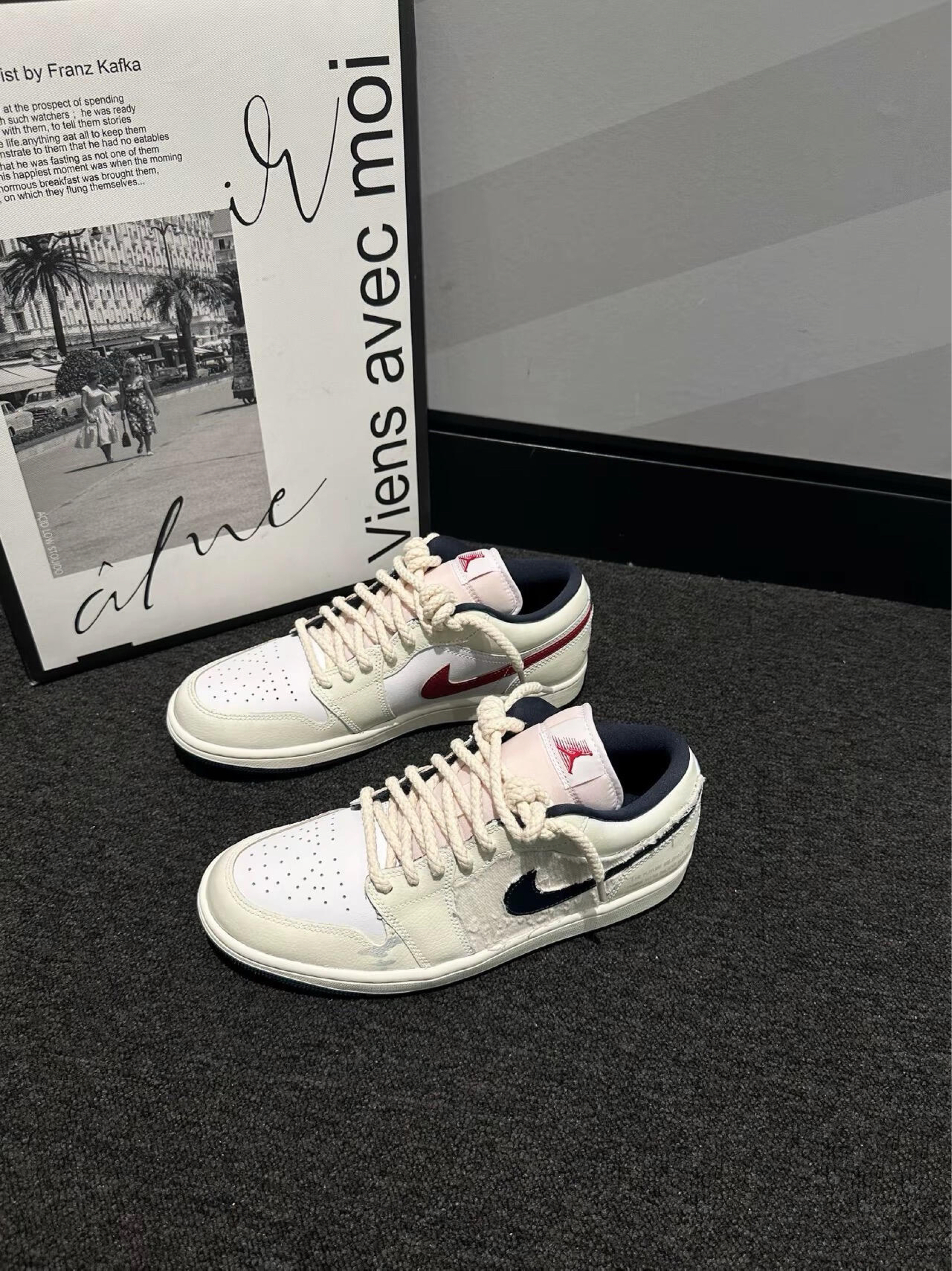 米白拼接鞋面自带复古滤镜,粗麻绳鞋带松弛感拉满,红蓝鸳鸯Swoosh点亮细节,低帮版型适配所有季节。搭牛仔裤是街头少年,配百褶裙秒变甜酷少女,这双鞋把复古与潮流的平衡感拿捏得恰到好处,上脚就是行走的氛围感模板。
