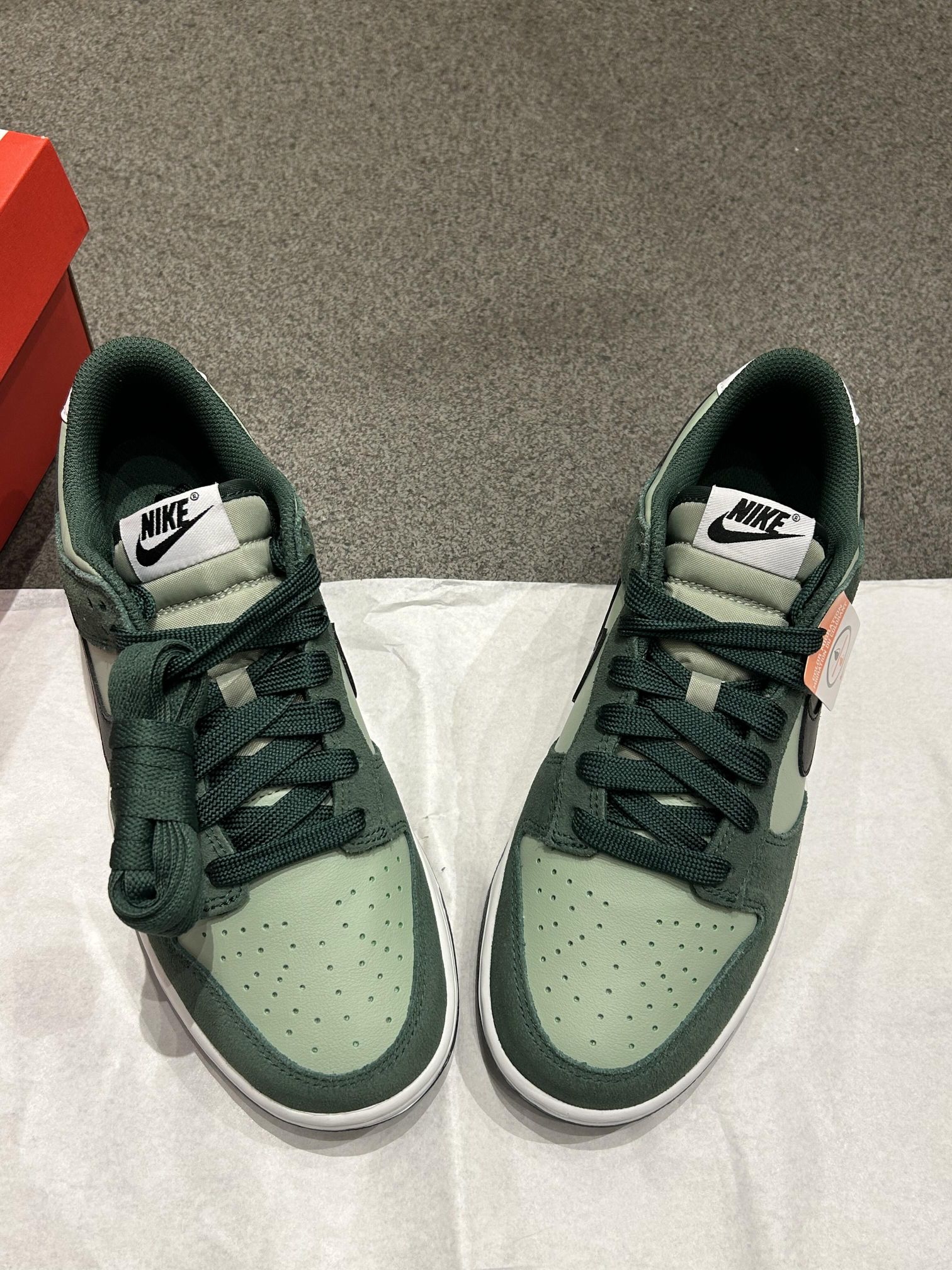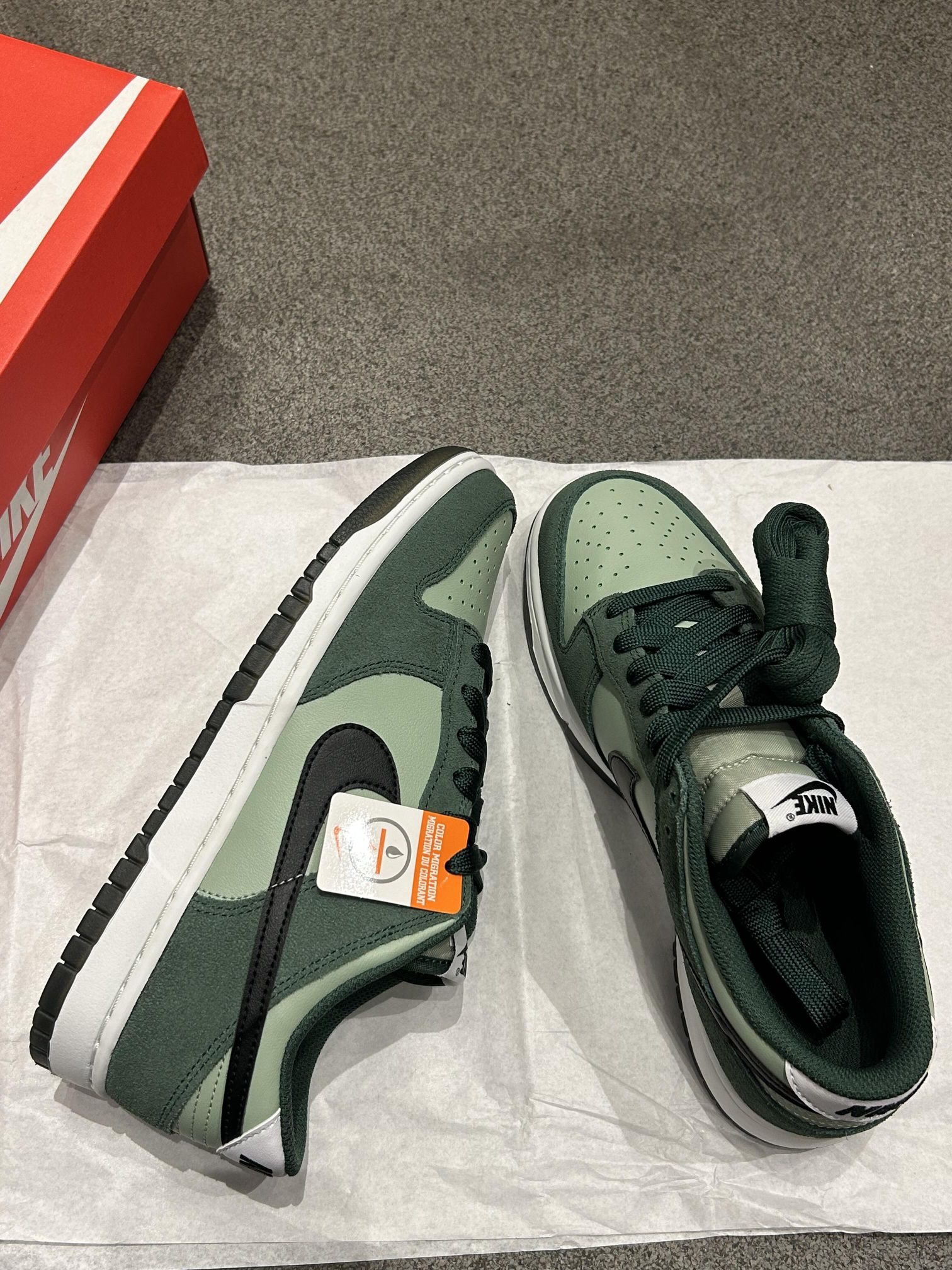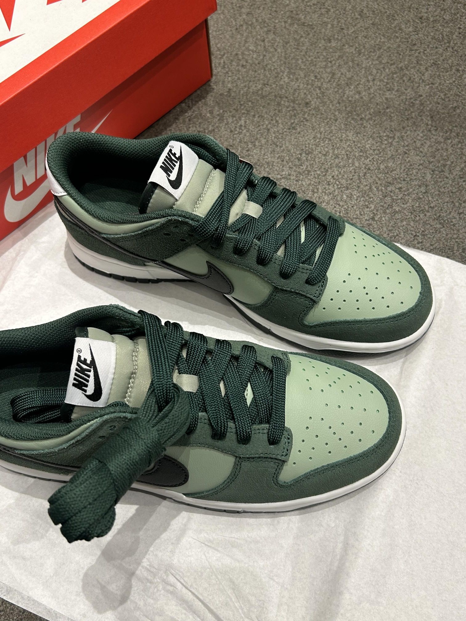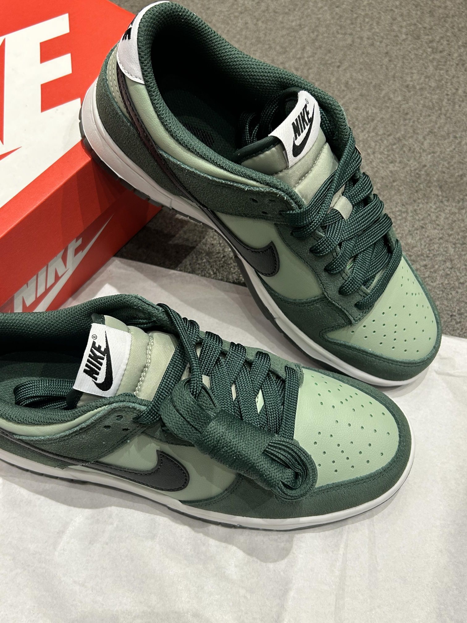 🌿Nike Dunk Low复古绿配色 浅绿皮革+深绿麂皮拼接🩵 黑色Swoosh点缀,低调又有层次感 低帮设计 日常穿搭超百搭 工装裤、牛仔裤、裙装都能轻松hold住✨ 鞋面透气 鞋垫舒适,长时间穿也不累😍