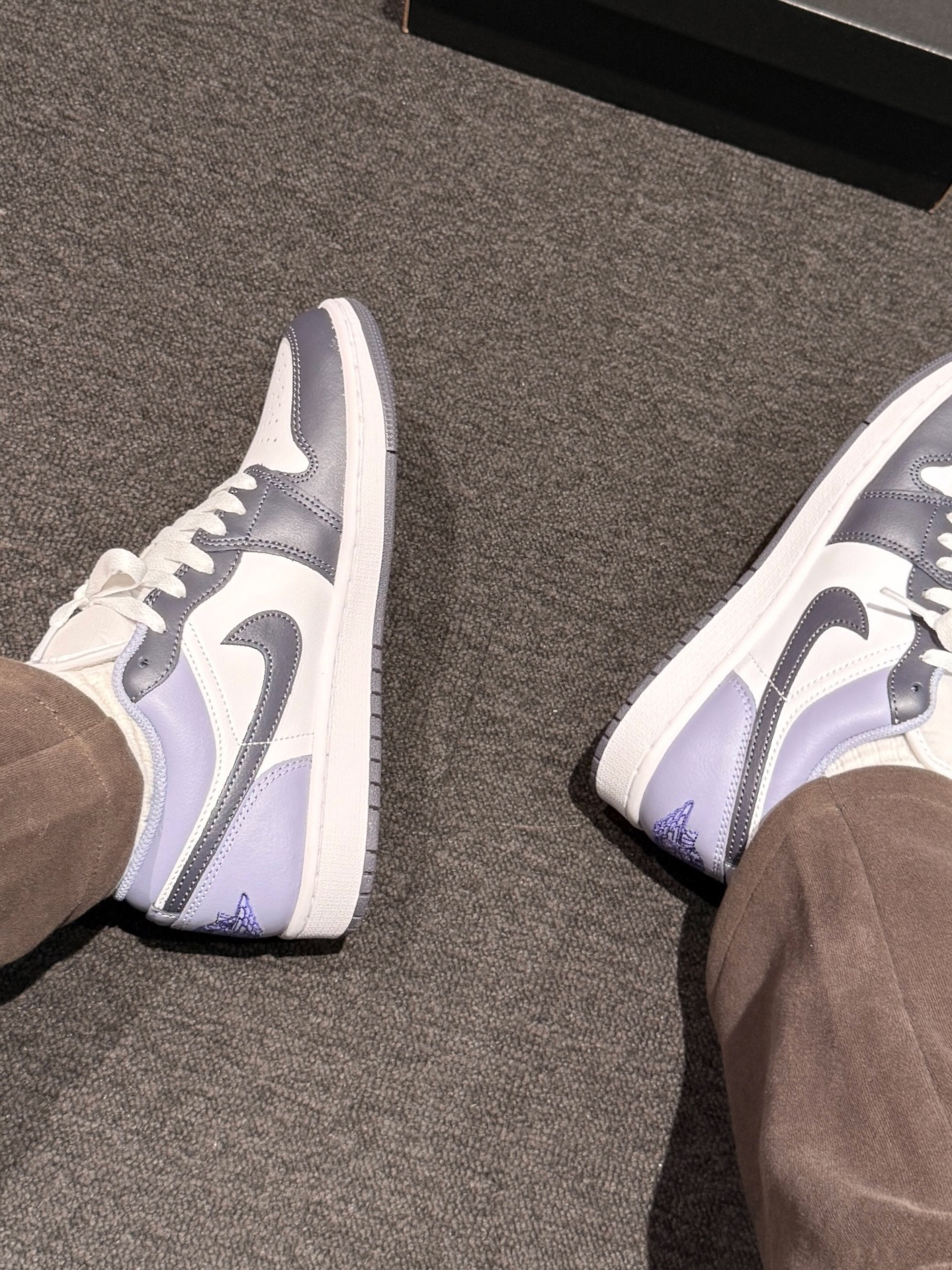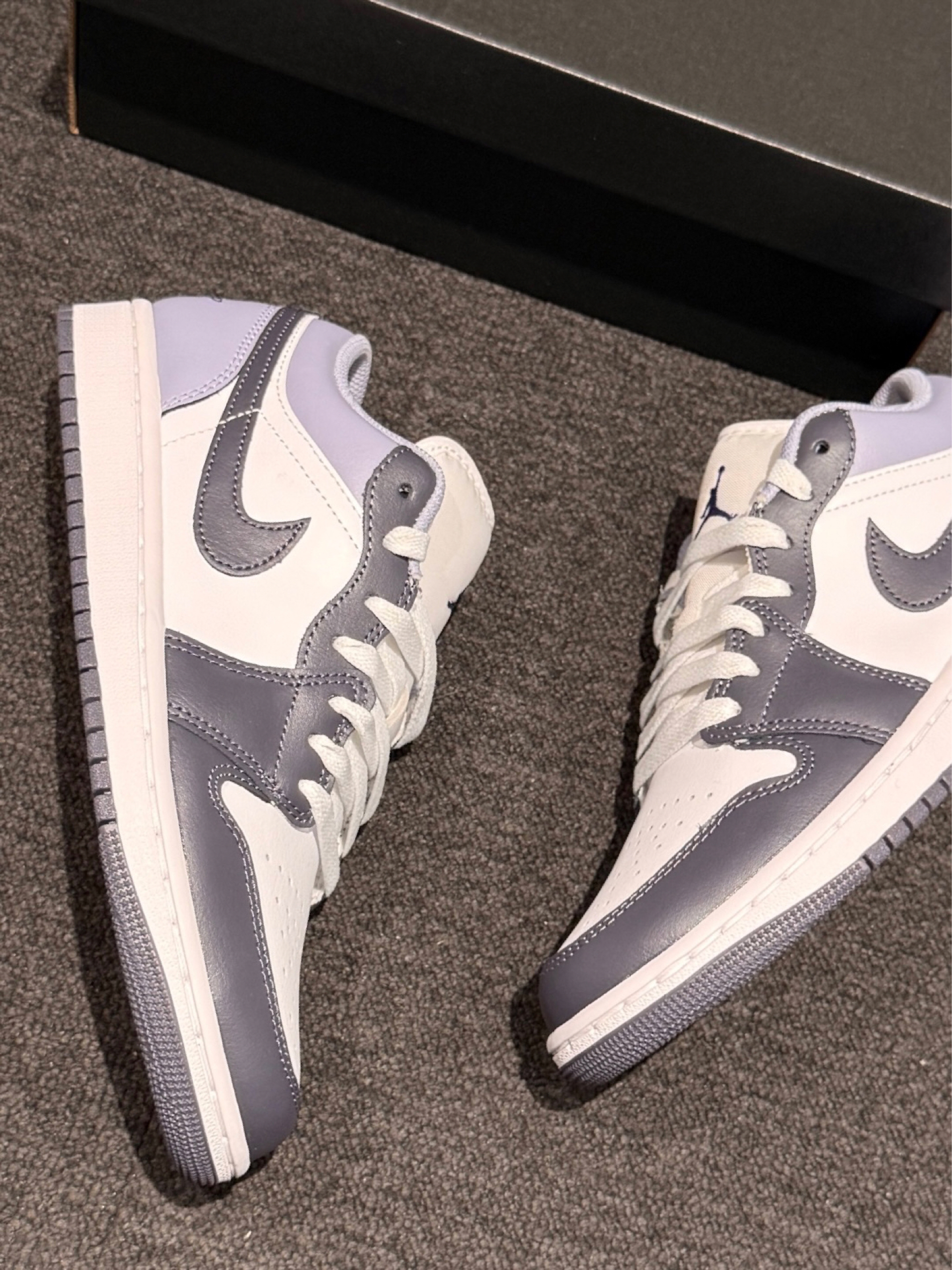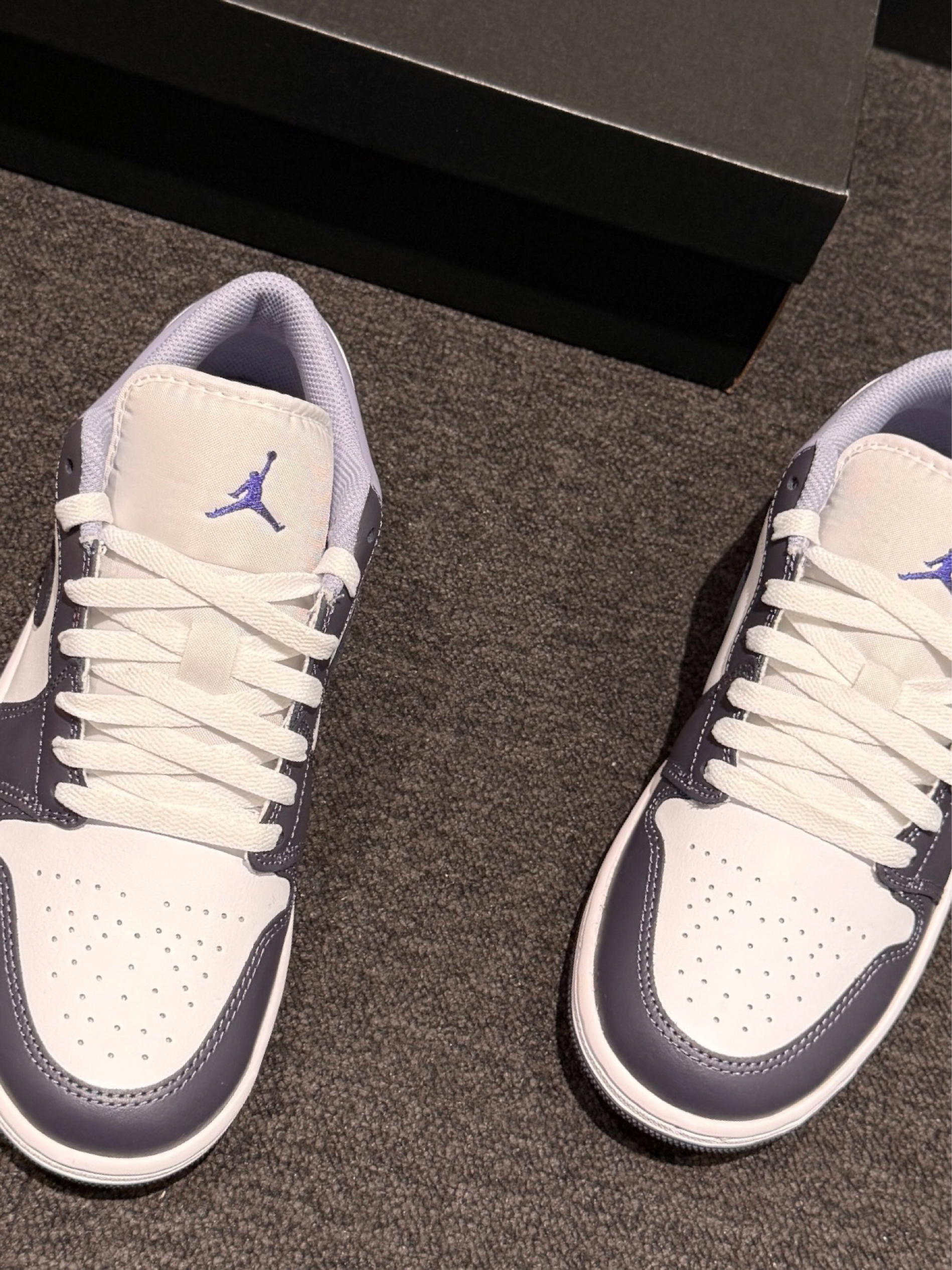 真的太喜欢这双经典黑白紫Jordan了,温温柔柔的颜色搭配就好适合日常耶 鞋面的皮革质感就蛮不错的,摸着软乎乎的,日常冬天搭配休闲裤牛仔裤都好好看 我穿着脚感舒服,不是很挤脚,日常通勤还是散步出门拍照好出片!