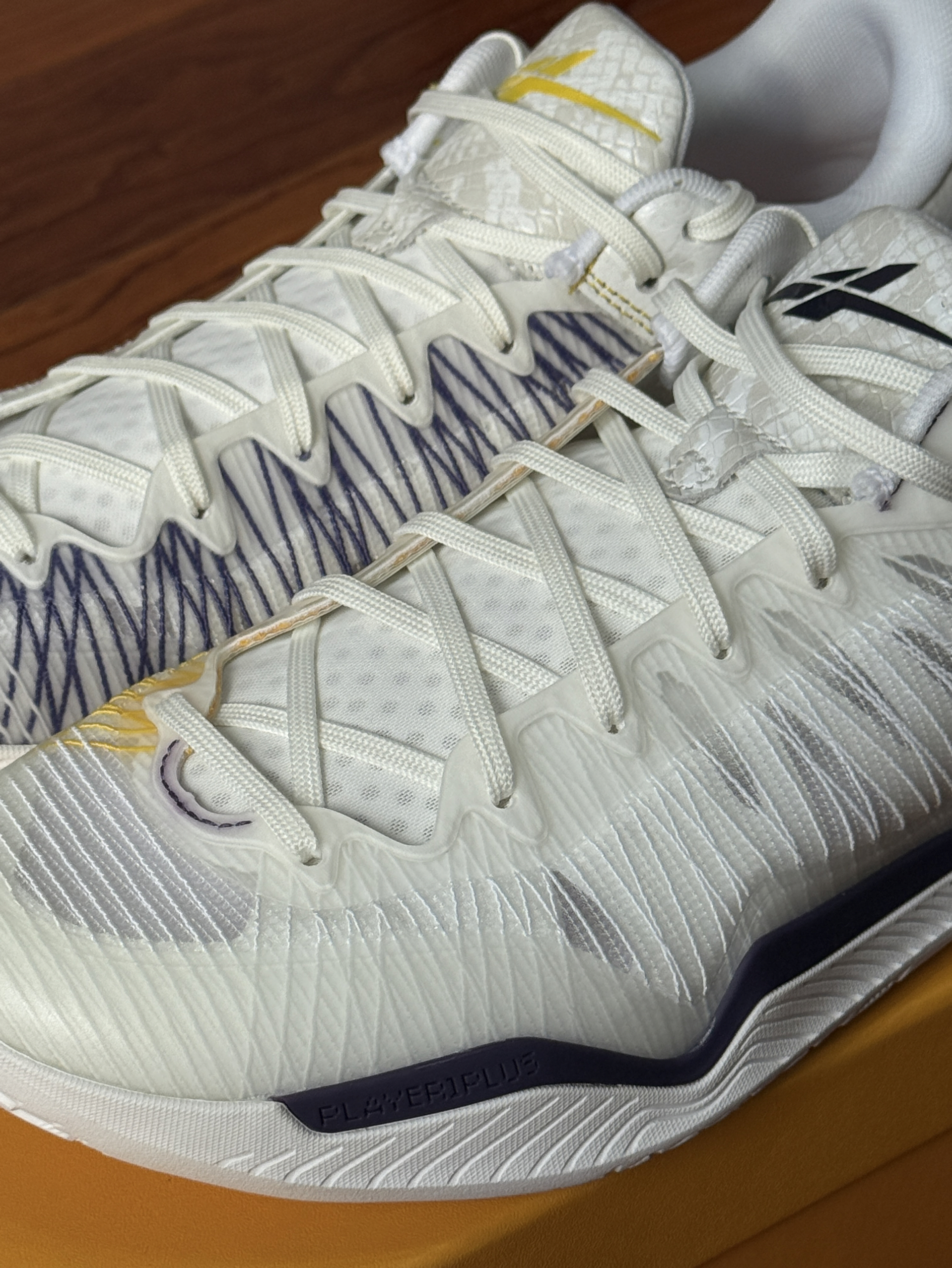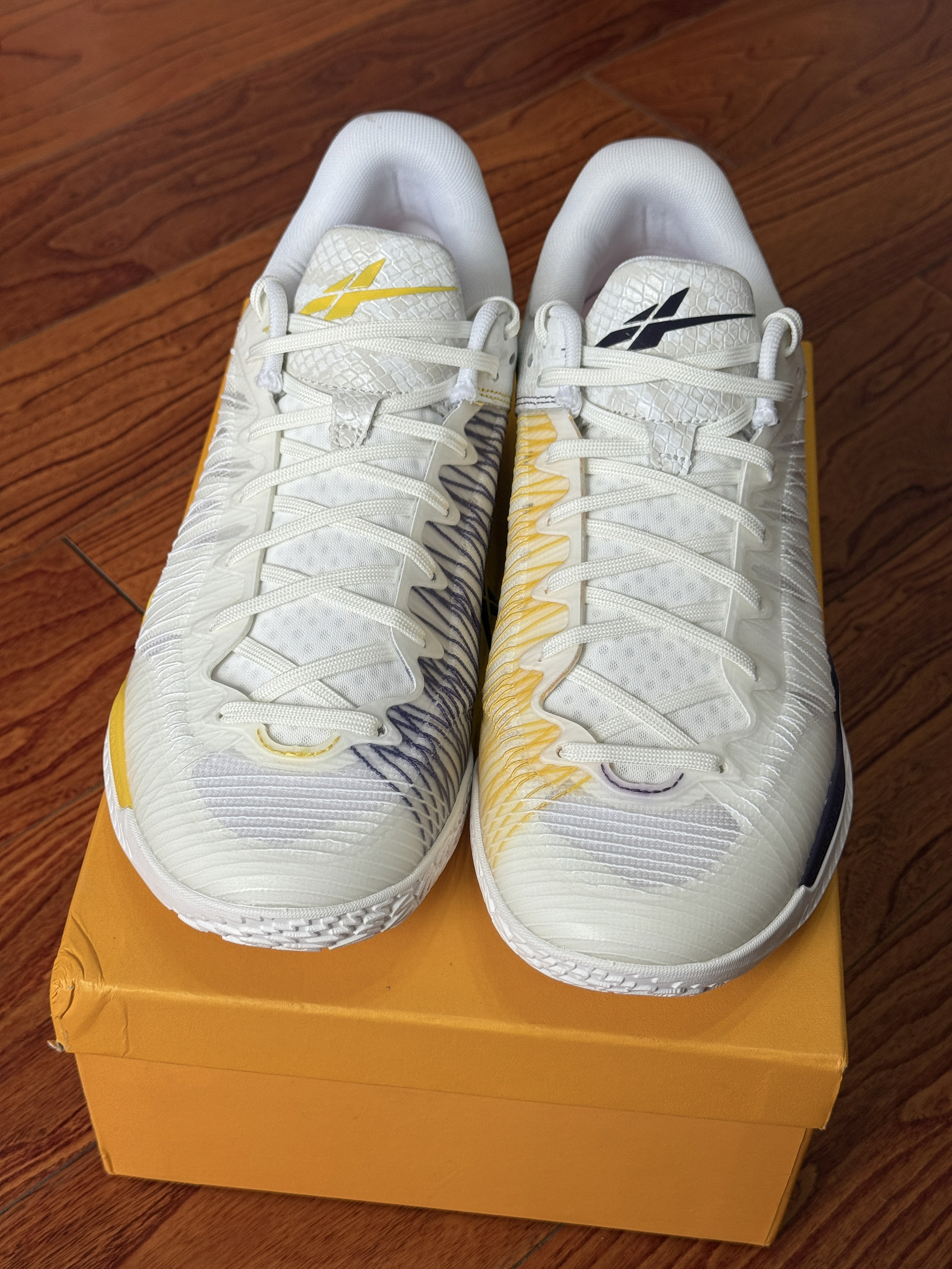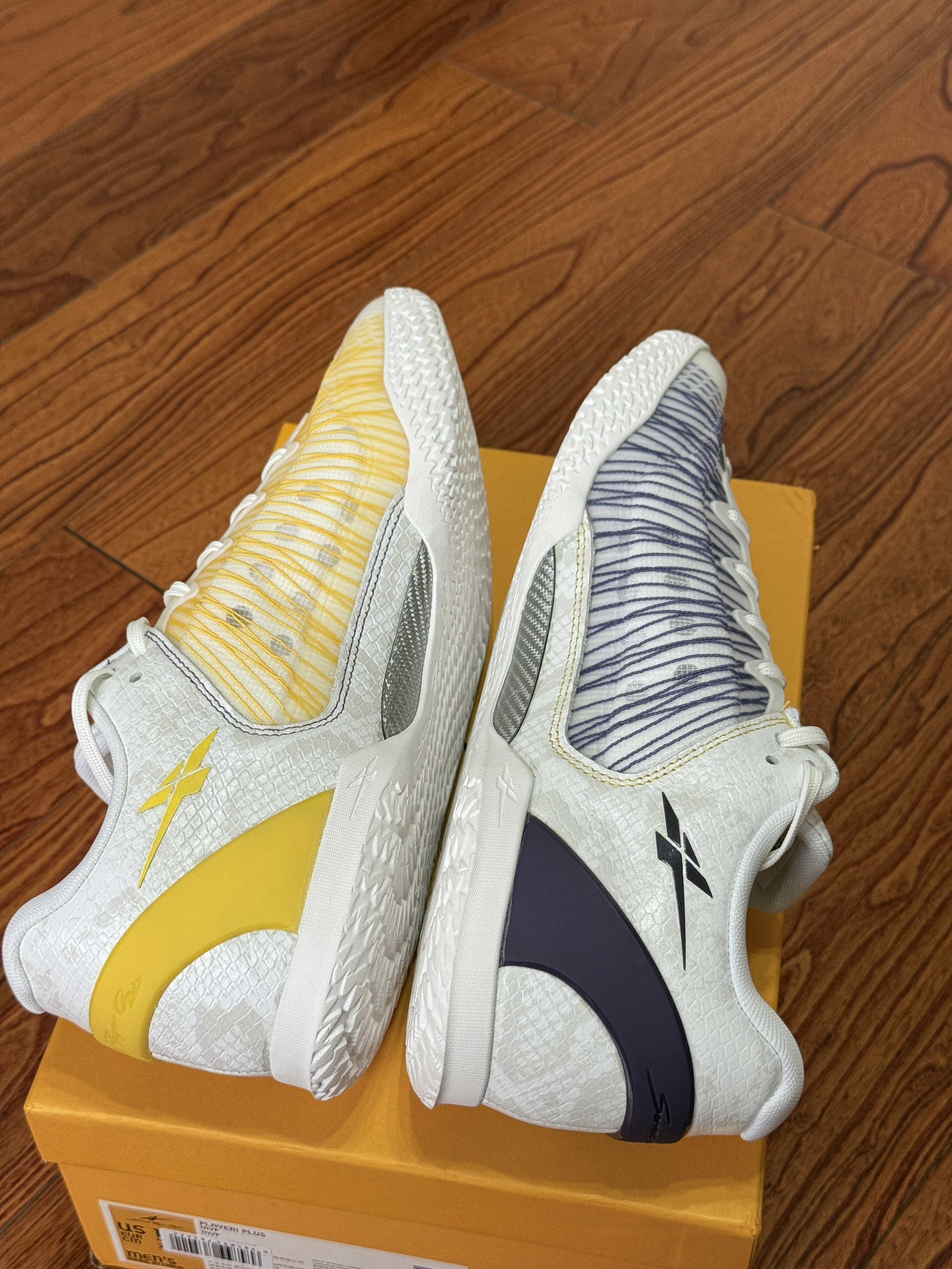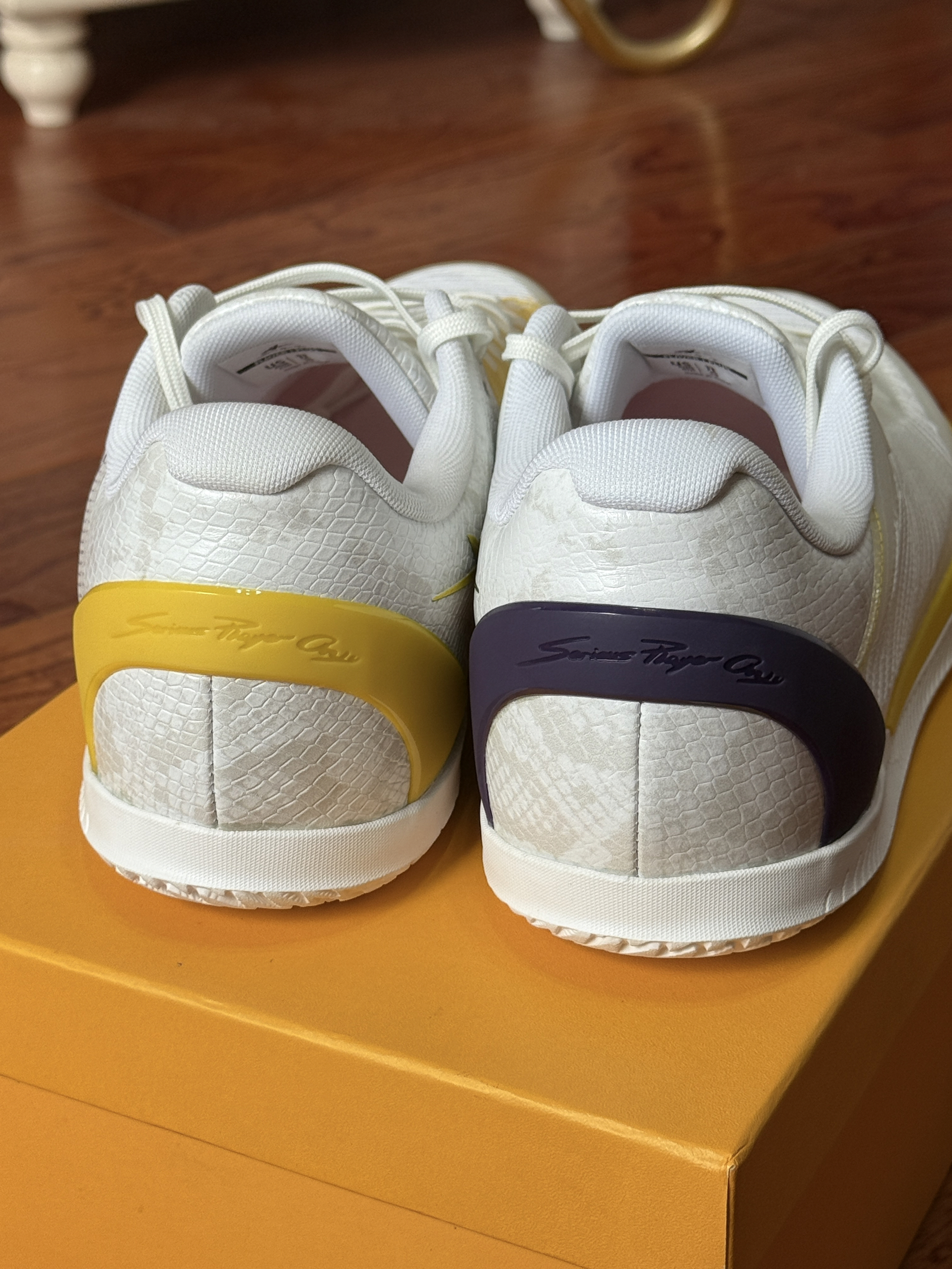 这双紫金鸳鸯Player Plus,我愿称之为Plus系列里颜值天花板的存在。经典湖人紫金撞色采用左右不对称鸳鸯设计,紫与金碰撞自带光环,气场直接拉满。后跟细腻蛇纹皮质质感出众,一眼就能看出是向科比与曼巴精神致敬,情怀与颜值双在线。作为2024年8月发售的经典配色,它搭载初代速度1.0与力量双系统,实战脚感扎实稳定。无论是日常出街吸睛,还是上场实战,都兼具格调与性能,曼巴门徒看到很难不心动。