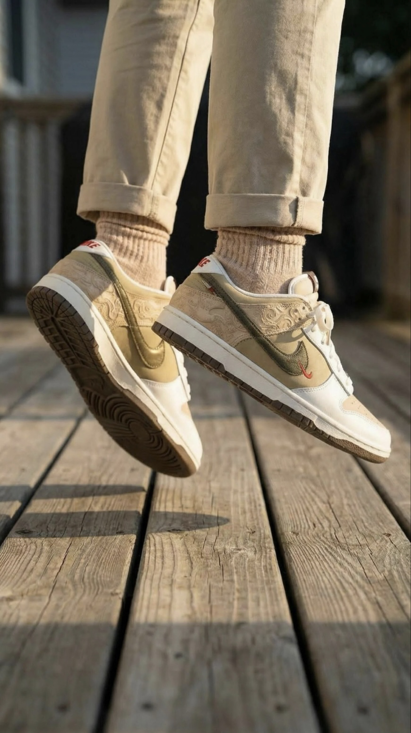 1️⃣第一双Nike Dunk Low 马年限定「踏云」IQ1118-220 作为Dunk系列的马年生肖限定款,这双以「踏云」为设计主题,在复古板鞋的基底上融入了细腻的中国风细节,是兼具文化表达与实穿性的年度鞋款。 👉整体配色以米白、浅棕、卡其为主调,暖色调拼接层次分明,既保留了Dunk Low复古百搭的气质,又通过温润的质感契合新春氛围。材质上采用多种皮革与绒面革拼接,鞋头透气冲孔保证日常穿着的...