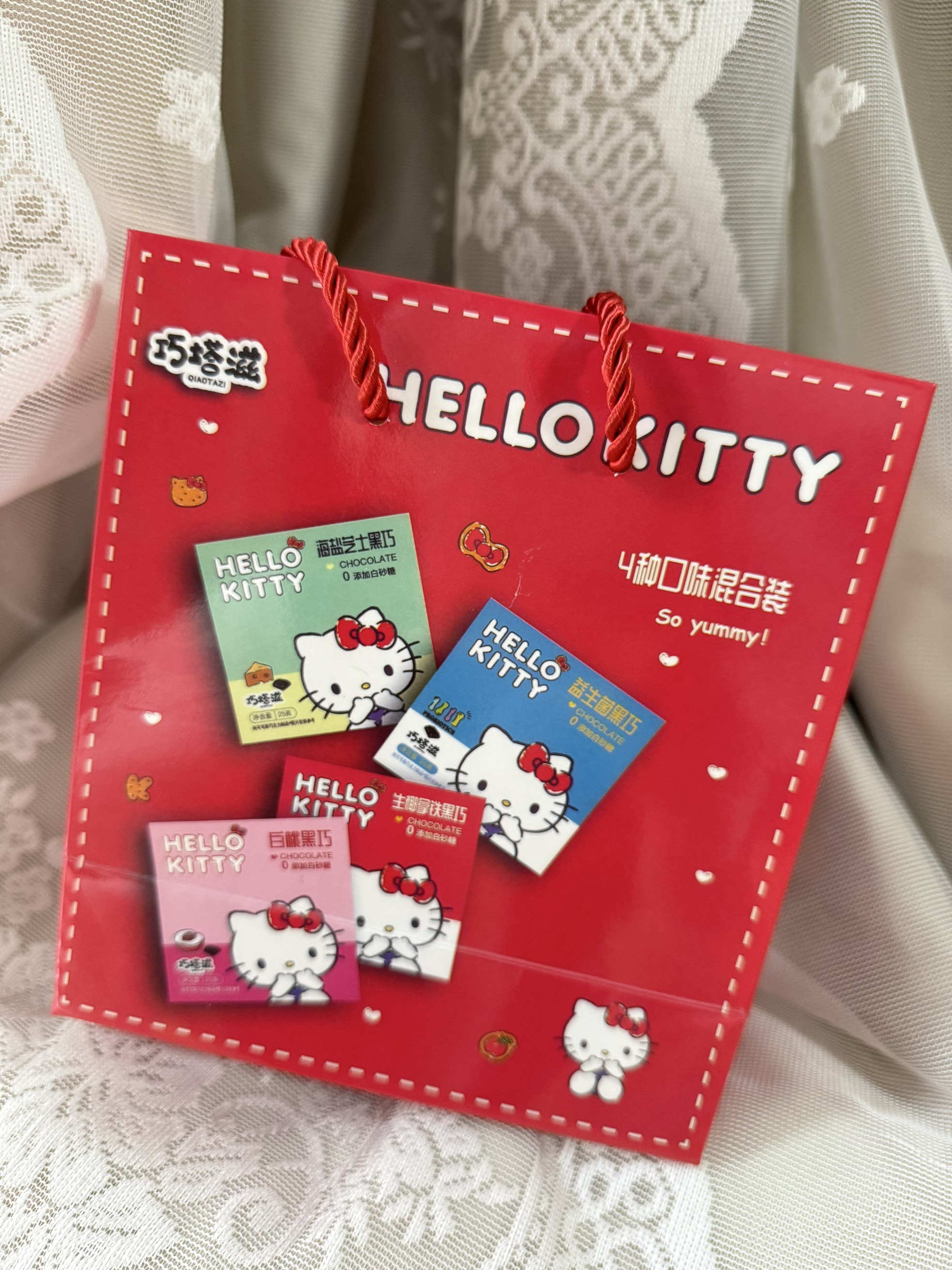 谁懂啊!这个Hello Kitty巧克力礼盒也太会了吧! • 四种口味的夹心巧克力,每一颗都印着不同的Kitty图案,颜值直接拉满 • 红色礼盒包装,自带精致感,不管是情人节、纪念日还是日常小惊喜都超合适 • 巧克力口感丝滑不甜腻,夹心层次丰富,好吃又好拍,发朋友圈绝对被问爆 • 哪个女孩子能拒绝软萌的Hello Kitty?送这个绝对不会出错,直接戳中少女心 真心建议所有男生/姐妹码住,这绝对是...