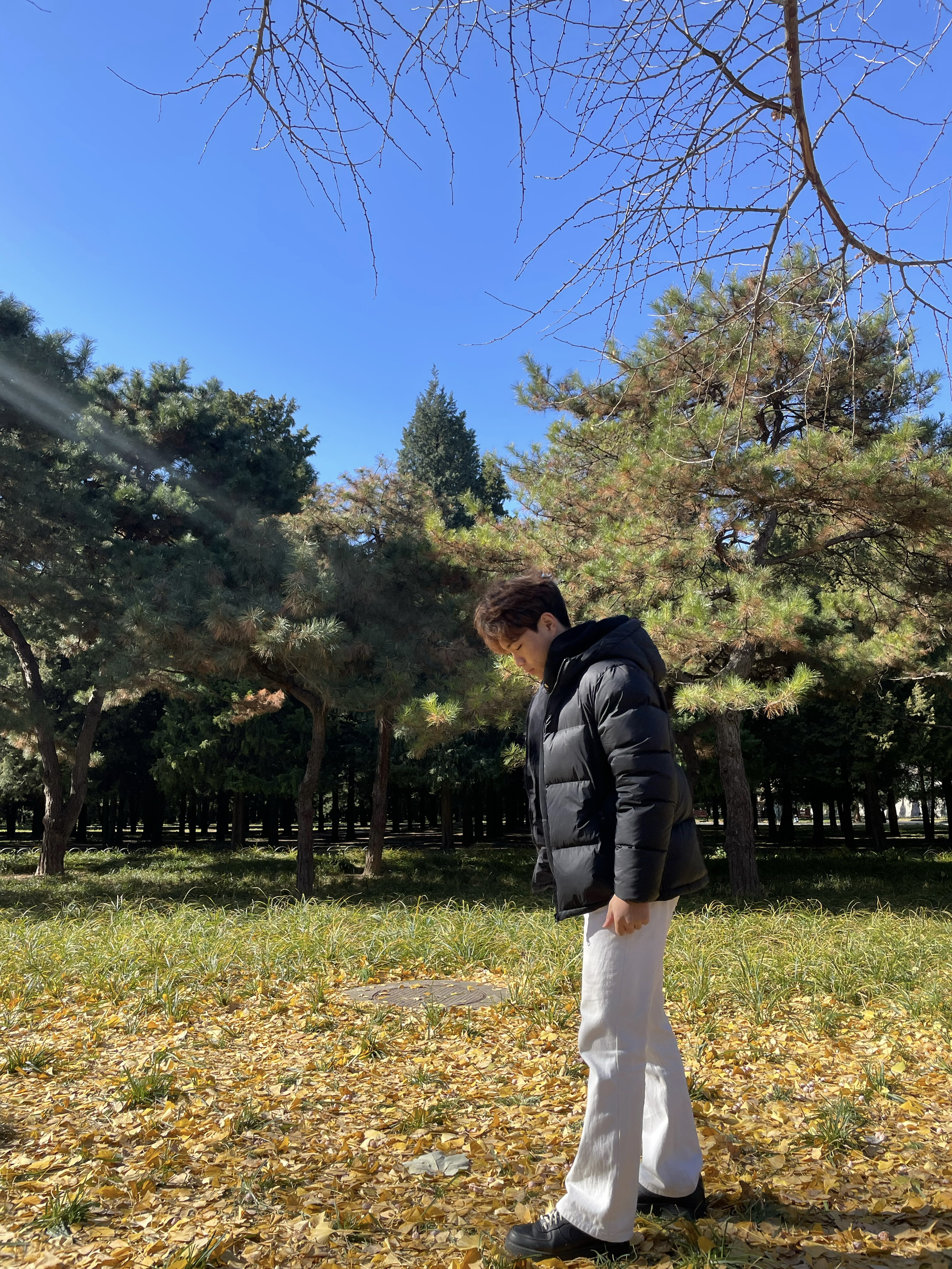 北京的初冬总是给人惊喜,不用裹得像粽子,一件软乎乎的黑色棉服就足够应对户外的温度。 内里搭一件米白色针织衫,既增加了层次感,又中和了黑色的沉闷。下身是一条做旧感牛仔裤,脚上踩着一双耐脏的工装靴,走在铺满落叶的林间小道上,每一步都踩着阳光的温度。 不用刻意凹造型,阳光穿过树林在身上落下斑驳的光影,就是最好的滤镜。随手抓拍的几张照片,都自带温暖的氛围感。这种不用费力的松弛感,大概就是冬天出门散步...