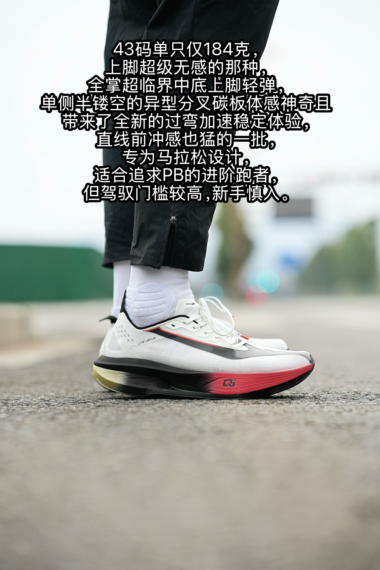 ✍️今天我给大家简单点快速定位解析这三双鞋,喜欢的可以直接对号入座! 1️⃣绝尘5: 我觉得是尔克当下无板竞训万金油,相比极风的定位缓震更厚更适合大体重一些,43码单只238克,中足抗扭片,,后跟内外侧也做了稳定支撑,加宽的鞋楦设计很适合宽脚选手日常短途通勤以及竞训备战,没有什么驾驭门槛,轻松间歇跑都适合,配速5分半以内跑者的全能搭子!! 2️⃣飞乙2: 是全掌碳板竞速鞋!43码单只仅184克,上...
