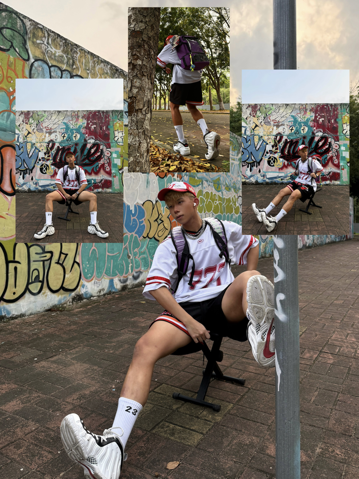 今天的阳光和AJ3藤原浩的黑白撞色简直天作之合 在公园的草地和砖墙旁拍了一组 手持球鞋 靠墙抬腿 坐石凳凹造型 把街头感姿势带到大自然 别有一番风味🆒 hidefxxx机能冲锋衣 浅卡其拼接设计 和AJ3的黑白层次形成呼应 户外拍照太合适 搭配纯白网眼运动短裤+纯白长袜 机能和街头感巧妙融合💯 拍照姿势上也可以张力十足❗ ▪️手持球鞋 一只脚穿鞋一只脚露袜 突出球鞋和穿搭细节 ▪️靠...