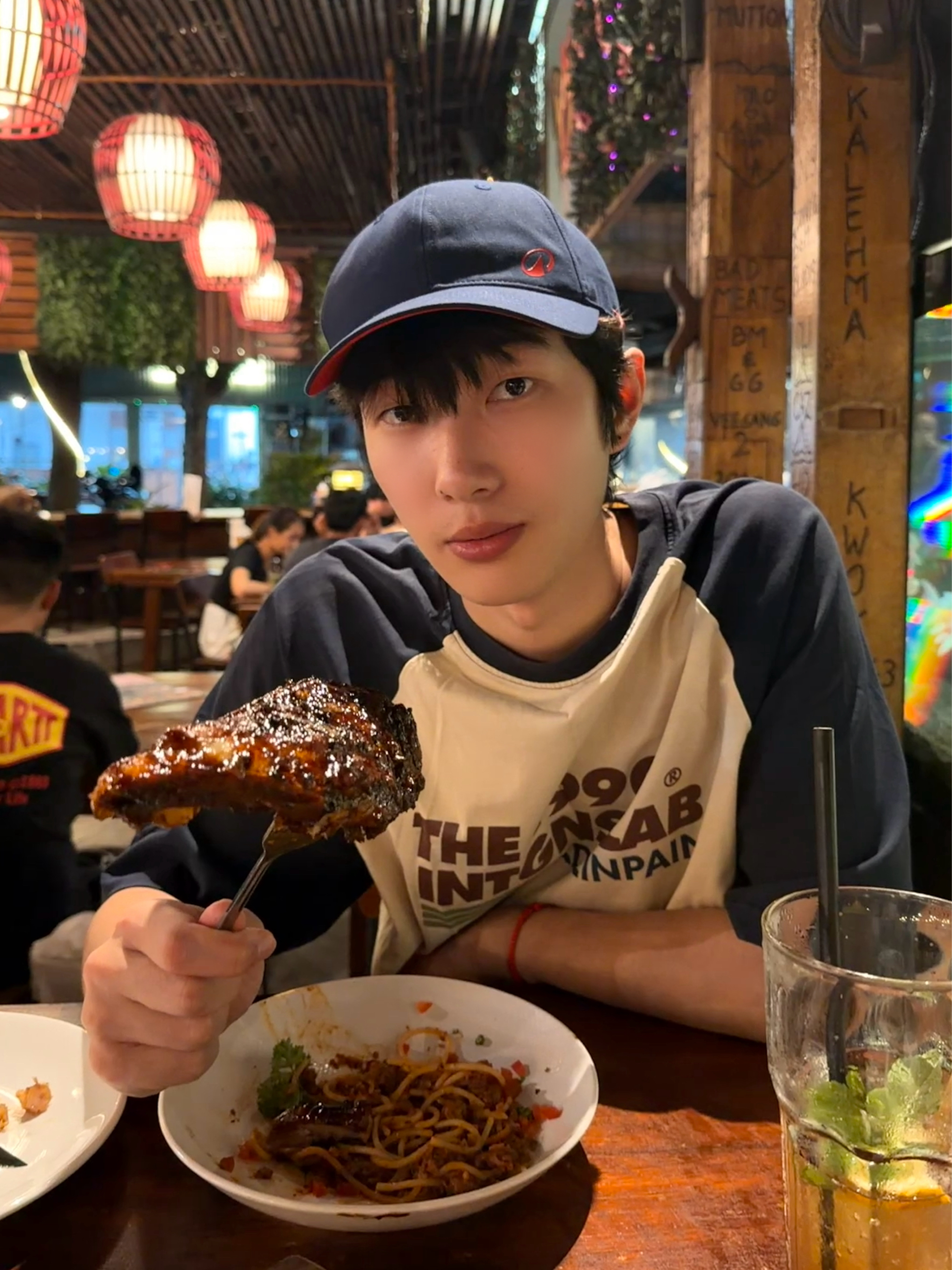 这件我愿称为巴厘岛行李箱里的MVP: 版型宽松:吃饱也不显肚子 插肩设计:肩线更利落,上镜更精神 复古配色:随便搭都像认真穿过 配短裤是度假,配牛仔裤就是街头,怎么穿都不出错。