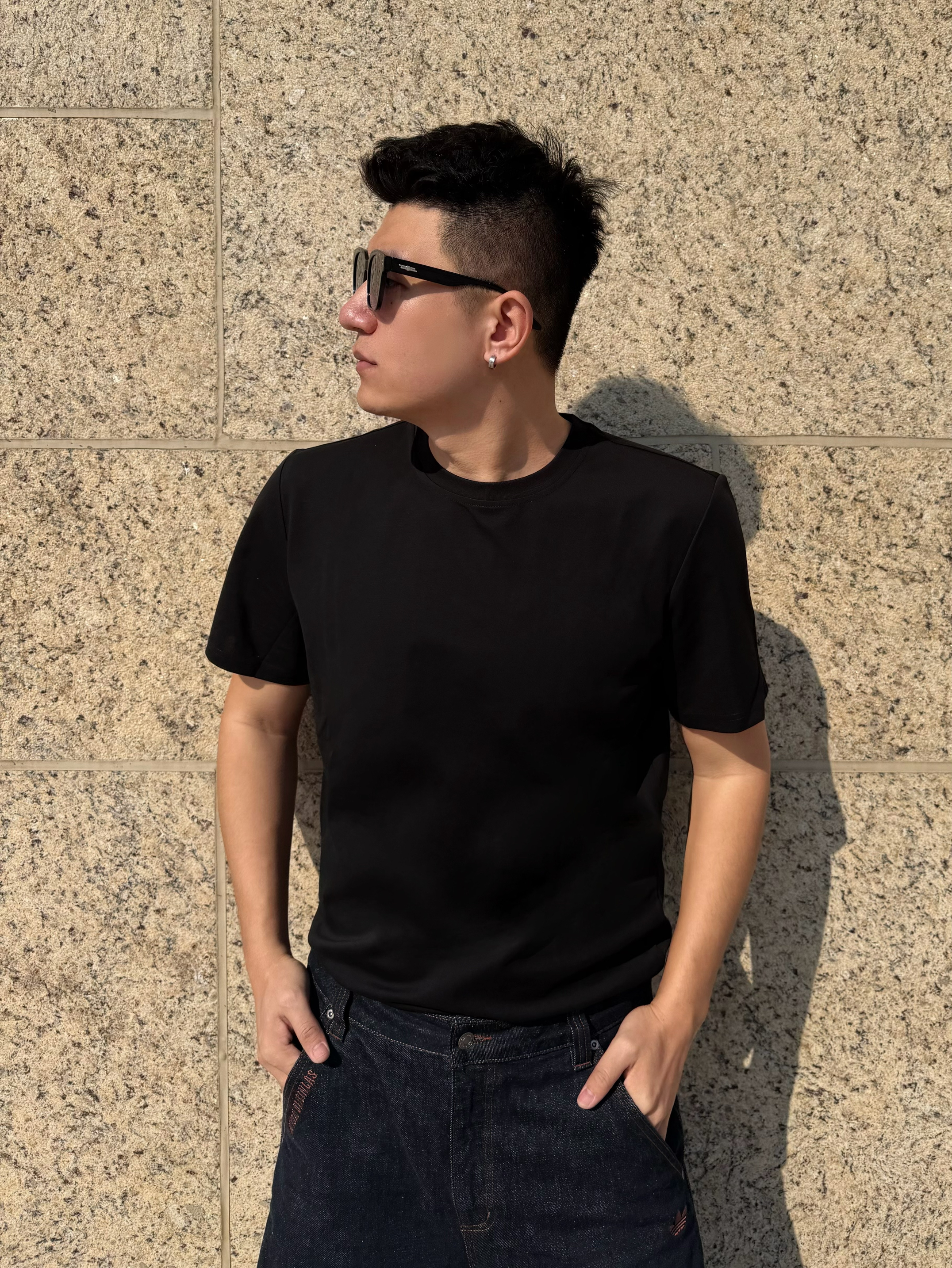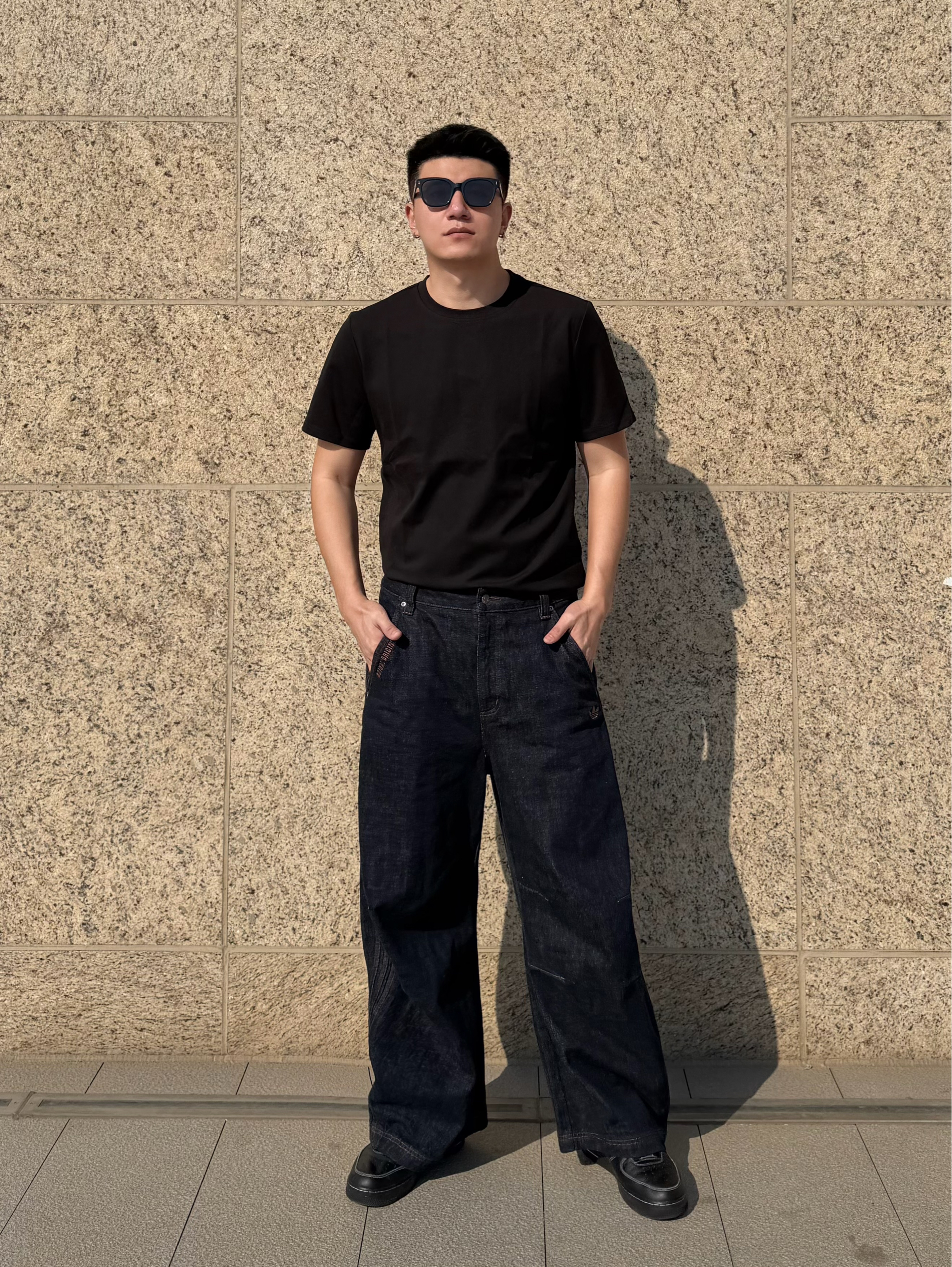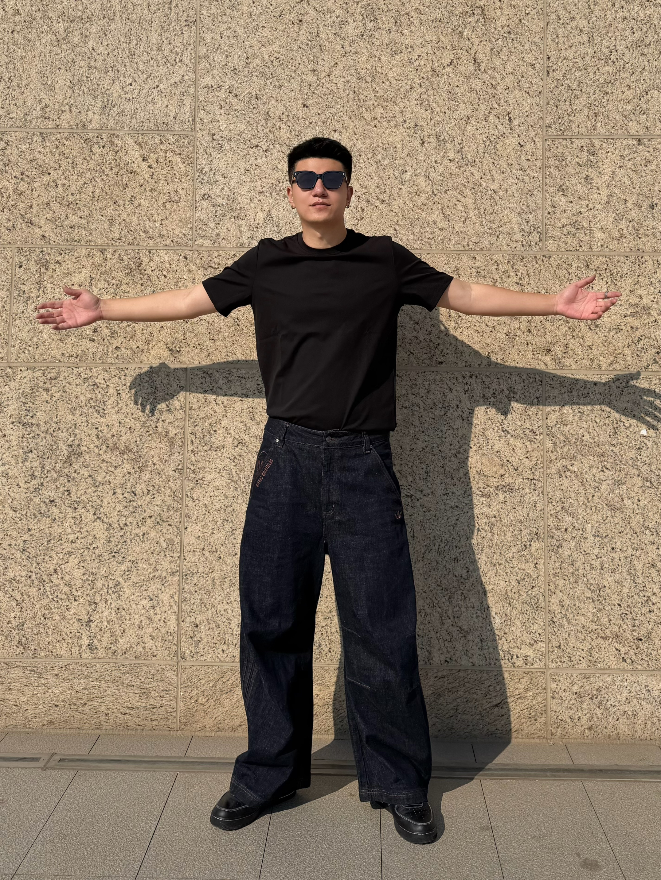 春天穿衣🤔黑白T恤必须要有 我最近挖到的黑色棉短袖 黑色上身显瘦 正肩版型很精神✨ 单穿配牛仔裤就是阳光大男孩 当内搭叠牛仔外套也很好看 丝光棉上身很舒服 滑滑的质感 早春打底刚刚好👌 百搭可以穿三个季节 👦🏻:188 | 85 👕:XXL