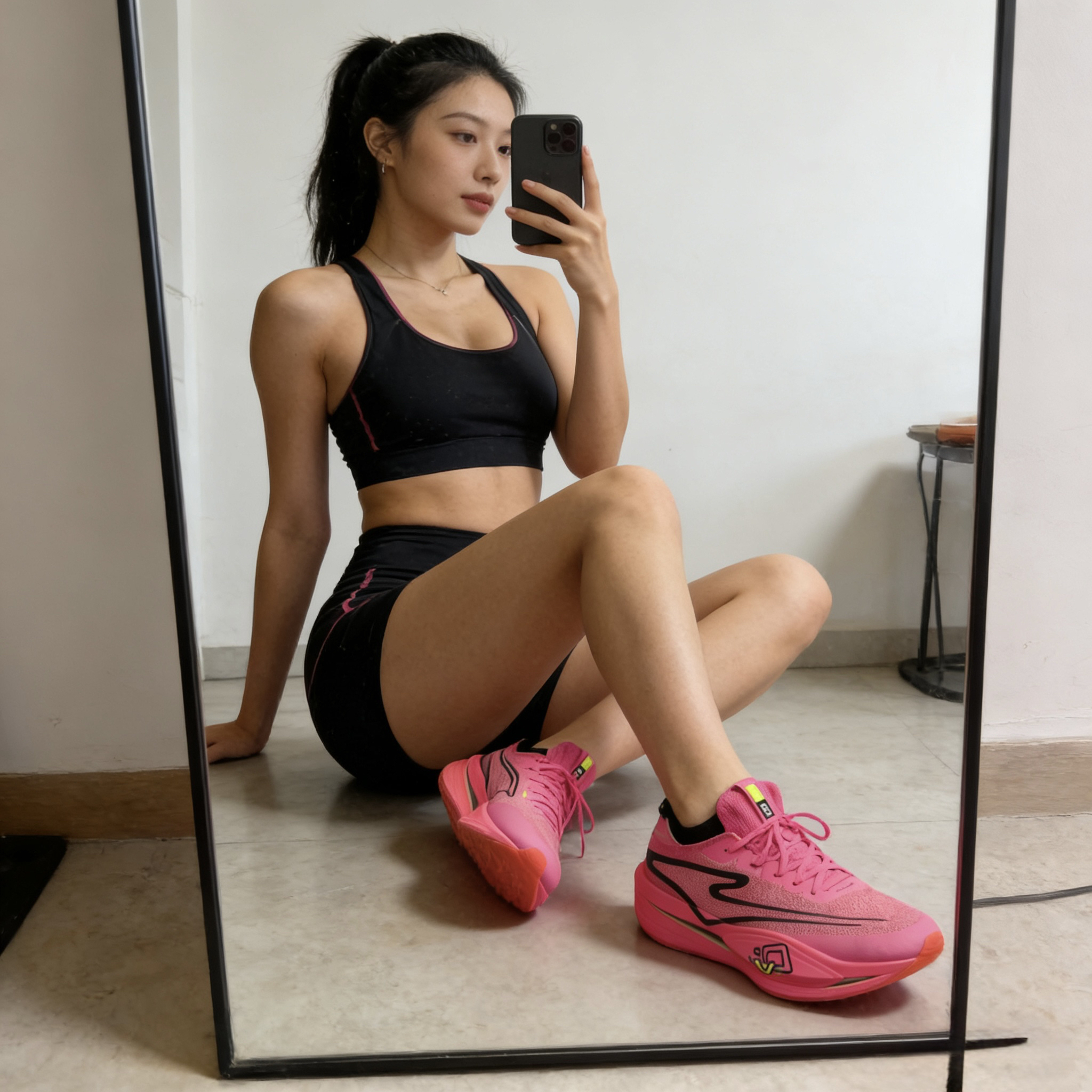 谁懂啊家人们!当初刷到这双鞋的时候,我内心OS:这粉也太死亡了吧…结果上脚之后,直接被狠狠打脸! 👟 颜值:大胆配色,回头率拉满 • 这双荧光粉真的太炸了!不是那种廉价的塑料感,而是带着一点高级的电光调,在阳光下特别亮眼。 • 鞋身的黑色线条和后跟的小logo,完美中和了大面积粉色的甜腻,多了几分运动酷感。 • 网面材质很细腻,编织纹理清晰,完全不像几百块的“网红鞋”。 💨 脚感:轻到起飞,...
