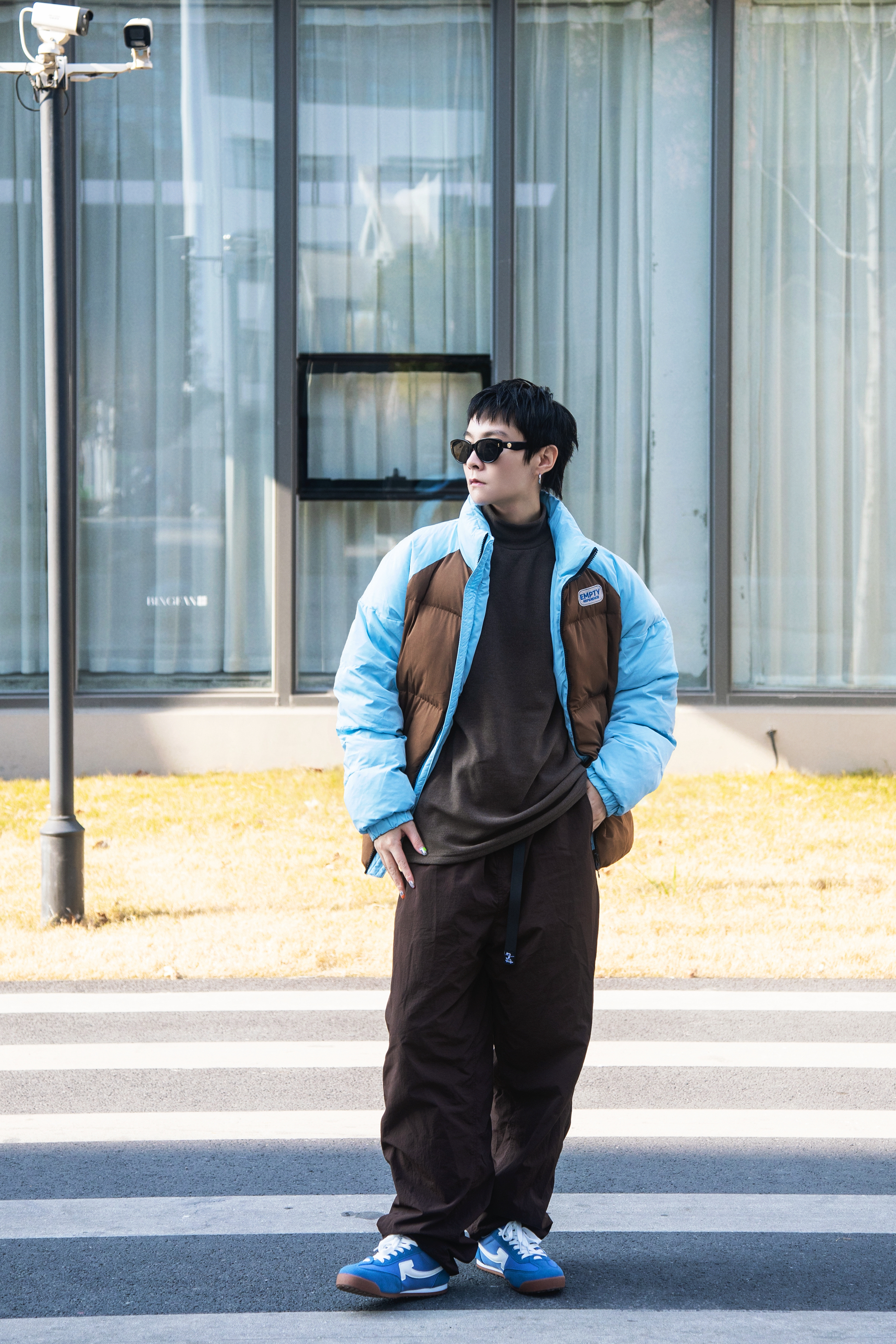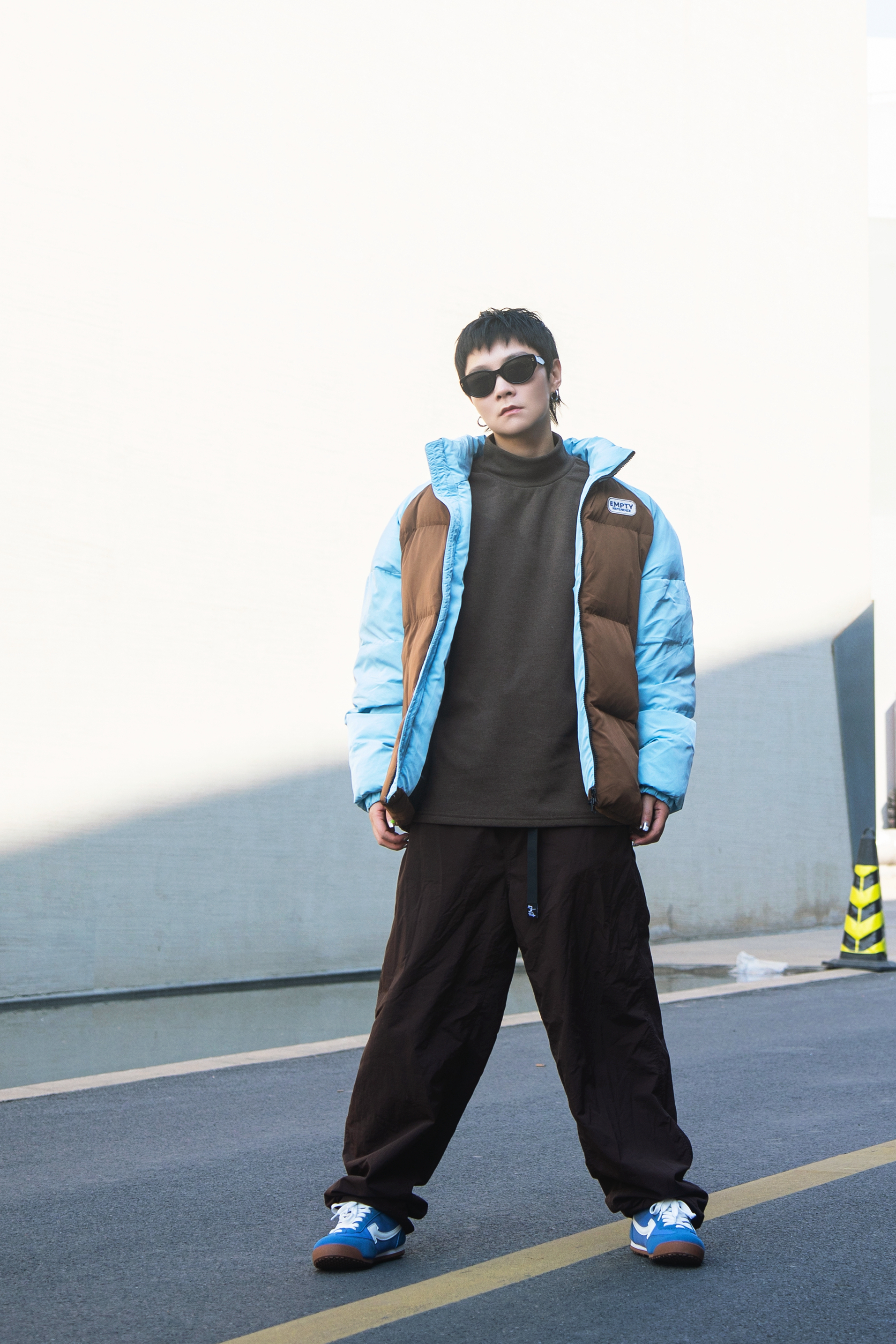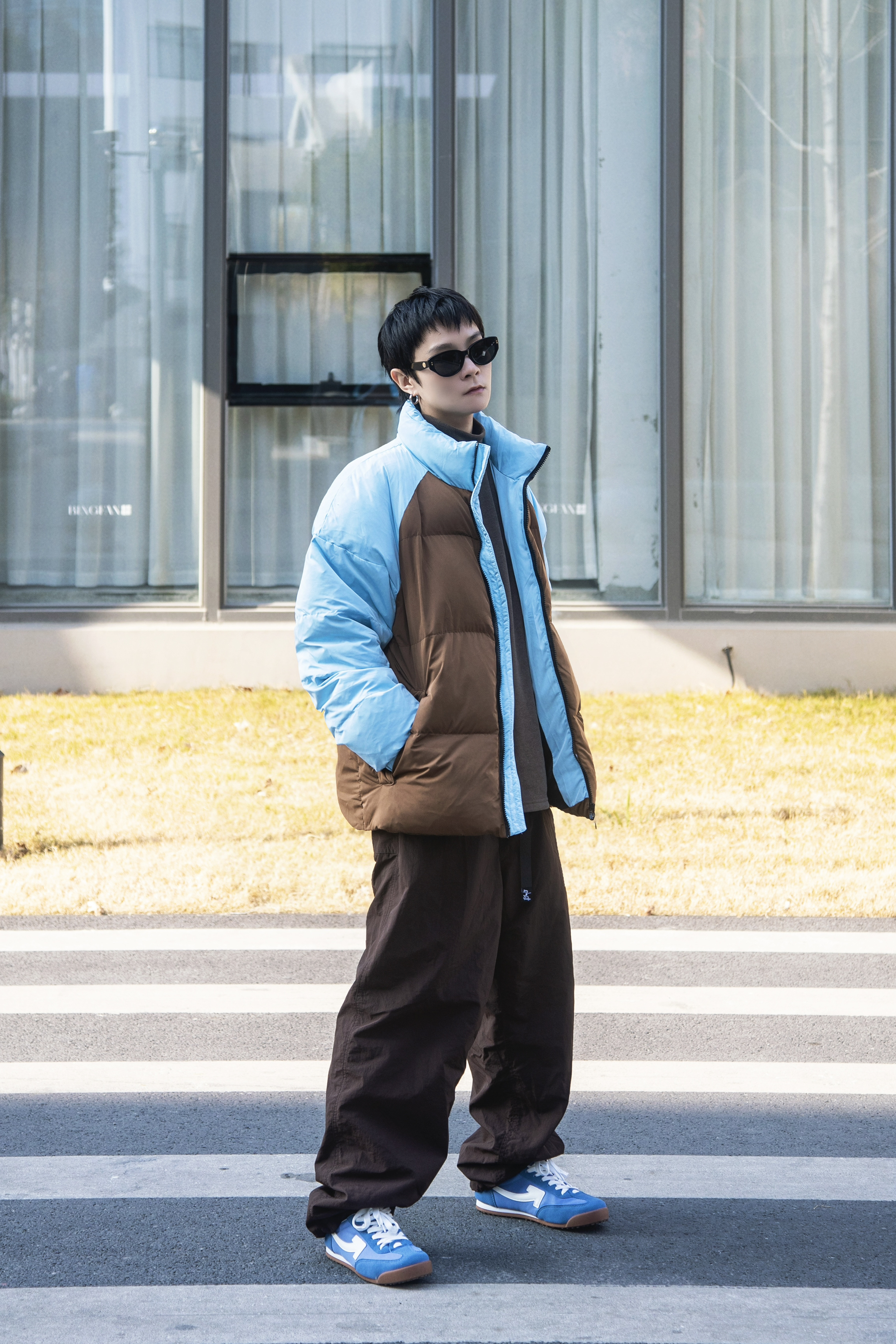 彩色让人冬日好心情 分享一套冬日羽绒服撞色穿搭 穿搭指南: 上身一件棕色德绒打底 半高领设计保暖又高级 套一件蓝棕拼接羽绒外套 撞色让人活力满满 搭一条棕色运动裤 运动有活力 上脚tcellars休闲鞋 蓝色和上衣刚好呼应 薄底德训鞋型超时髦的 冬天又潮又酷 这样穿就对了