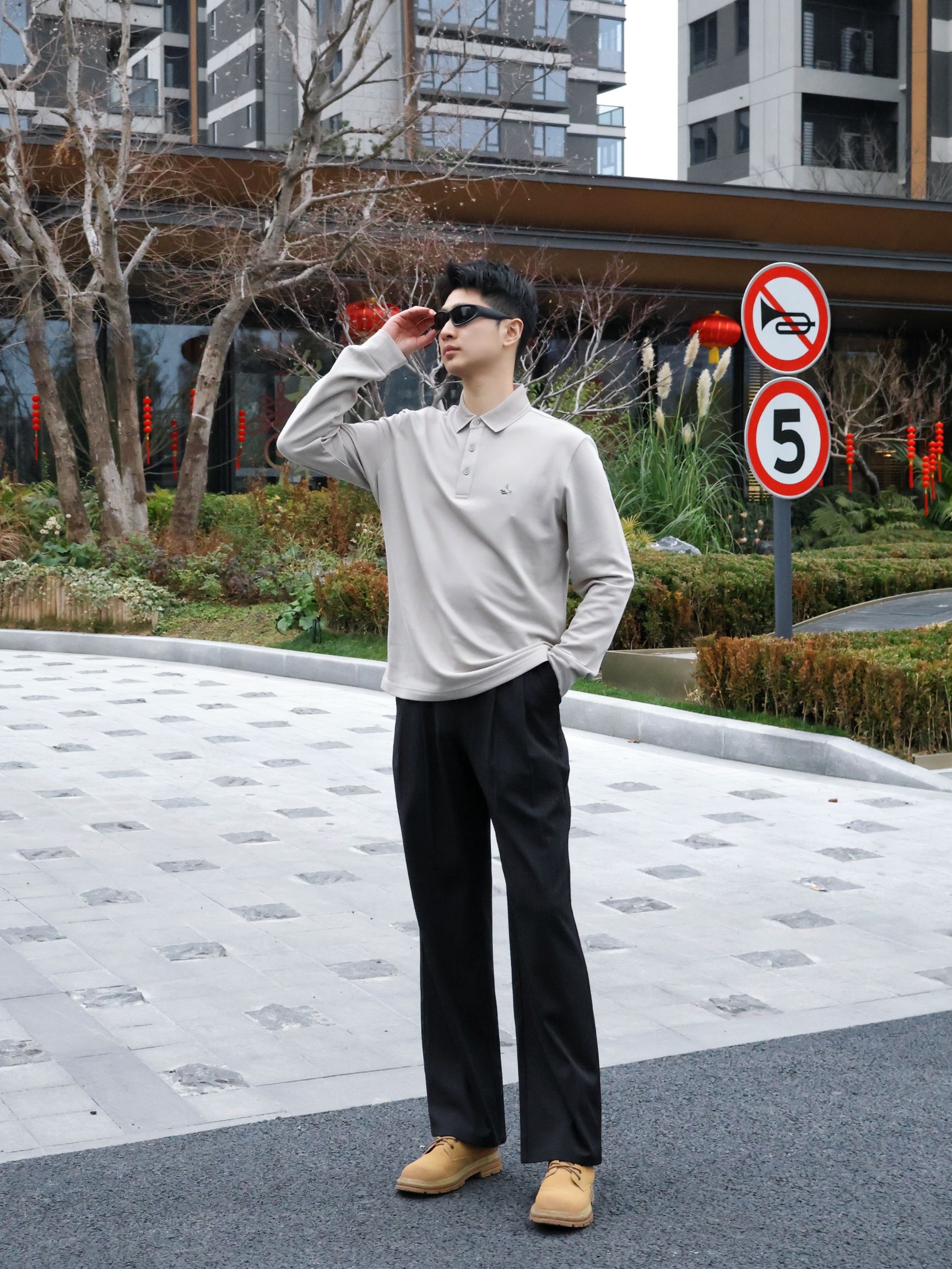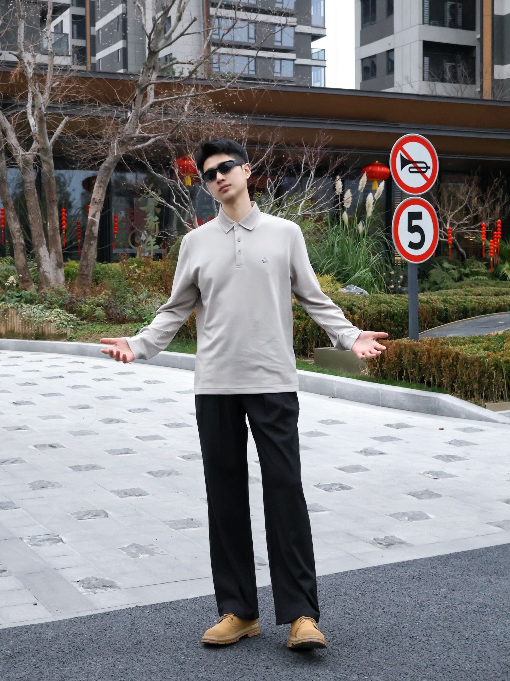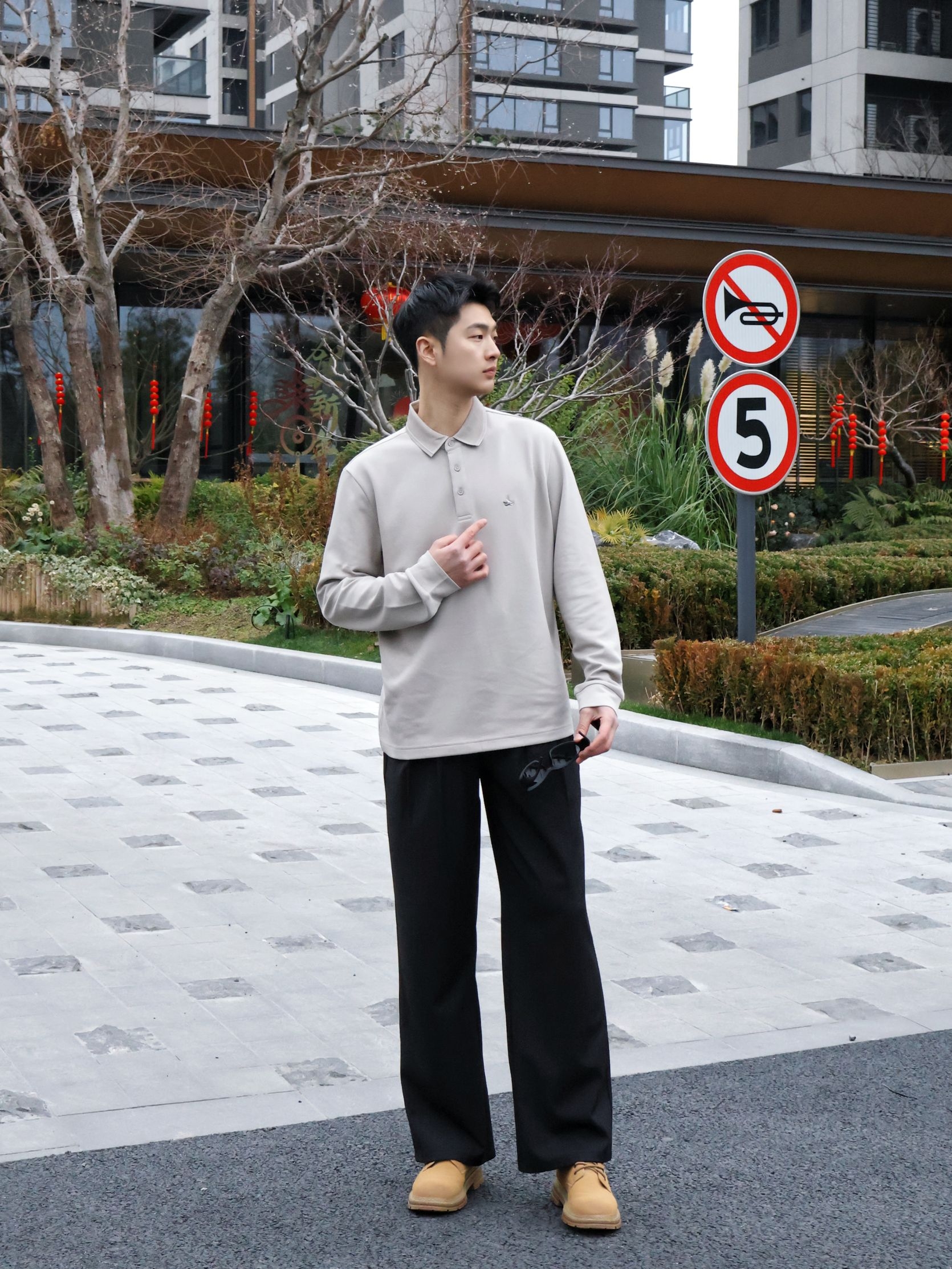 春日衣橱C位,这件长袖Polo衫简约百搭~长袖polo衫让我春日职场轻松通勤~ ONAVIGARE 意大利小帆船长袖polo衫~ 衣服抗菌防螨的材质干净卫生~ 整体版型也是修身很帅气~ 纯色干净利索~很百搭~ 细节做工也是很到位~ 职场轻商务~单穿打底都可以~ 小倪:181cm 70kg 上身xl合身~ 搭配直筒西裤~干练帅气~ 帅气的休闲马丁靴~ 这一身早春超绝啦~