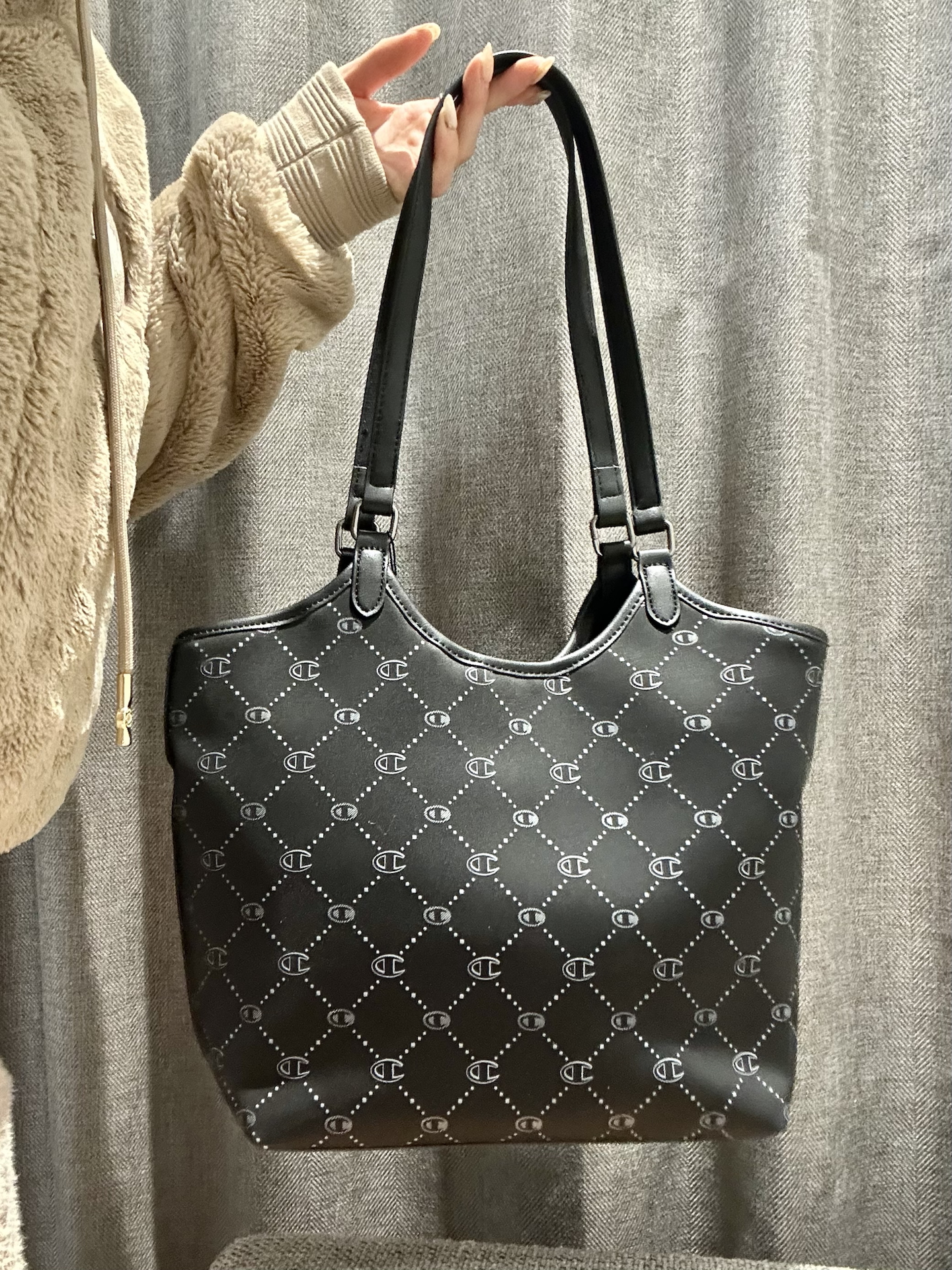 “谁懂!我又找到好看的包包噜🥳 介个Champion托特包,黑色老花好耐看~容量也大,日常通勤背很实用👍 情人节送crush感觉浪漫又贴心捏~就是没有夹层,找小东西得翻一翻~” 图源网络,侵删