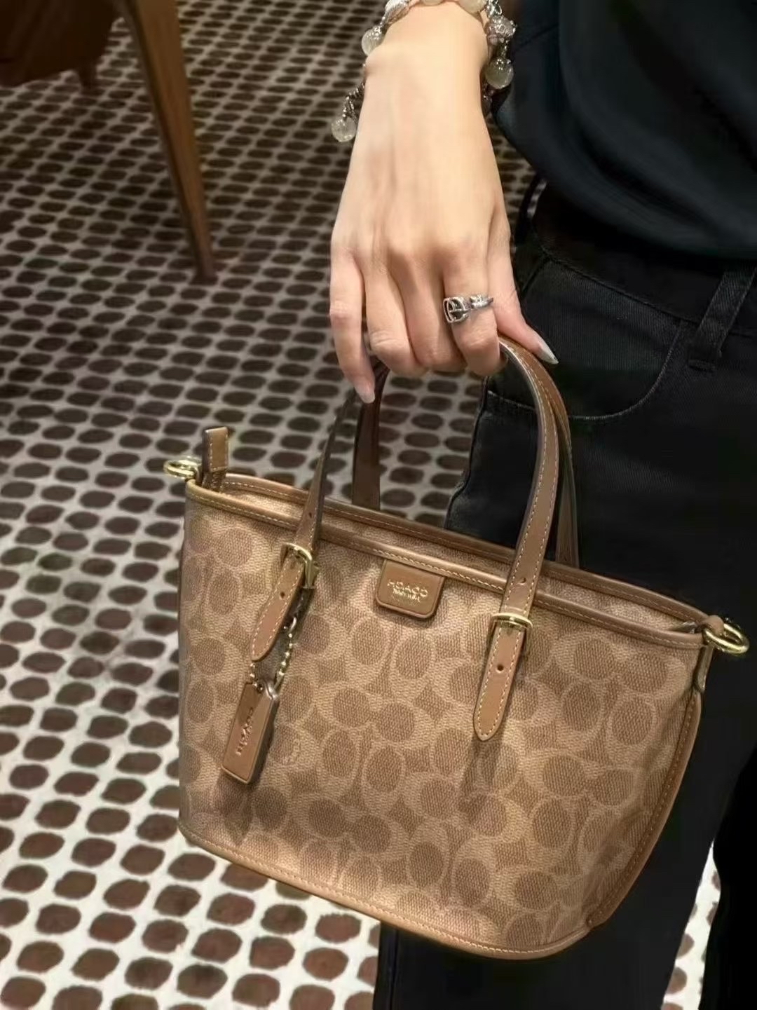 我发现这小托特好适合打工人日常背呀🥳 经典印花很有辨识度,日常通勤、出游背都很搭~不过它没有夹层,东西多的时候找起来得翻一翻😅 但作为第一件轻奢包,质感和风格我还挺满意滴~