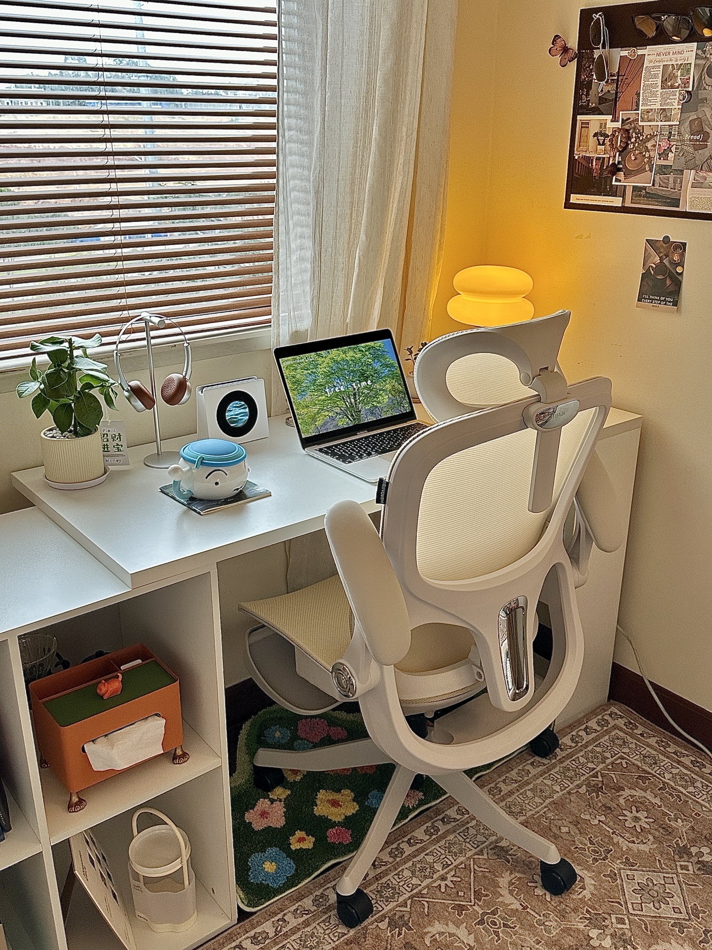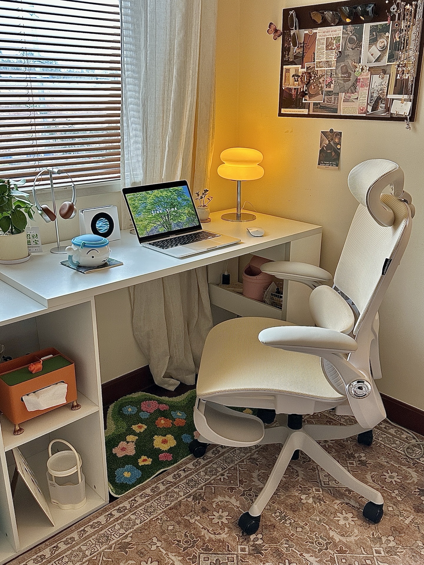 前几天我入手了把新电脑椅,布置书桌时发现它和我的小空间好搭呀!网布面料透气,坐久了也不闷~扶手和靠背能调节,联动设计很贴心,靠上去腰被托着超舒服✨ 不过它是入门款,要是追求特别高端的质感可能差点意思,但日常办公、学习用完全够啦,现在我工作时心情都变美咯🥰
