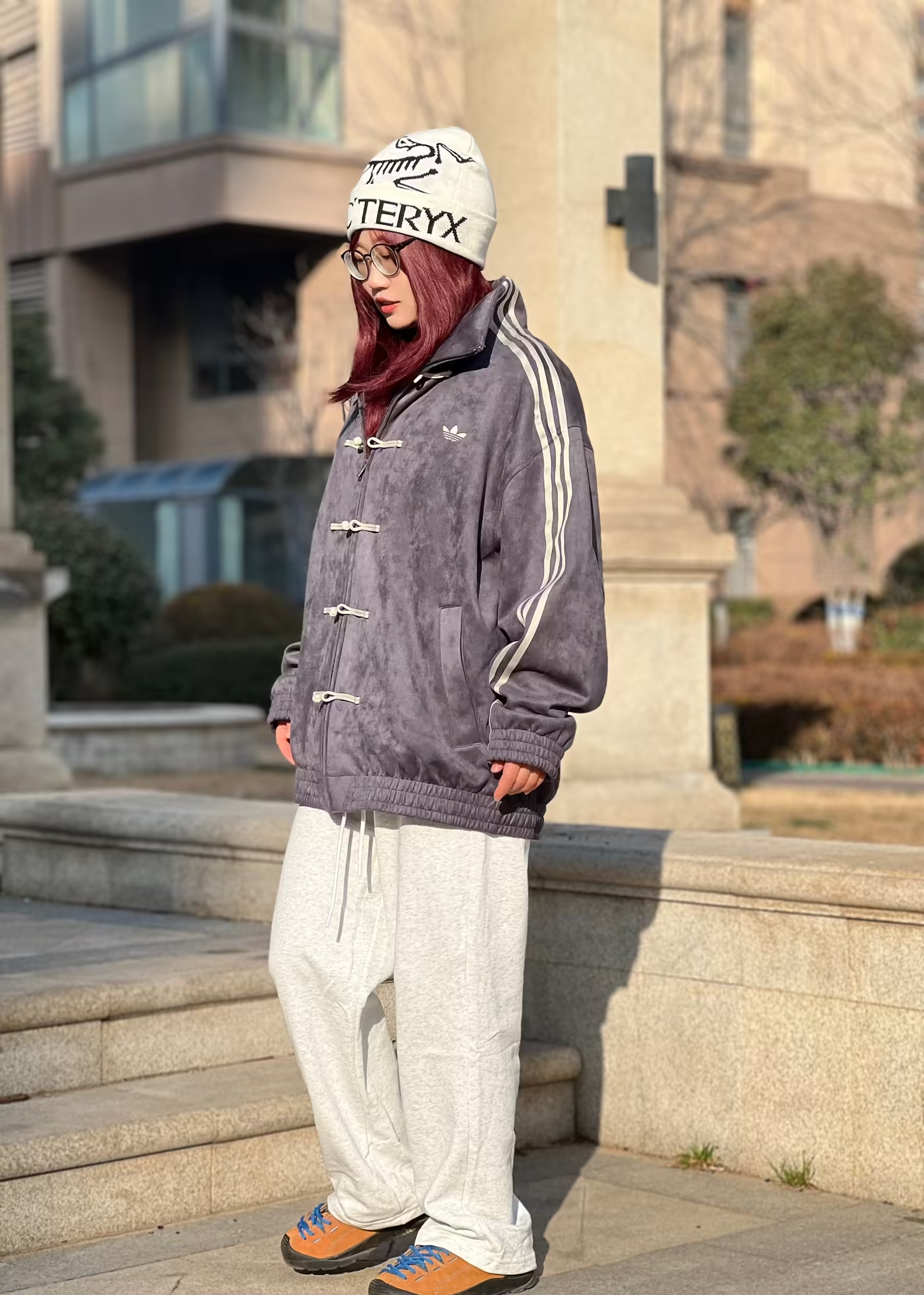 P8H9美式复古弯刀裤的面料肌理感真的很绝!加绒加厚的材质软糯亲肤,垂感宽松的阔腿版型对各种身材都很友好,重工logo毛巾刺细节满满,搭配卫衣或夹克就是美式复古风,早八通勤、校园穿搭都很合适,保暖又时髦~