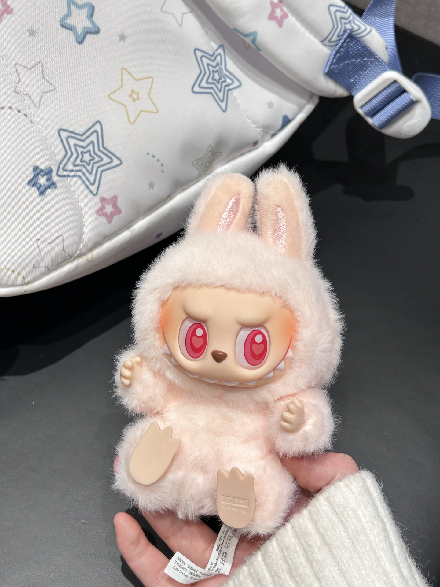 是我的这个星星背包跟包挂啊 白底搭配蓝粉黄星星图案蛮清爽的 搭配我的Labubu挂件 感觉好可爱 平时背出门感觉太吸睛了 #我的C位包挂 #分享我的宝藏毛绒挂件 #分享我的宝藏玩偶小挂件 #分享我的宝藏玩偶 #包包挂件好物分享