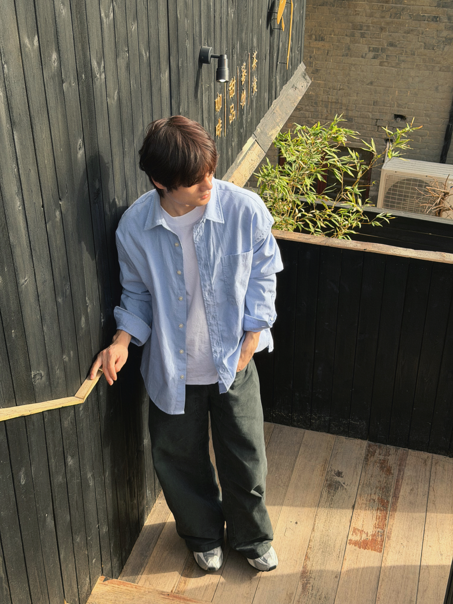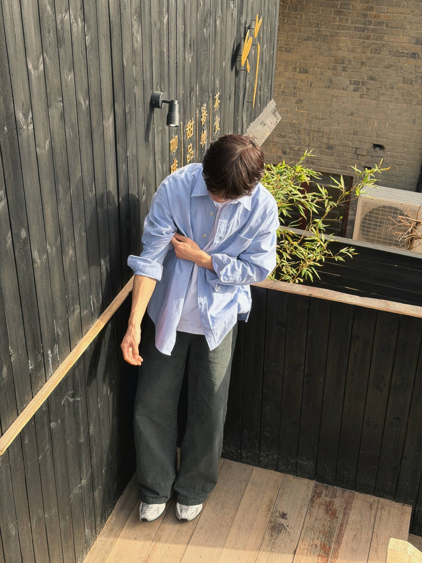 春天的第一件衬衫,是天空的颜色。 宽松版型自带慵懒感, 随便搭个白T就很出片。 一下就把干净和少年感焊身上啦~ 趁着阳光正好,出门走走吧。✌️ #预习一下早春穿搭 #早春显白穿搭 #男生初春OOTD #阳光帅气的宝藏男孩 #春天少年感穿搭