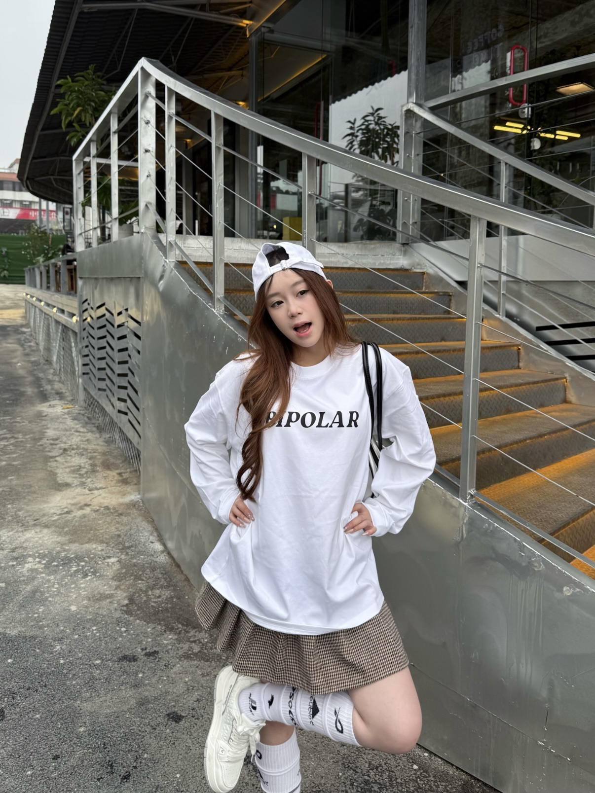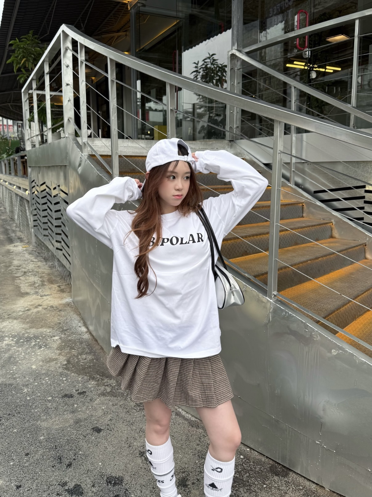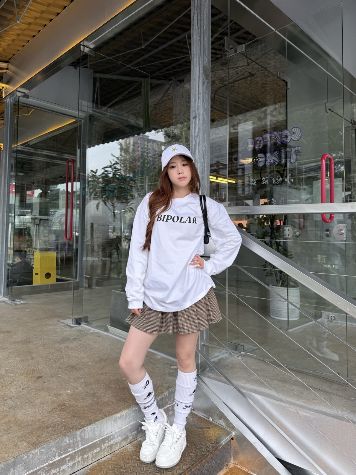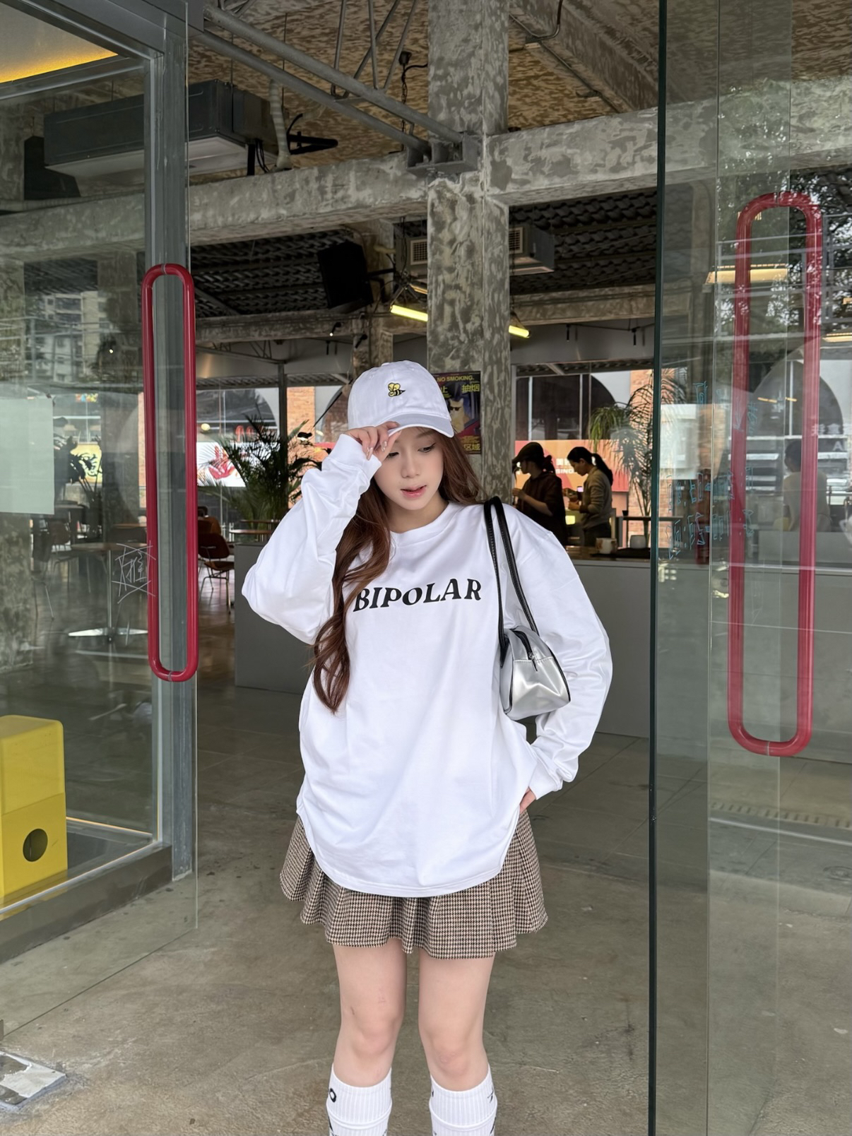 这件BIPOLAR的logo长袖很干净 第一眼就是美式复古街头那种松弛感 白色底子很清爽,辨识度刚刚好🤍 纯棉面料贴肤舒服,日常穿不闷 我这次就简单搭配了短裙和长袜 天冷的时候叠穿也不会显臃肿~ 我160/45kg穿s码哦