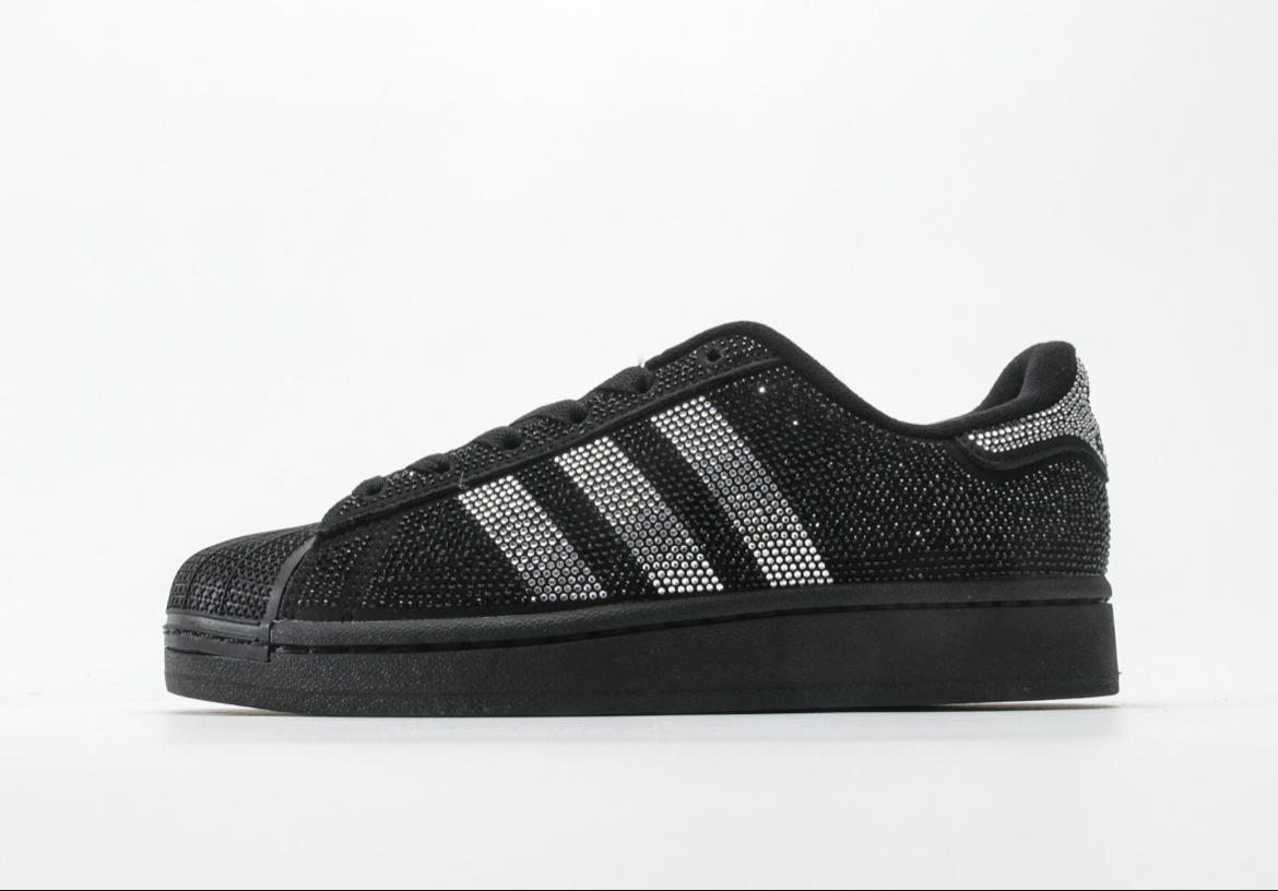 这双 adidas 贝壳头真的太会了!全鞋身覆盖满钻,三条杠变身钻石条,在光下blingbling闪到犯规✨。经典贝壳头+厚底设计,复古感和腿精buff双拉满,配校服、牛仔裤、辣妹裙都能直接封神。 对爱穿搭的学生党来说,它就是行走的吸睛密码👀!上课路上回头率100%,食堂打饭都有人偷瞄,朋友圈发图绝对是评论区炸锅的程度🔥。 有人说它太闪hold不住,有人说它是年度穿搭C位,你怎么看?这双“钻闪...