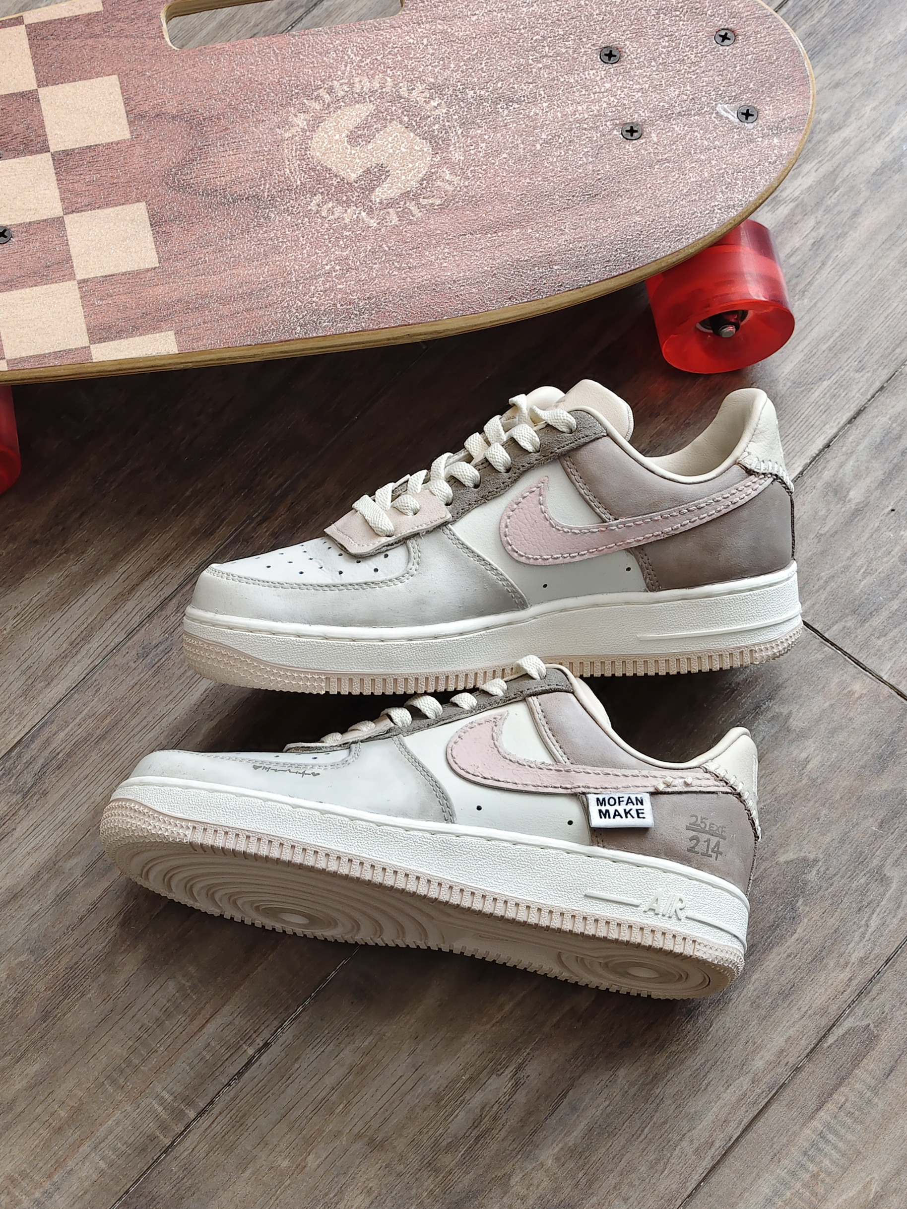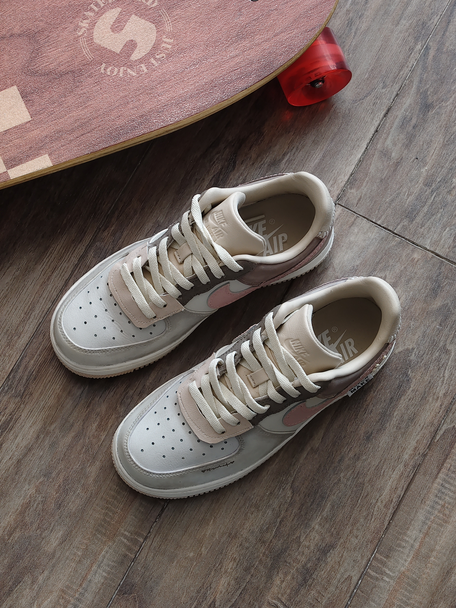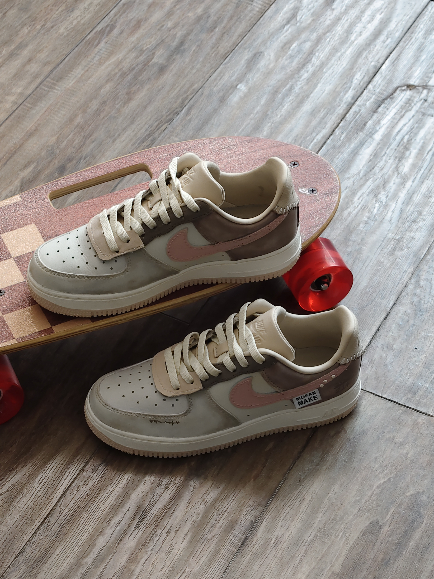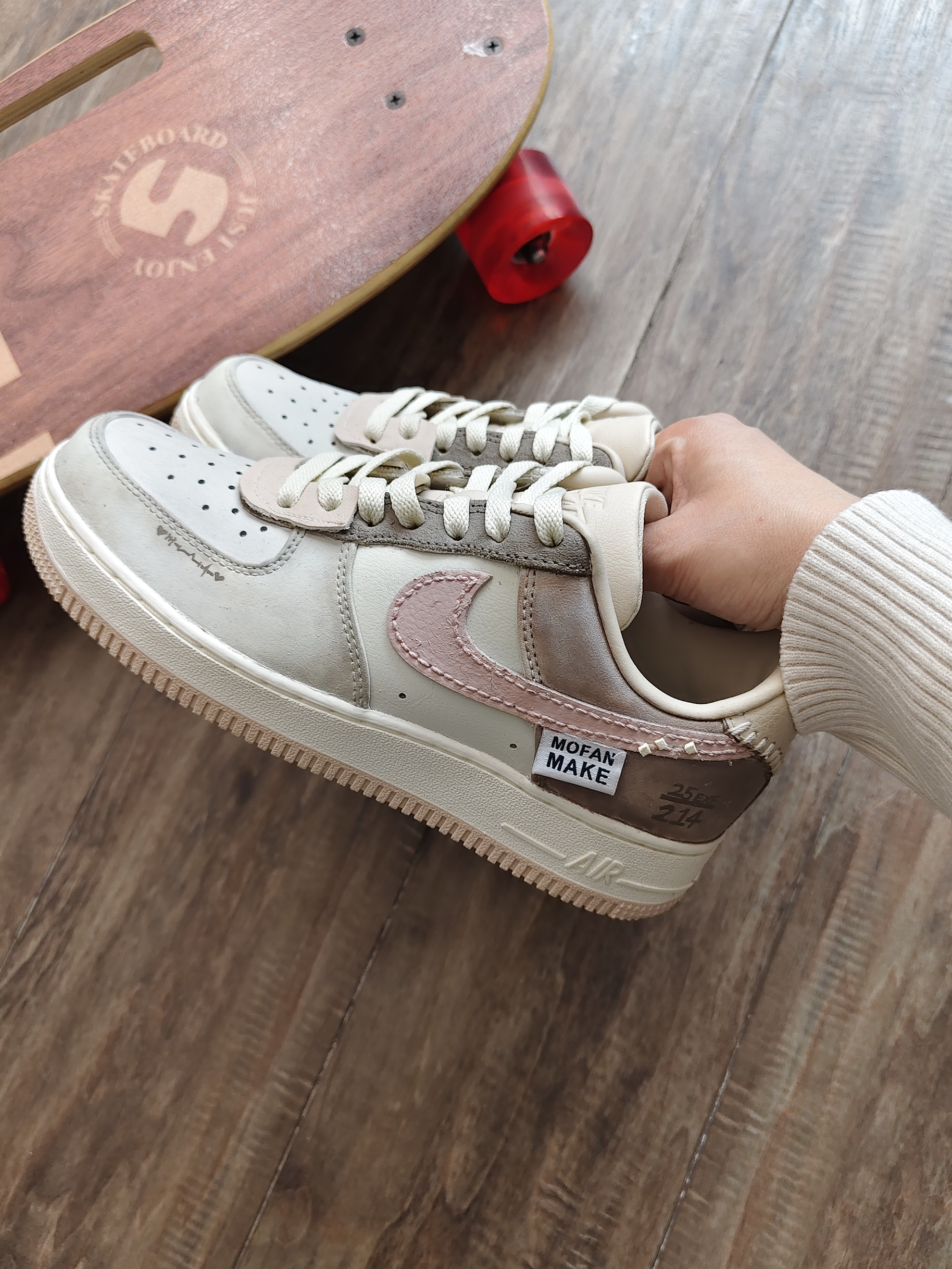 这双定制款空军一号真的长在我的审美点上!温柔的奶茶拼粉配色,像把春日奶油直接涂在了鞋面上,质感绝了。鞋型经典不挑人,上脚超显腿细,搭配牛仔裤、小裙子都超合适。皮质柔软不磨脚,走路轻盈又舒服,日常出街回头率超高,绝对是今年最爱的宝藏单品