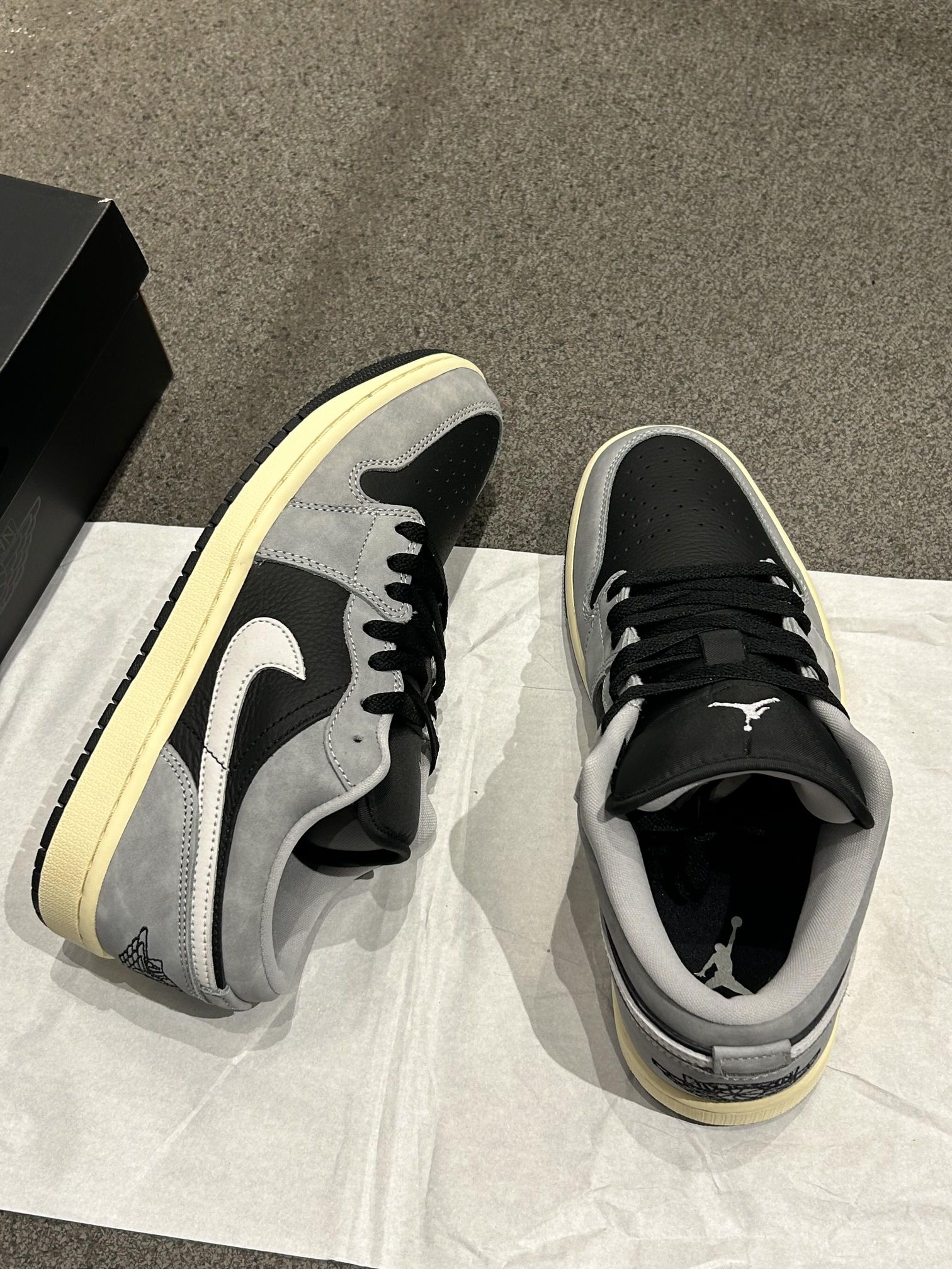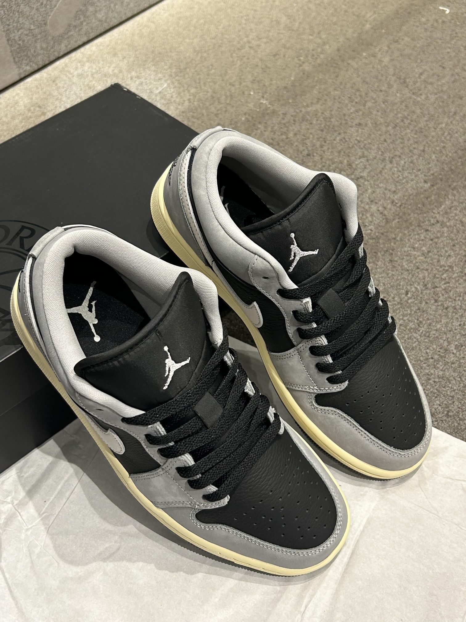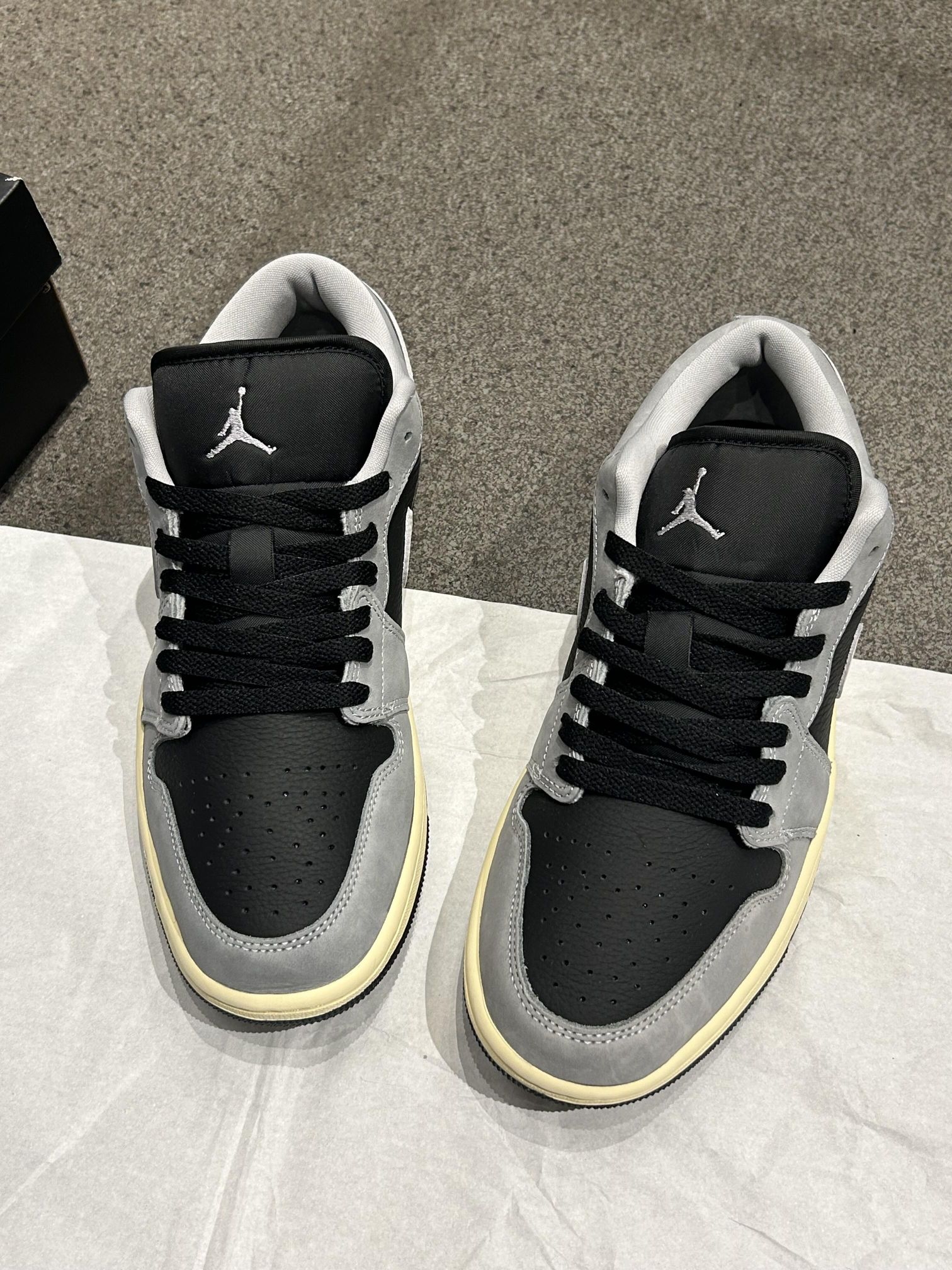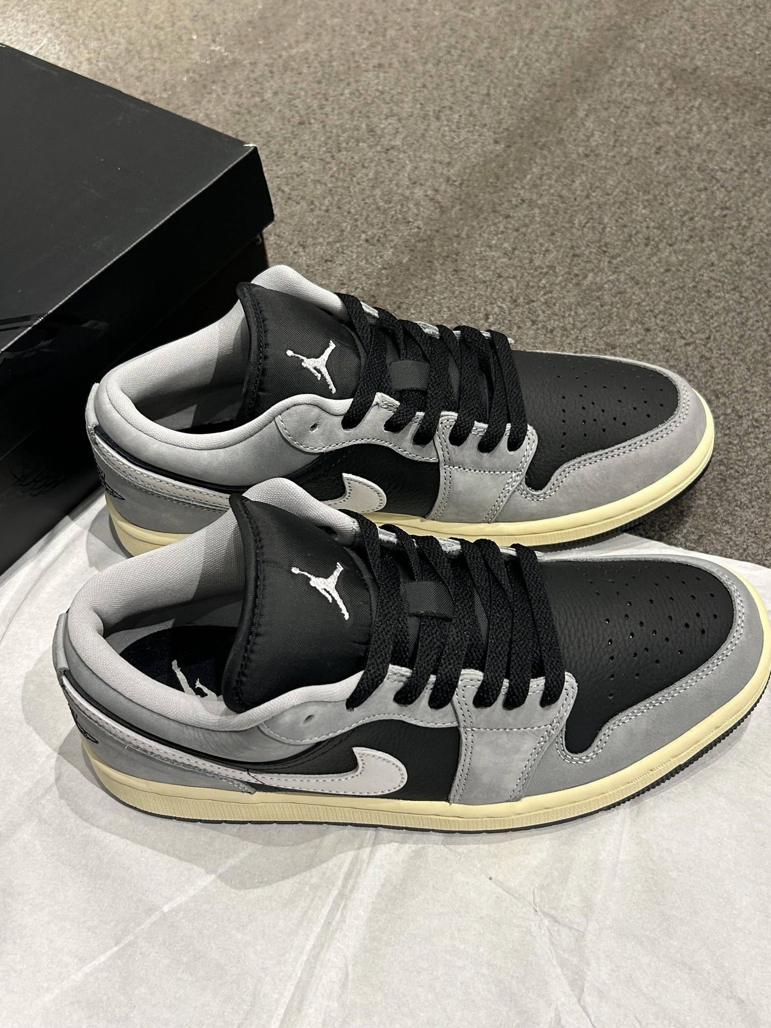 Nike|灰白配色、真的绝了!!! 🩶🖤黑灰简约➕高级感~ 灰黑色简约又高级 搭配微黄鞋底 复古风满满 柔软皮革鞋面通勤也不累脚