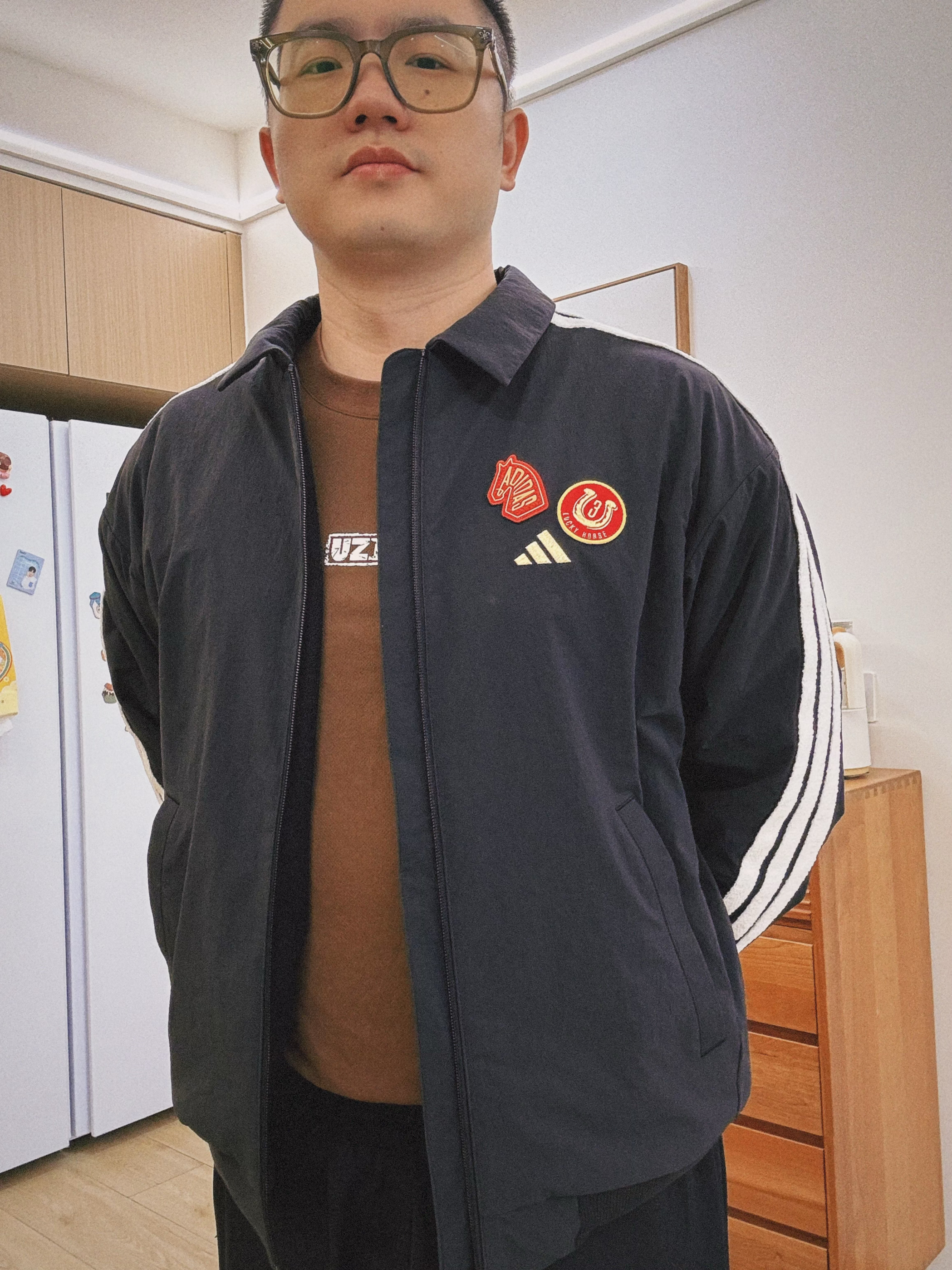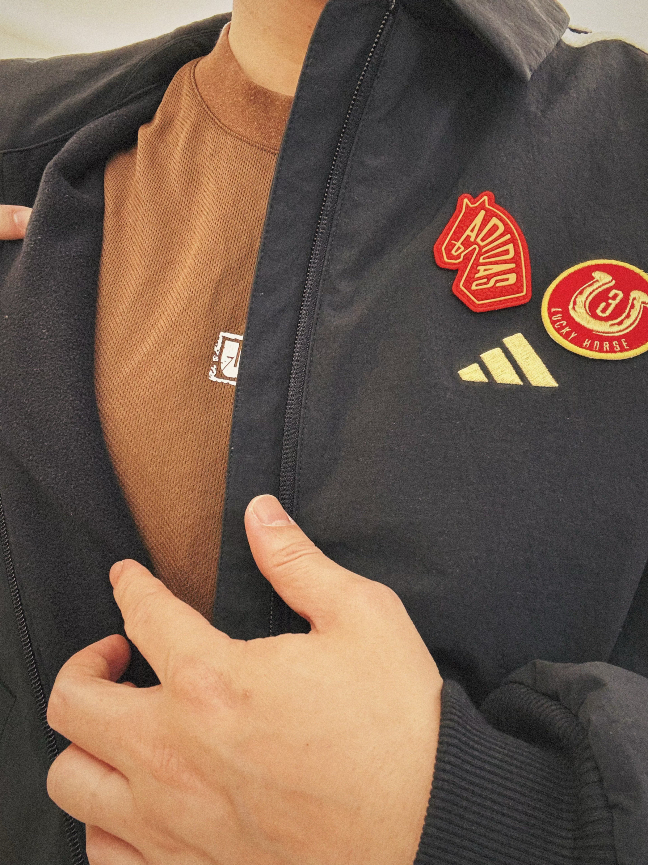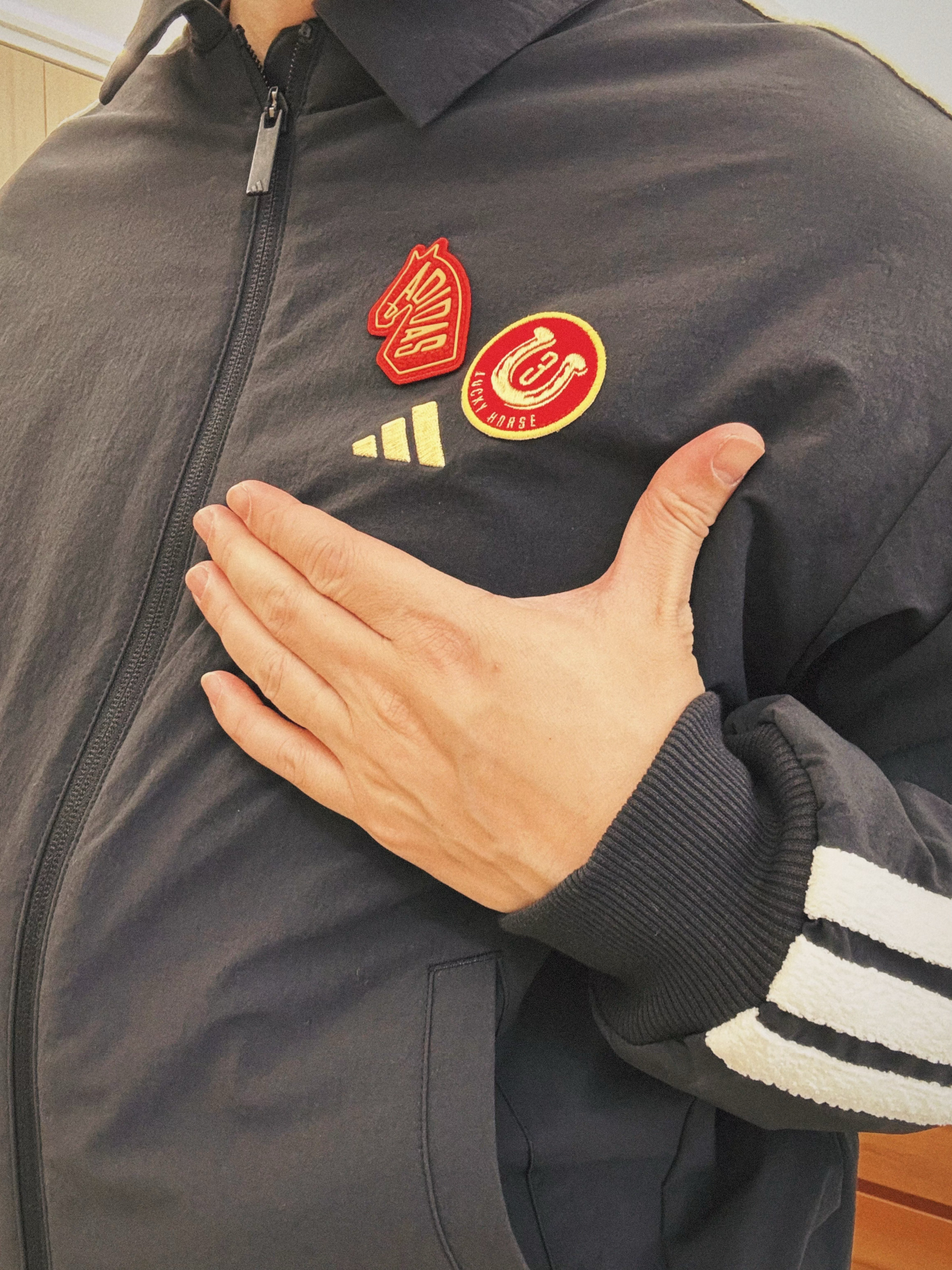 #开学一周OOTD #阿迪达斯马年限定 #马年限定外套阿迪达斯 #阿迪达斯马年系列 #阿迪达斯adidas adidas 学生党久违的阿迪马年限定拒水加绒外套 开学穿上身满满的精气神➕干练气场 修身版型,翻领设计,宽松落肩,穿着舒适不臃肿 左胸有金色“Lucky”马年刺绣和三道杠 后背有阿迪大Logo和一个小巧的马蹄铁挂饰 袖子上白色毛绒三道杠充满高级质感 不论是学生党还是在校大学生...