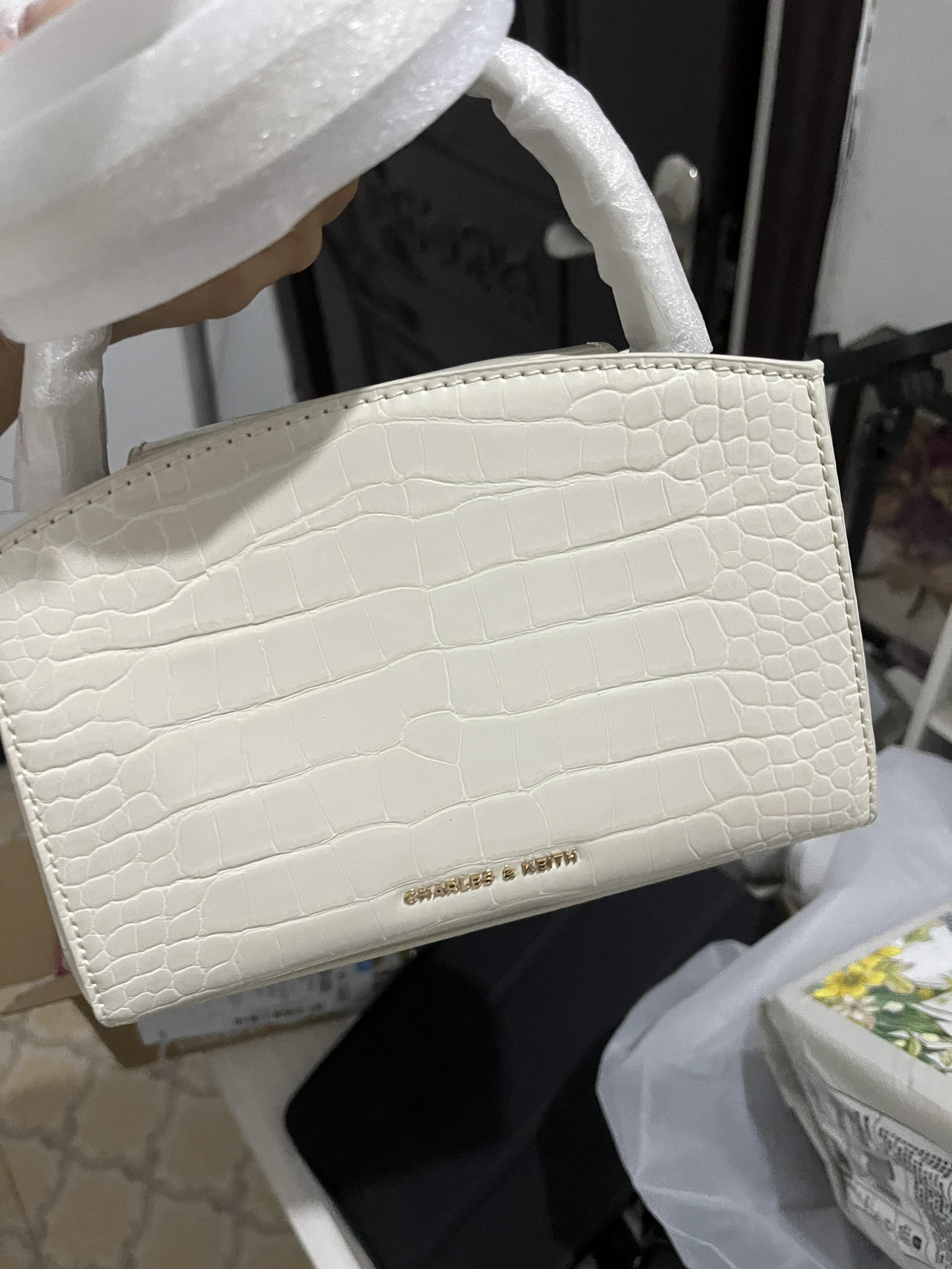 本篇笔记关联了CHARLES&KEITH 小号 新年礼物鳄鱼纹金属扣带饰百搭年会新娘晚宴合成革单肩手提包 奶白色等商品,为用户提供真实的使用体验和购买参考。