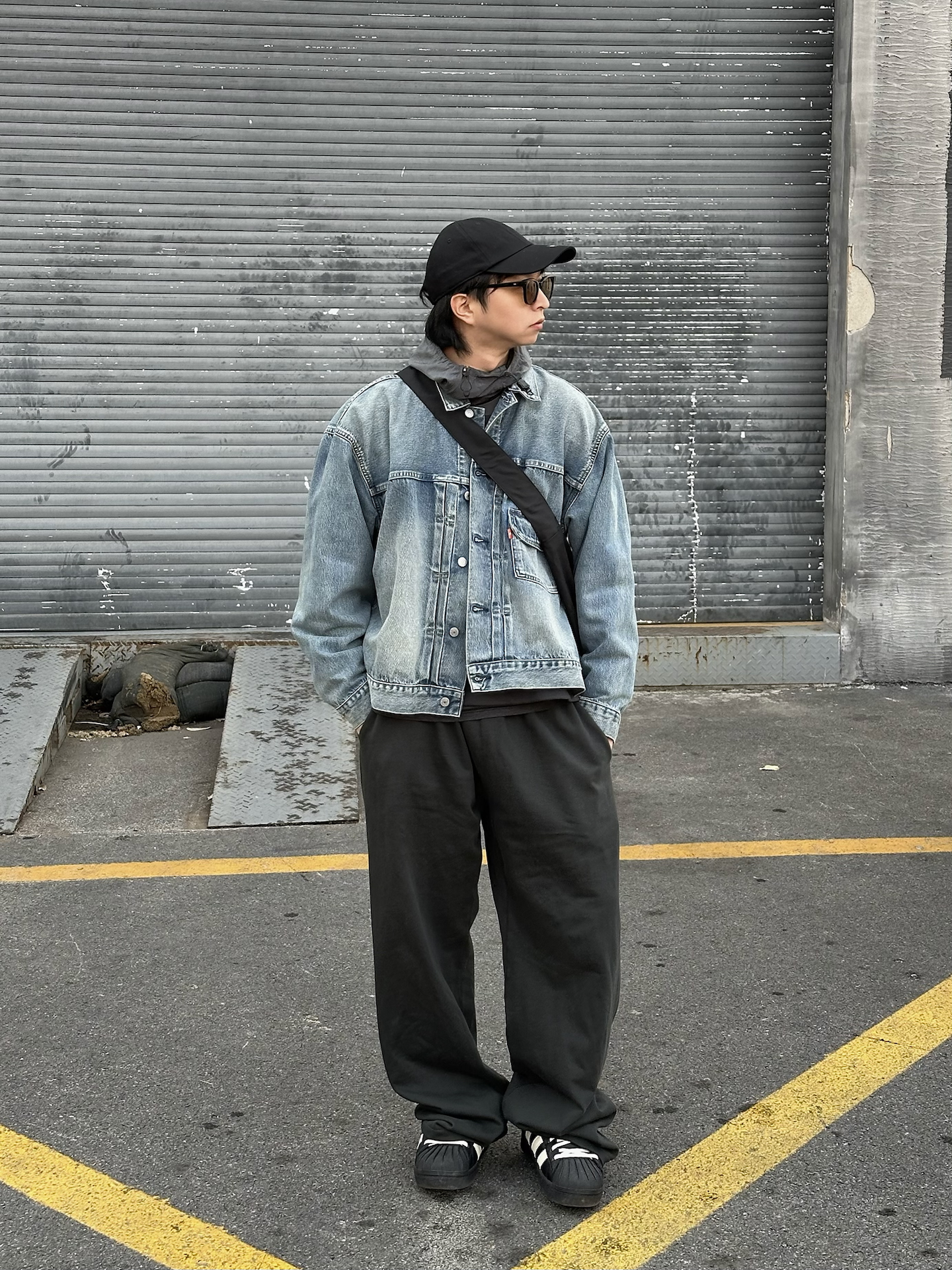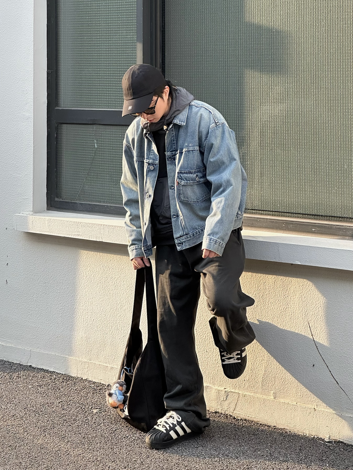 哈喽👋🏻大家好哇 这里是🪨石地夫的穿搭小日记📝 - 今天出门是春日复古运动混搭outfit 上衣levis x beams浅蓝色做旧牛仔夹克 自带美式复古调性☕️ 内搭连帽卫衣丰富了上半身的层次感 下身yeezy的阔腿运动裤 垂坠感十足,更显松弛🍃 搭配贝壳头面包鞋👟,简约却不单调💡 这一套无论是日常出街还是城市漫游🚶 都能轻松驾驭☑️ #预习一下早春穿搭 #5G速通春日穿搭 #南方vs北方...
