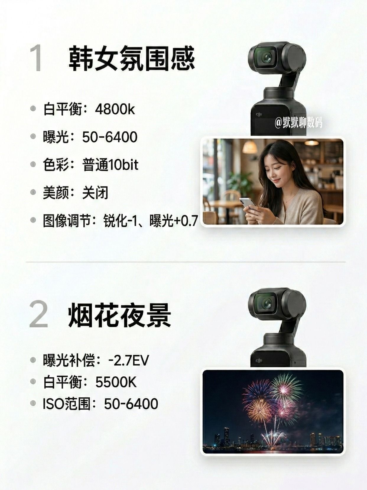 【零基础变大师|Pocket3直出参数大公开📷】,由用户 默默聊数码 分享,来自上海。这是一篇来自识货社区的真实用户分享笔记。