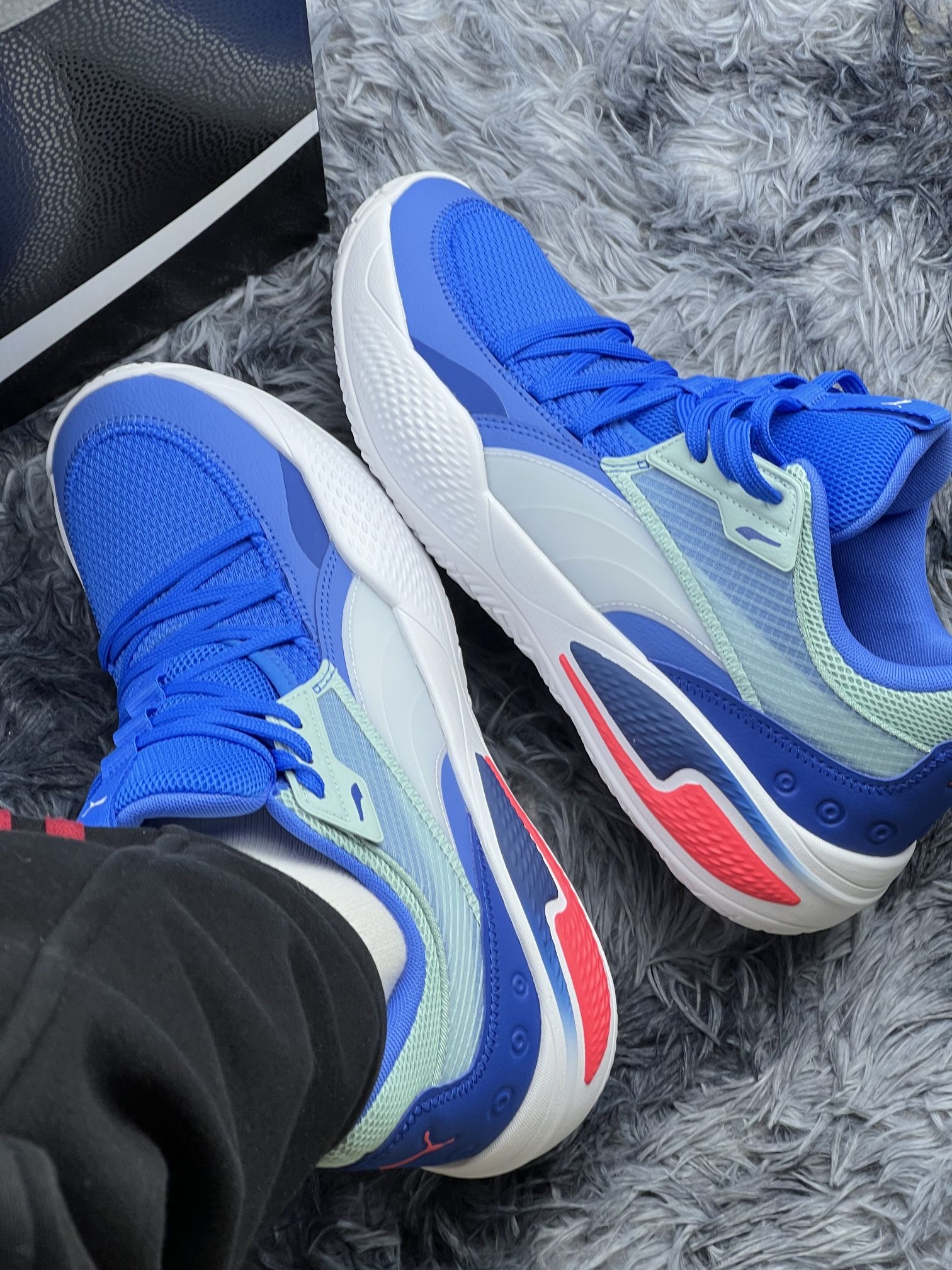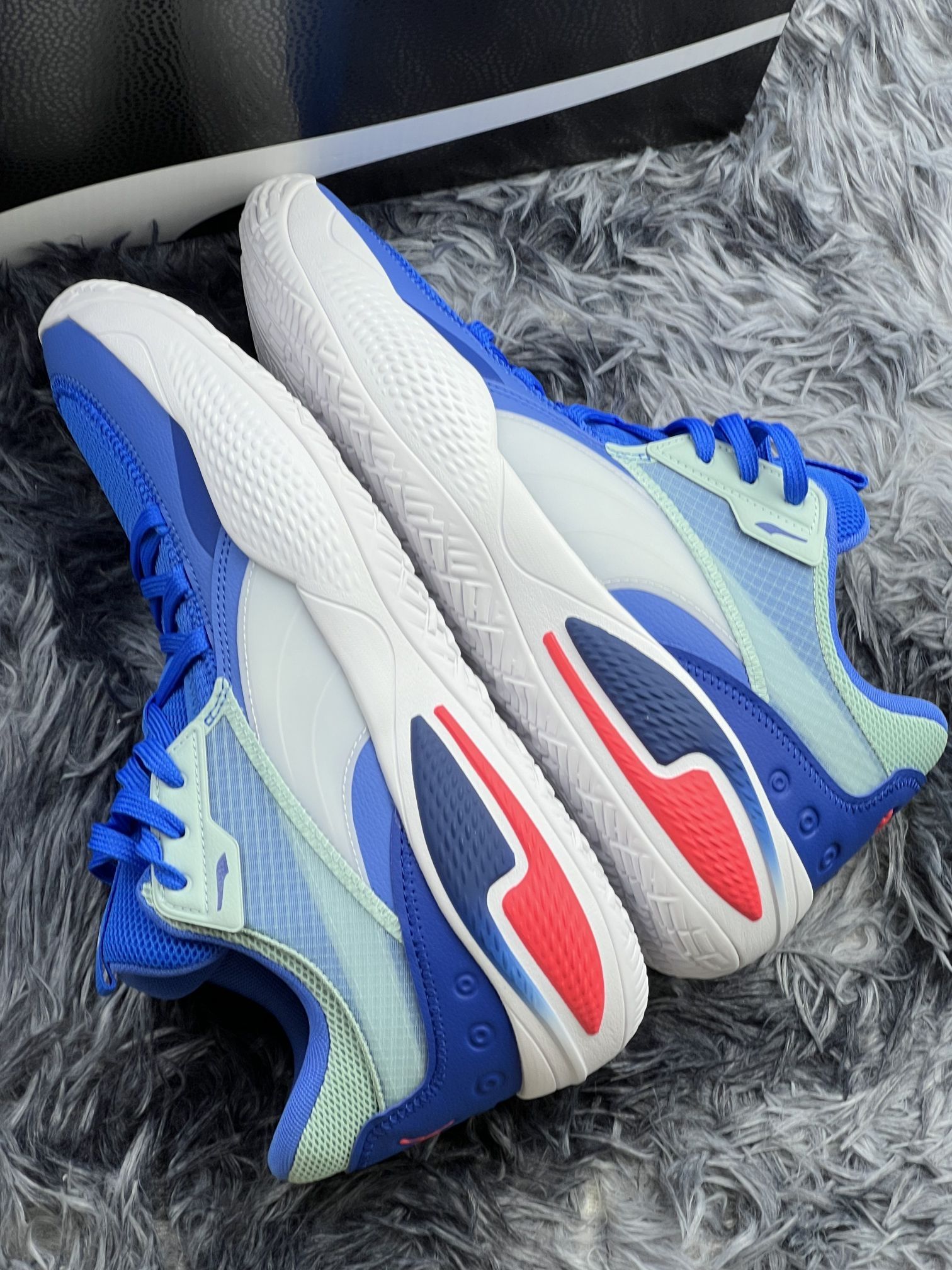 这双蓝绿配色的鞋,第一眼是被清爽的撞色戳中,上脚后才发现更多细节。 鞋面是网布+皮革拼接,夏天穿不闷脚,但皮革部分有点硬,刚上脚时脚踝处会磨,得穿厚袜子磨合几天。中底脚感偏韧,不是软弹挂,日常走路够用,打半小时球后足弓会有点酸。 外底纹路很深,抓地在室内木地板很稳,但沾灰后在光滑地面会打滑。鞋舌的固定带设计有点鸡肋,系紧鞋带后会顶脚背,我后来干脆把它拆了。 最大的买点是配色和造型,出街...