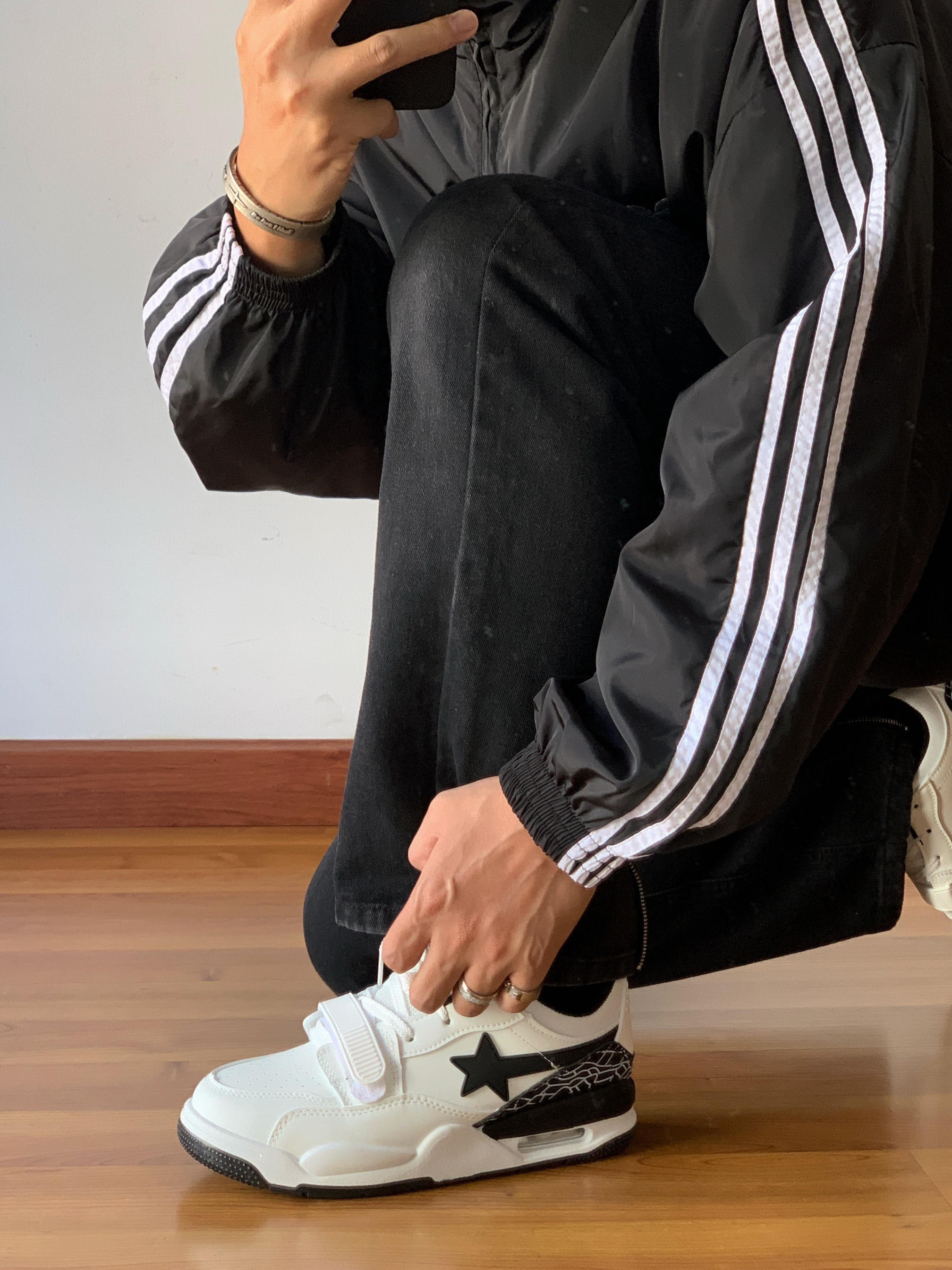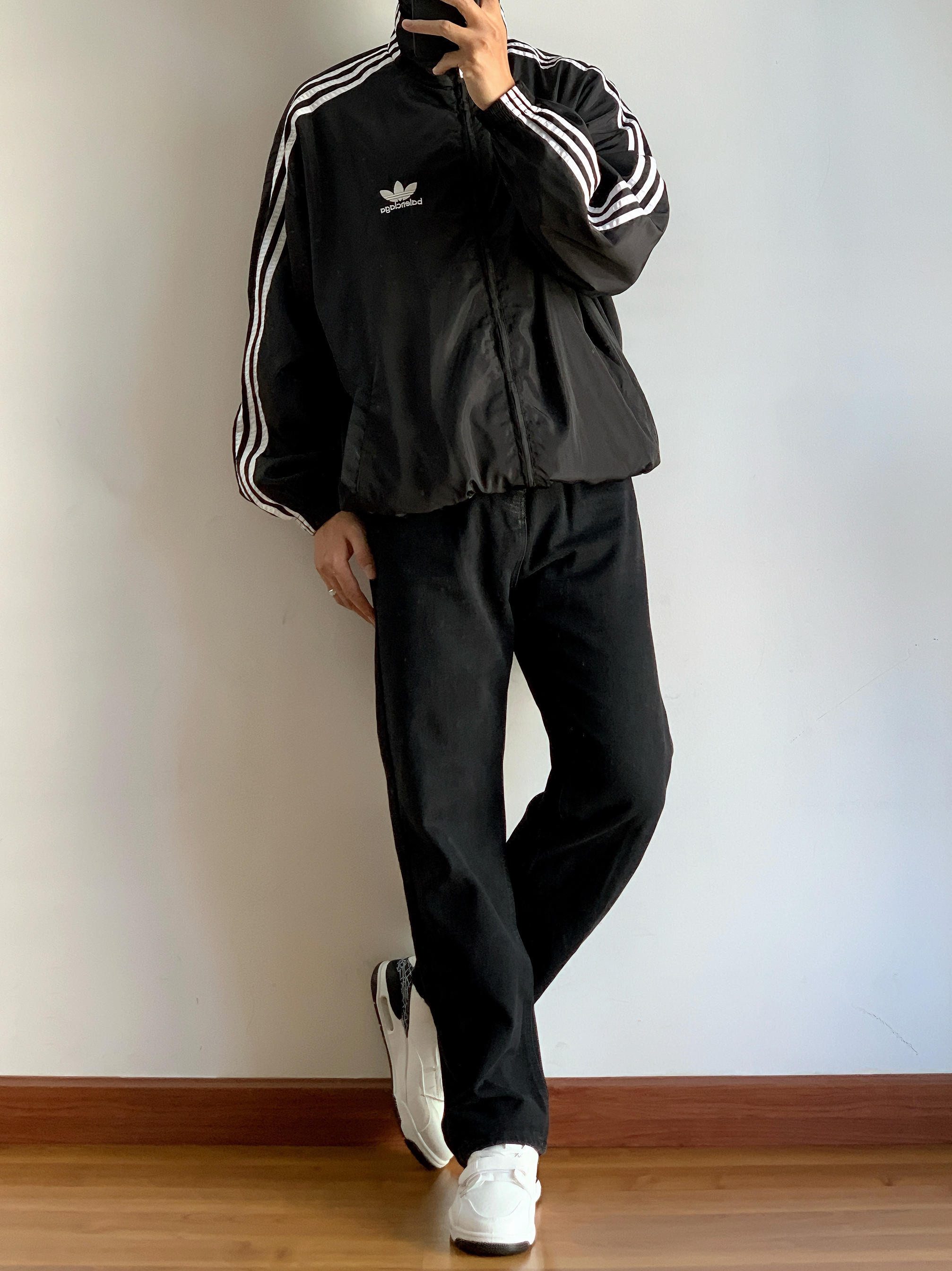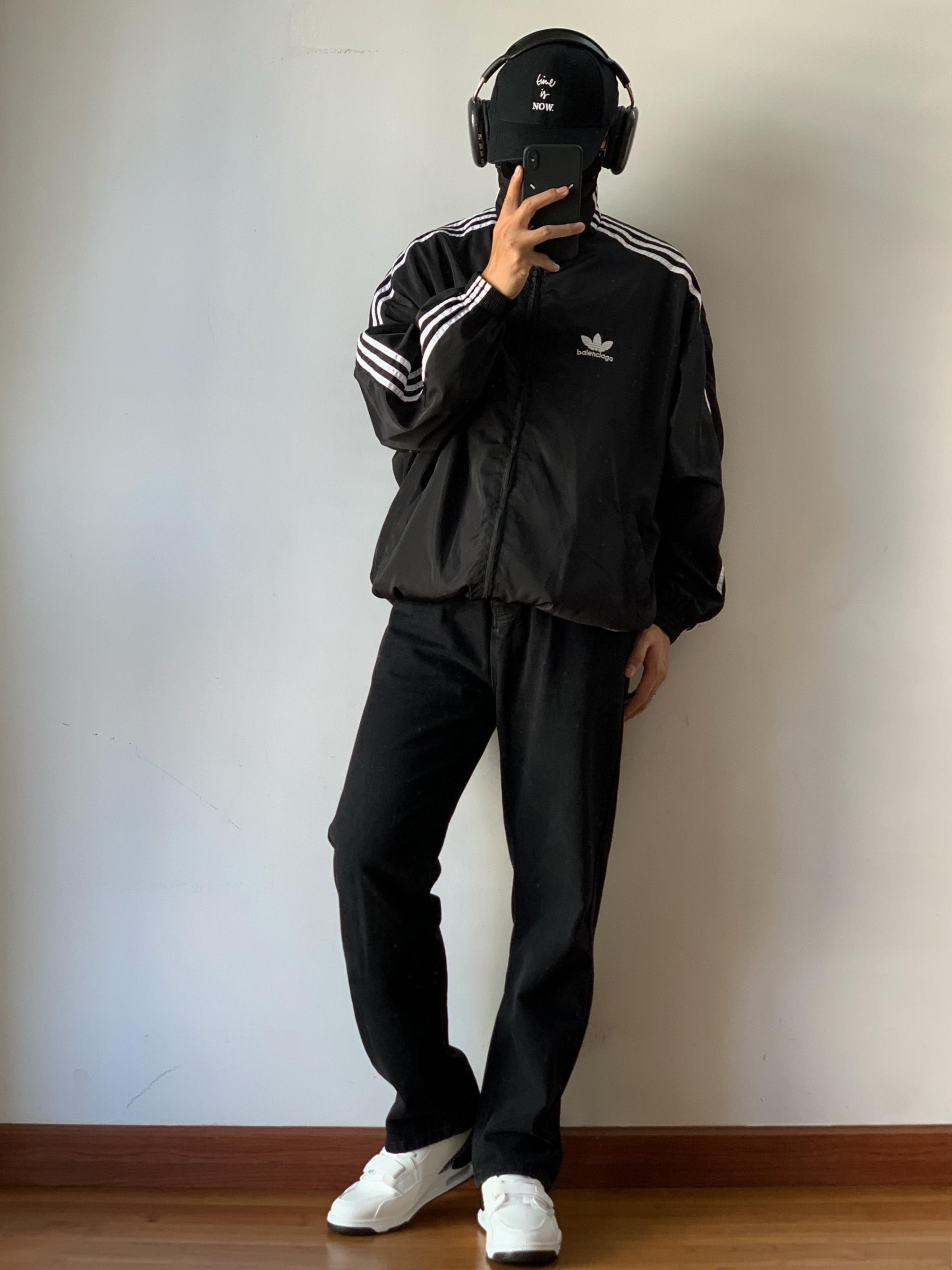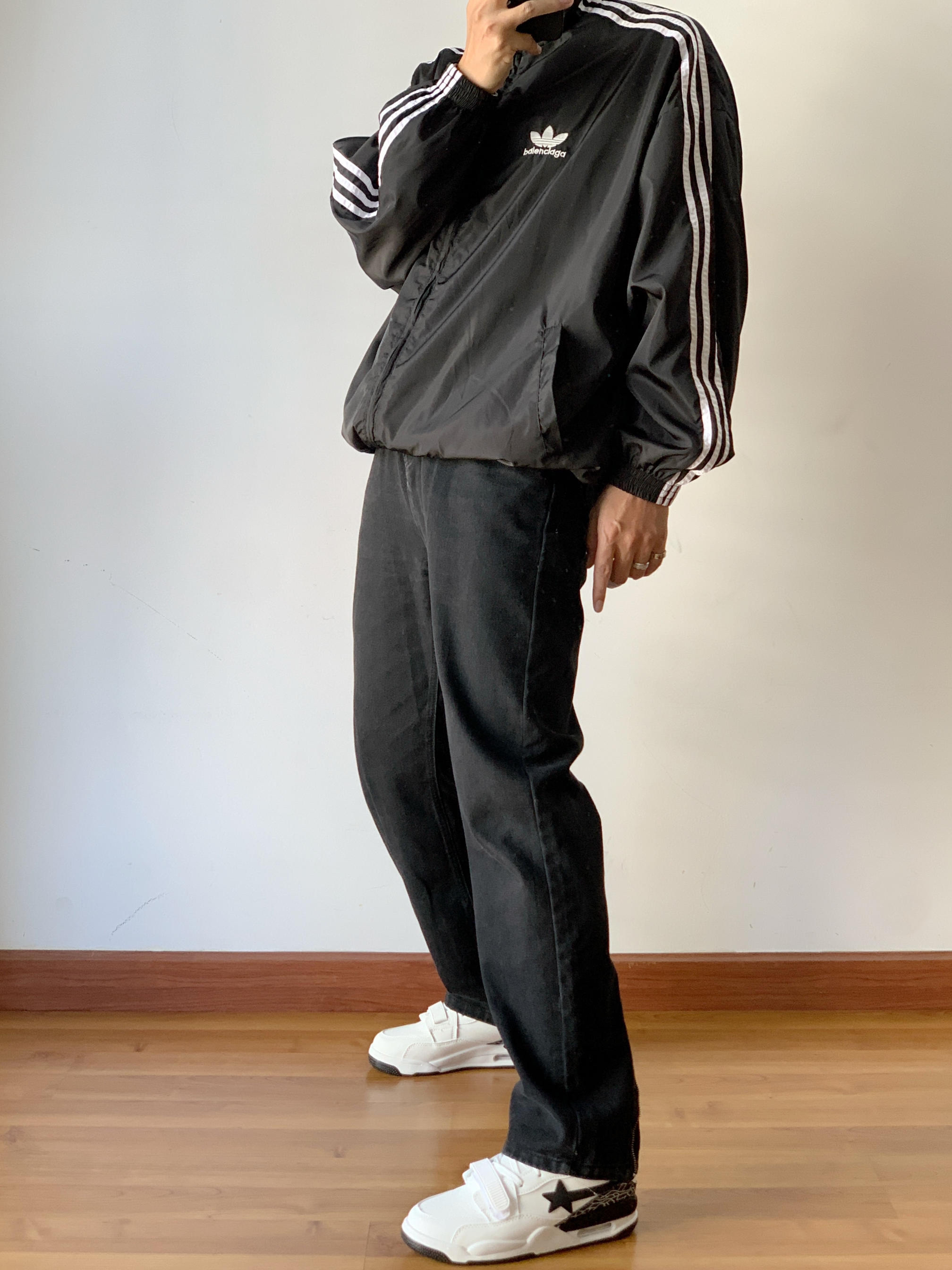 黑色系早春也依然酷飒帅气 美式复古运动风真的酷😎 身高|体重:175/70 🧍♂️ 穿搭风格:allblack复古运动风穿搭 👔 上衣:阿迪复古运动夹克 👖 下装:黑色美式直筒牛仔裤 👟 鞋子:黑白美式休闲板鞋 🎧配饰:黑色头戴耳机
