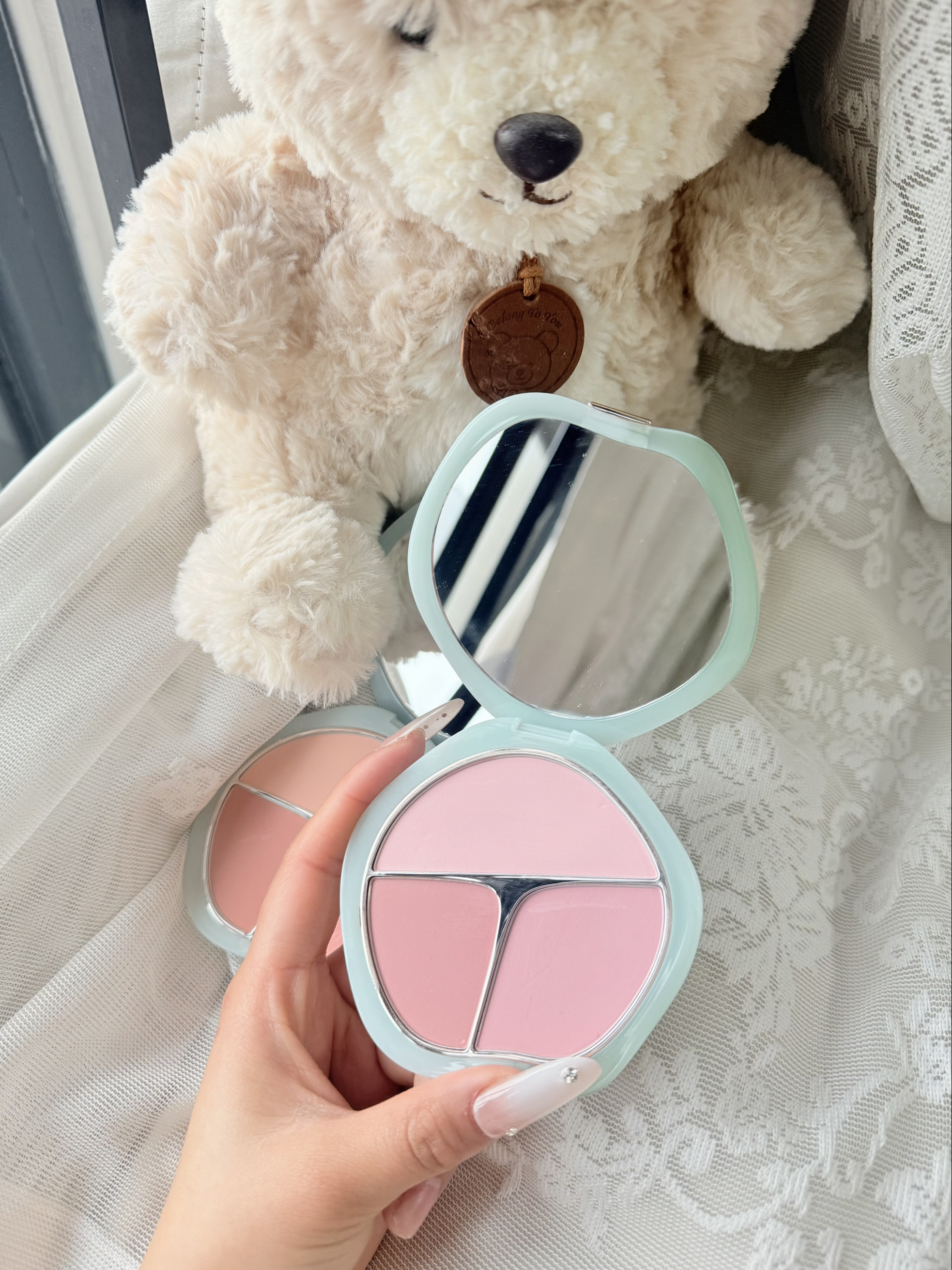 ✨ 产品核心亮点 • 三色分区设计:一盘包含膨胀色、主题色、收缩色,可单色使用,也可叠涂,轻松打造立体骨相感。 • 粉质细腻:柔滑贴肤,不易飞粉,显色度适中,新手也能轻松驾驭。 • 低饱和质感色:色彩偏温柔,能营造出中式朦胧美,适配多种肤色。 💄 韩系妆容使用技巧 1. 膨胀色:用在面中、眼下三角区,让面部瞬间“嘭”起来,打造饱满少女感。 2. 主题色:叠涂在面中及颧骨上方,提升整体气色,营造韩女...