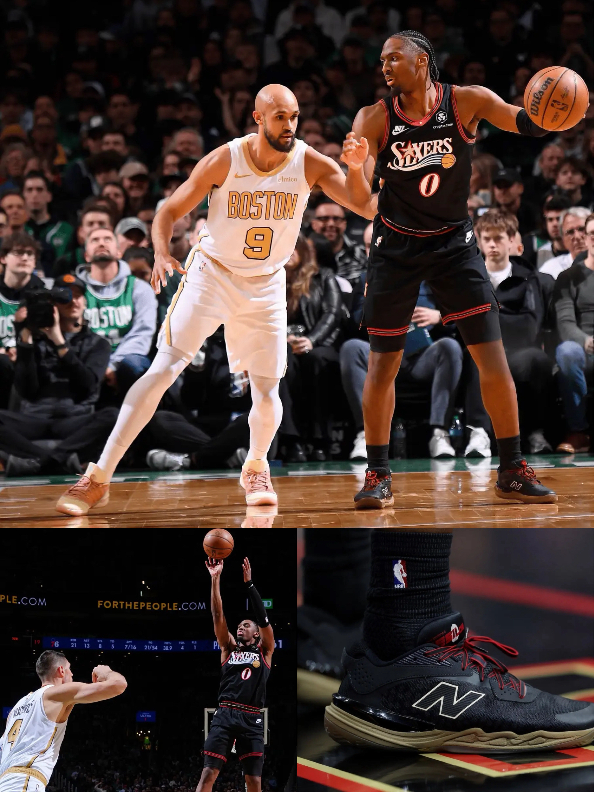 比赛中,马克西上脚New Balance Hesi Low v2 PE。 本场比赛76人队球员马克西出战43分钟,投篮34中12,三分球11中4,罚球6中5,得到33分3篮板6助攻1抢断2盖帽。最终98-114不敌凯尔特人。
