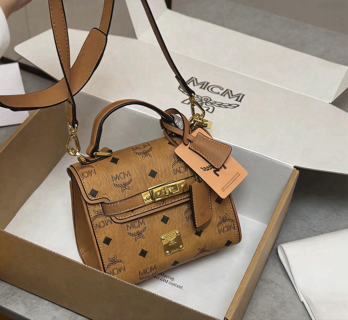 谁懂啊姐妹们!挖到宝了!这款被我背了快俩月的MCM Millie迷你手提包,真的是我近期穿搭的“作弊神器”,不管是通勤还是约会,随手一拎都显贵又时髦! ✨ 颜值暴击 经典的Visetos老花+干邑色皮革,五金锁扣上的月桂叶Logo细节满满,拿在手里质感绝了,完全不像几千块的包! 📦 容量实测 别被它的“迷你”骗了!手机、口红、粉饼、钥匙、AirPods都能轻松塞下,甚至还能塞下一个小卡包,日常...
