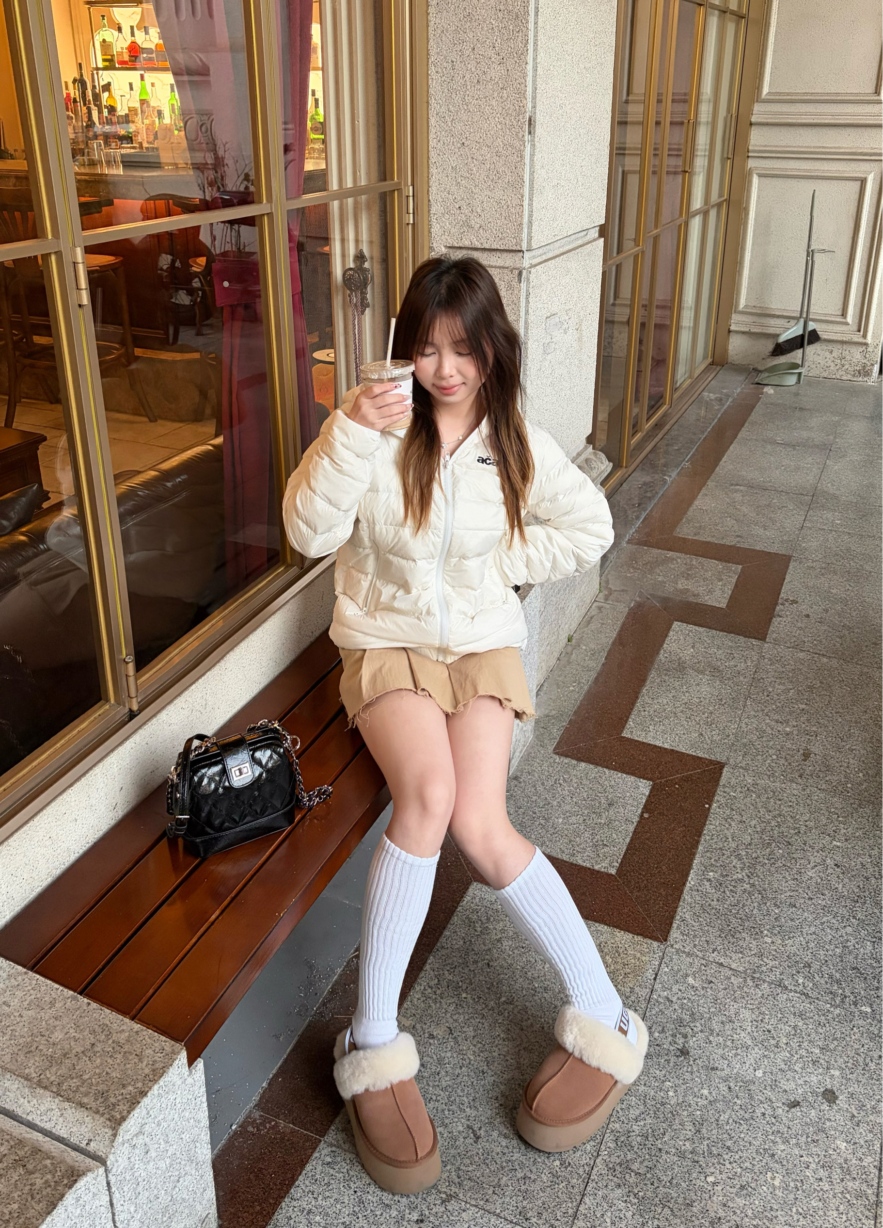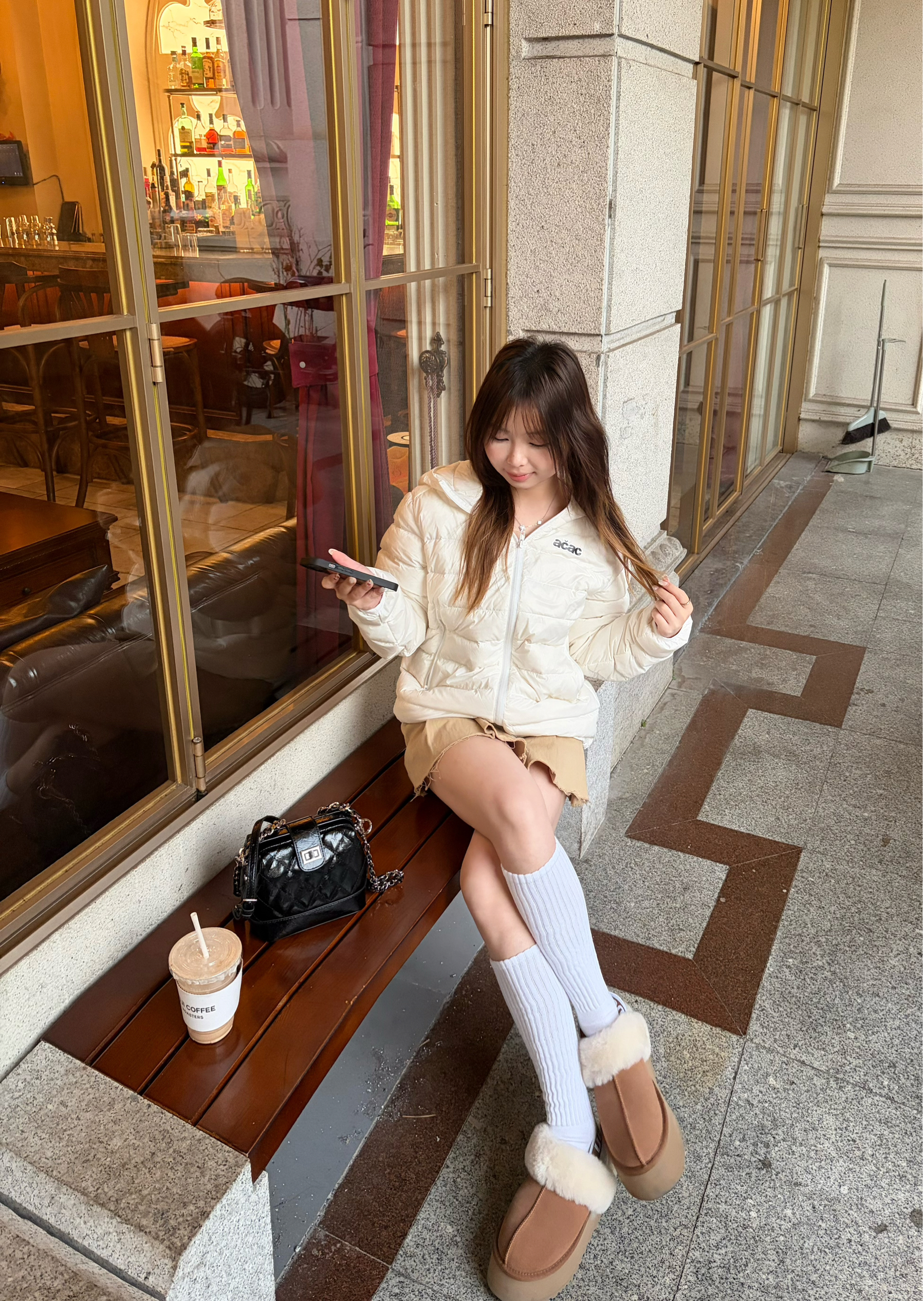 小个子的显高公式就是穿短款 这件白色羽绒服的版型对小个子超友好 薄薄的外套上身没有负担 保暖力度也还不错 非常适合早春不冷不热的温度