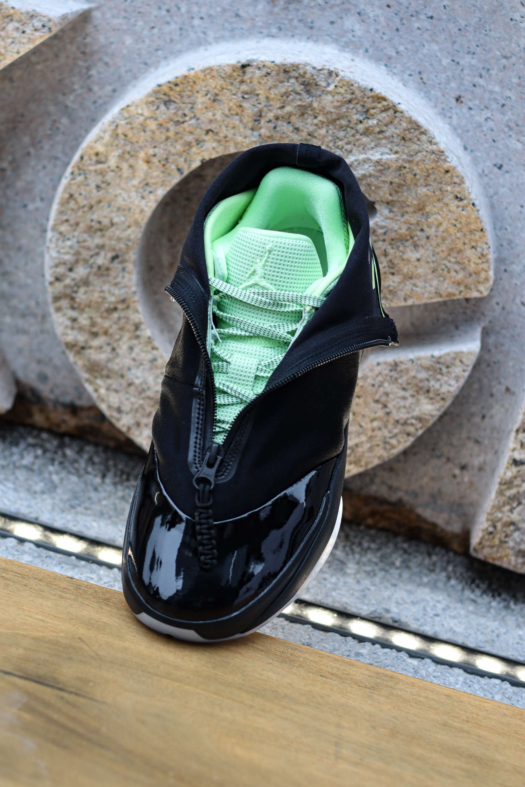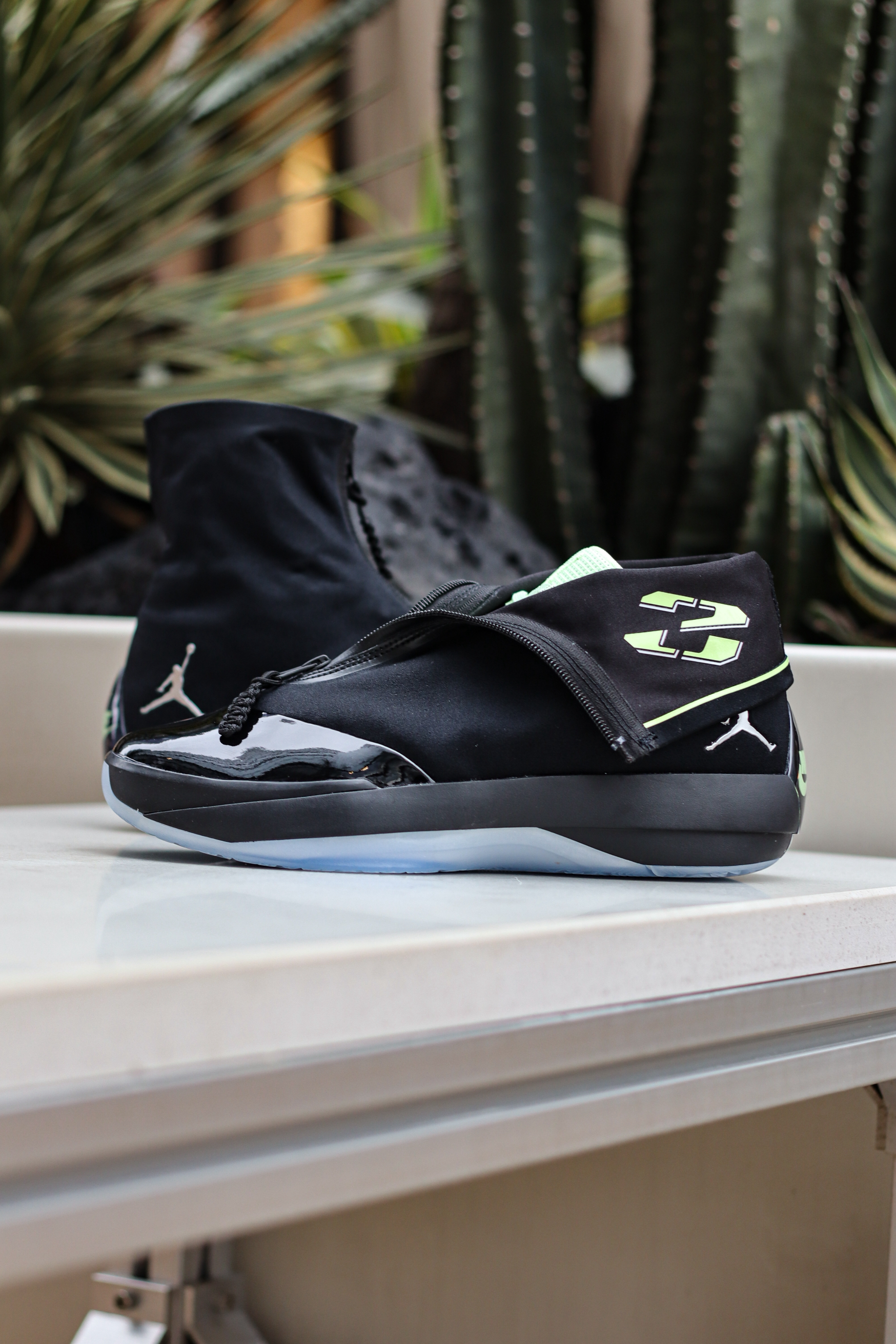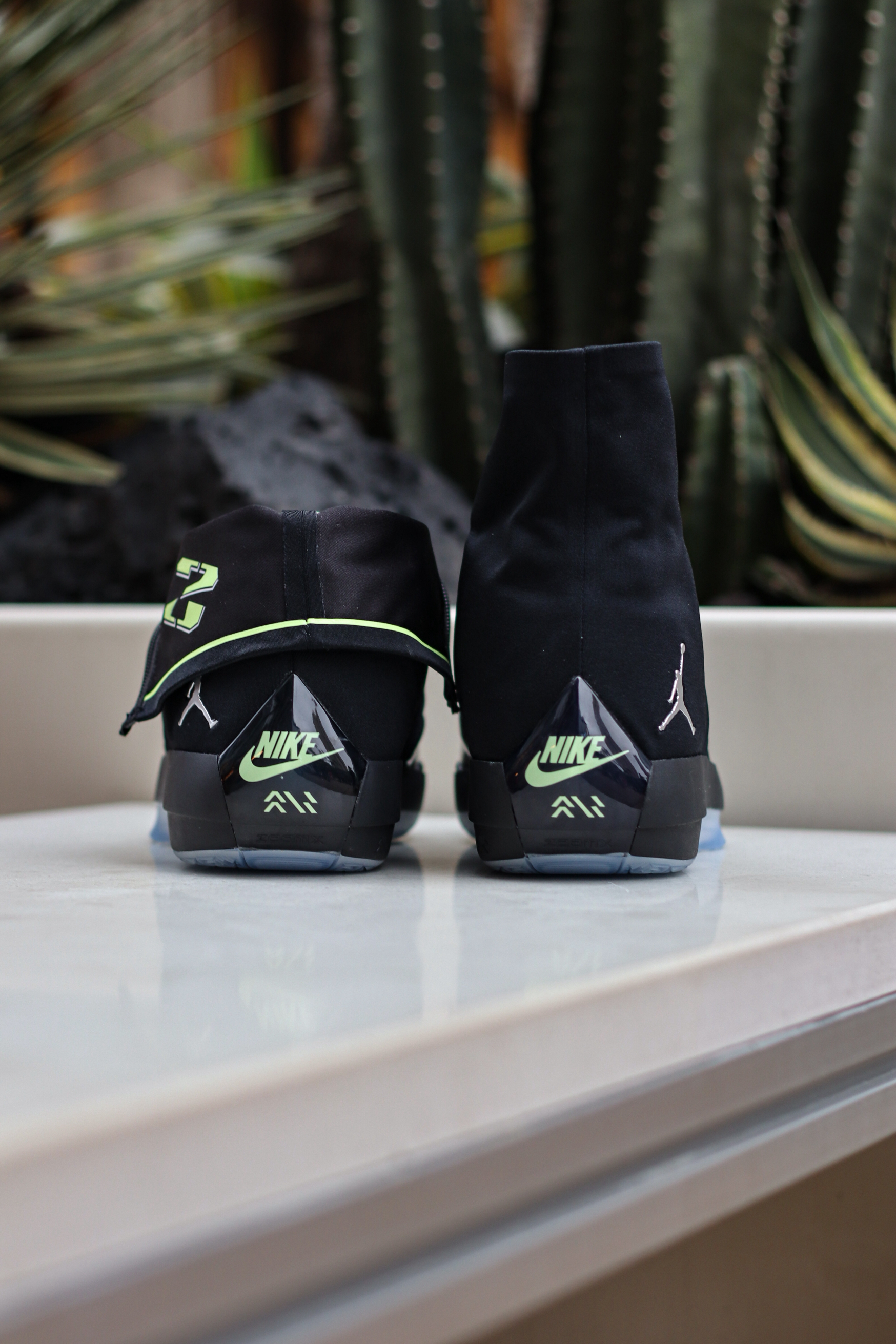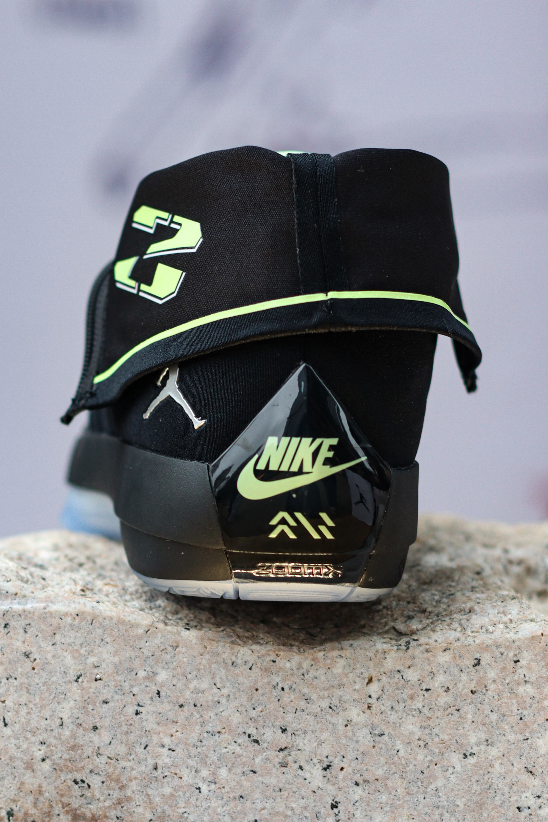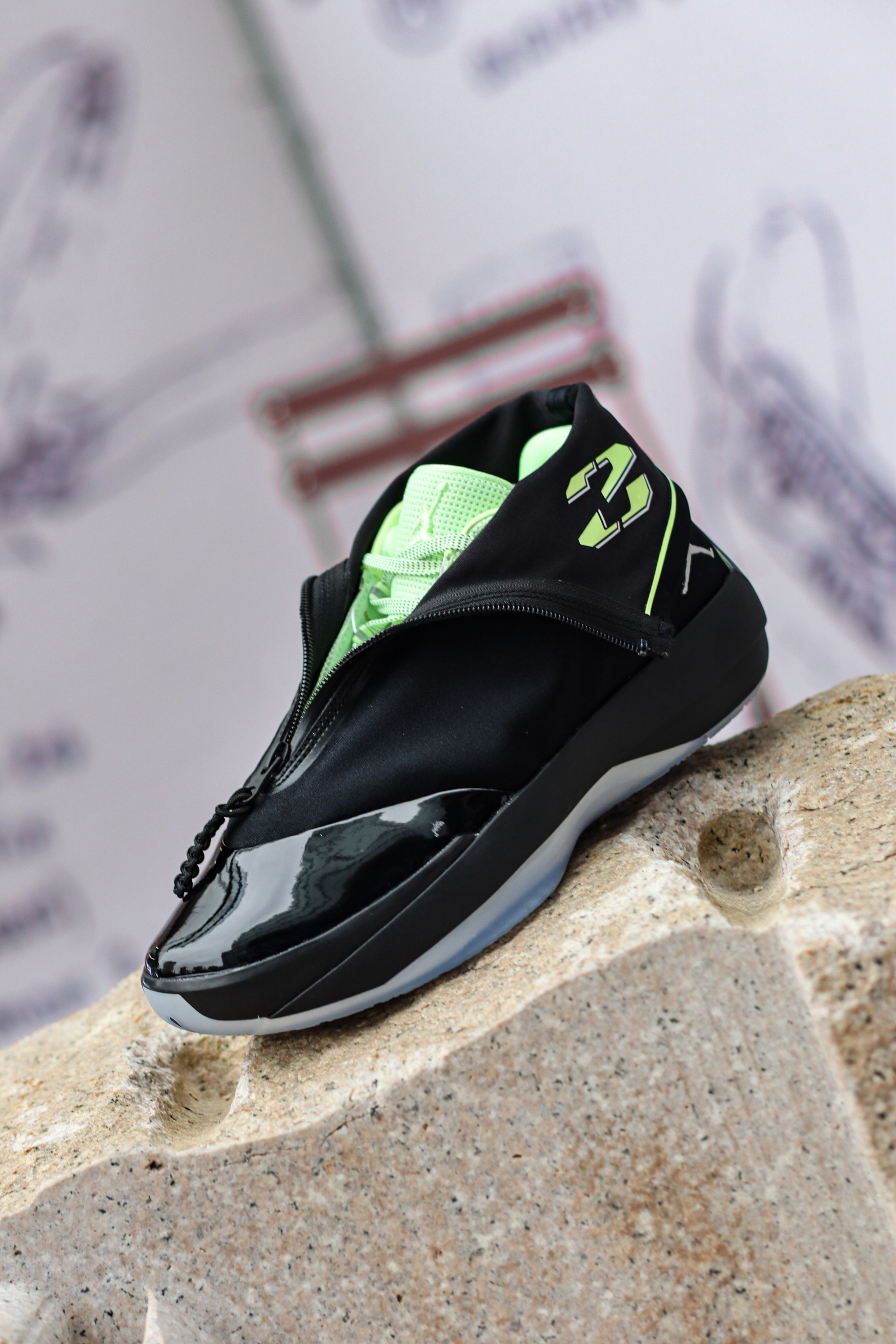 AJ4028是AJ40×AJ28 合体致敬款,以AJ40为基底,复刻AJ28经典高帮拉链鞋套设计~ 可翻折高帮拉链鞋领,还原AJ28标志性造型,个人感觉拉上鞋领确实有点黑靴子既视感,拉下来才是它颜值的完全体! 拉开拉链露出隐藏23数字标识,黑荧光绿配色,致敬AJ28元年经典~ 亮面漆皮+哑光织物拼接,质感层次丰富~ 大家觉得AJ40XX系列哪双最帅呢?